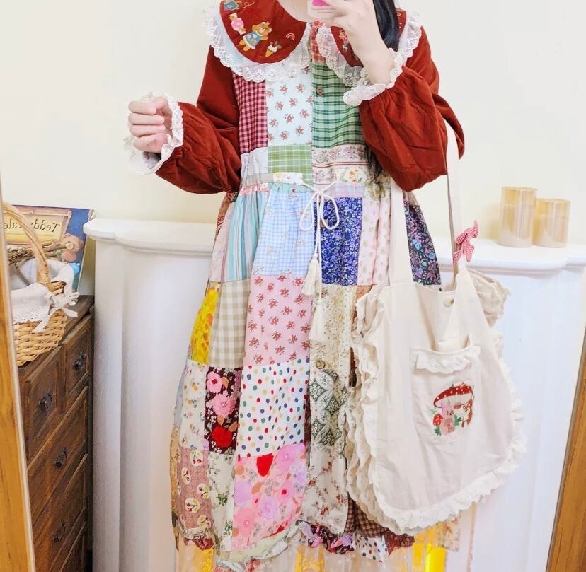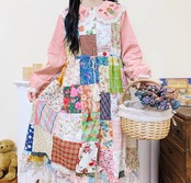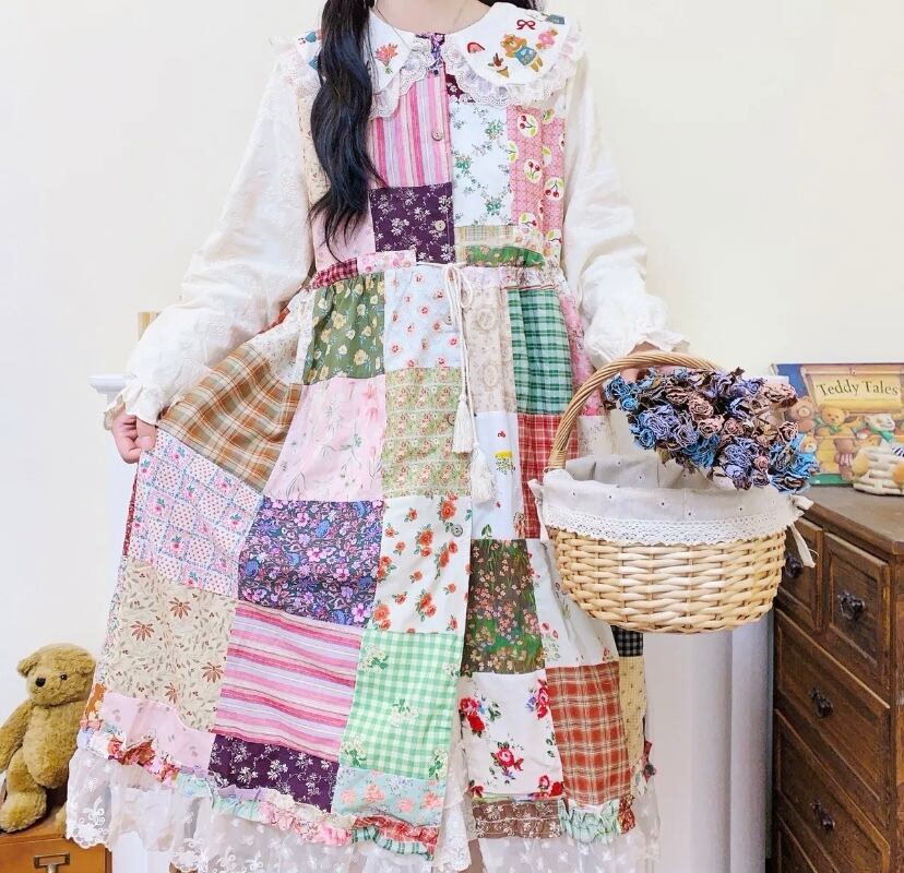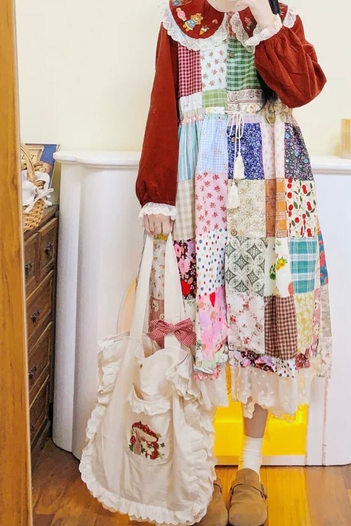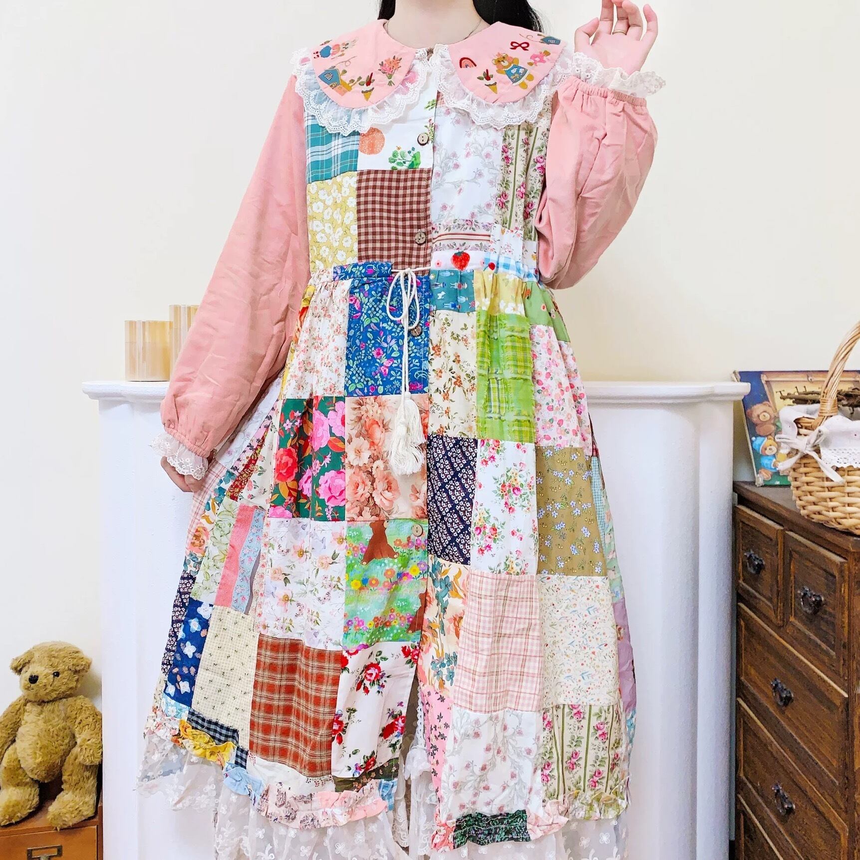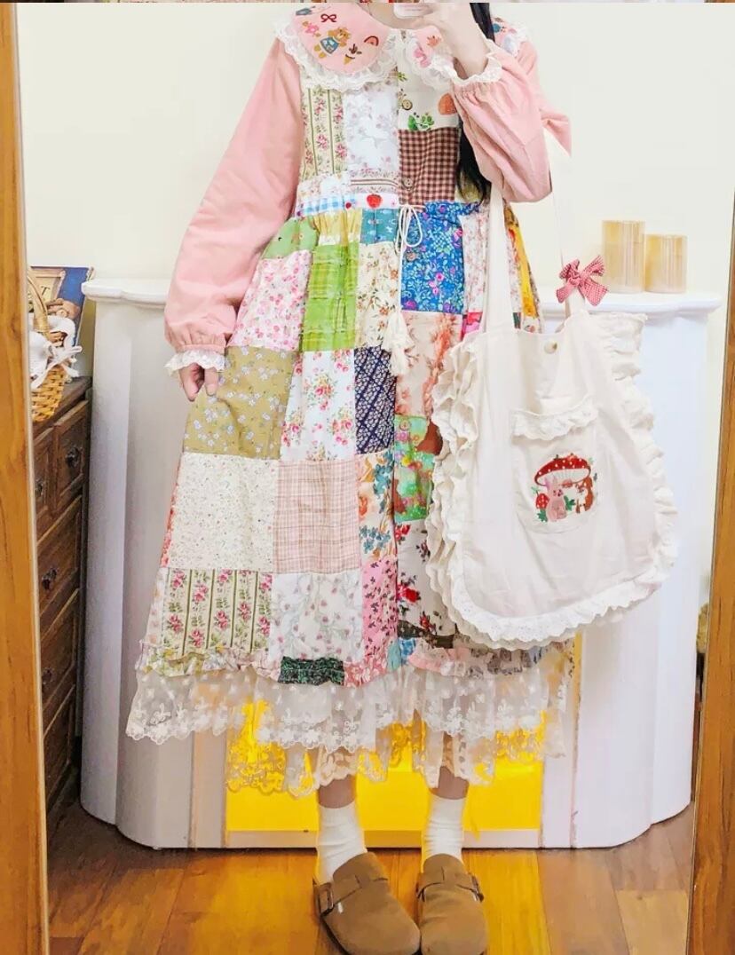ピンク 丸襟 パッチワーク ガーリー 可愛い