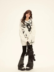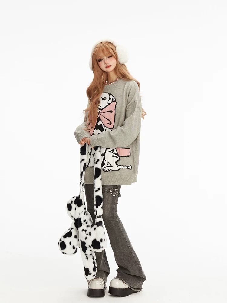 人 セーター 可愛い 白 犬 リボン ダルメシアン