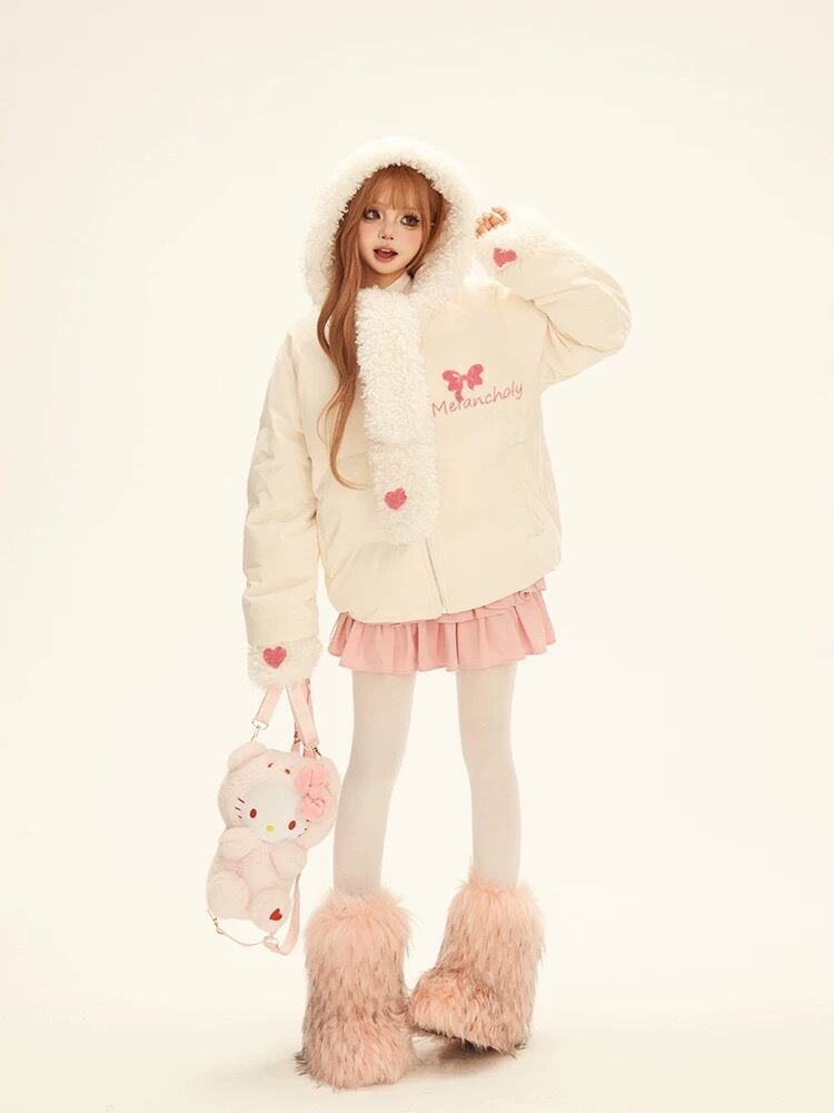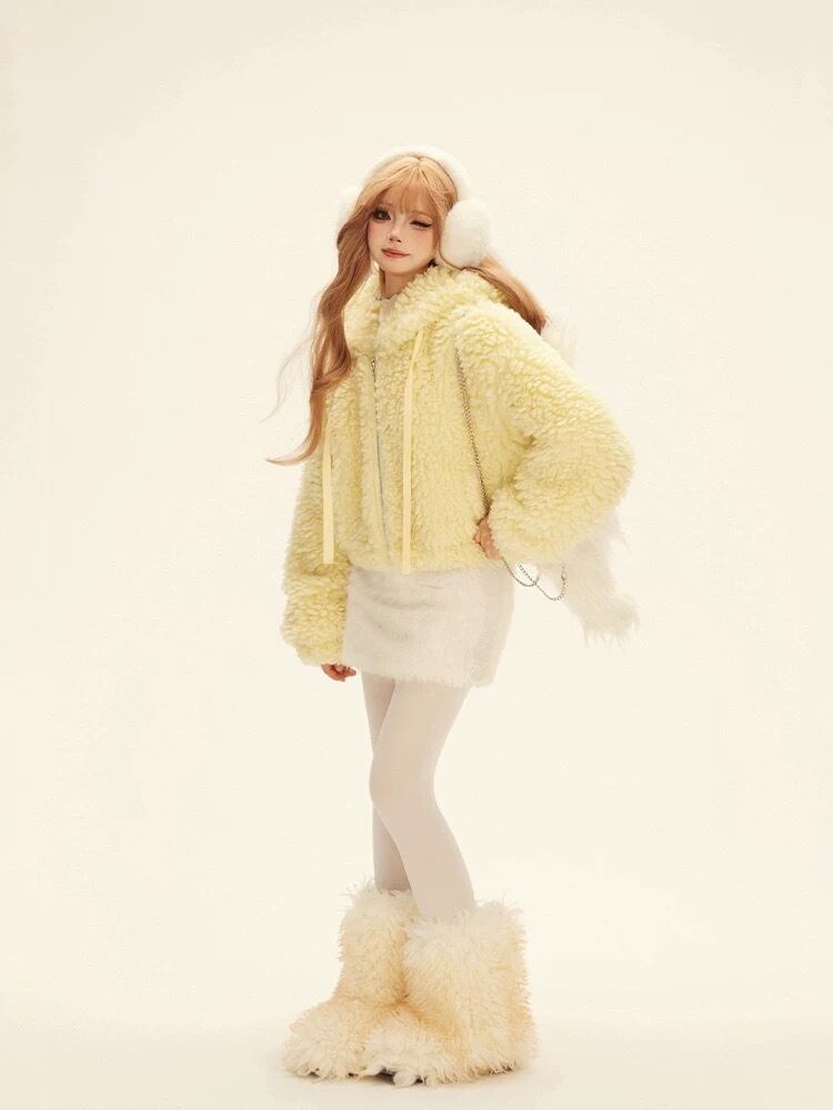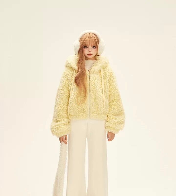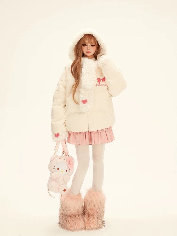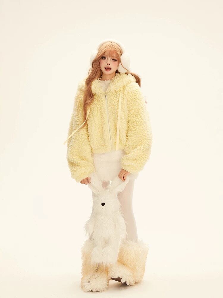 黄色 ひよこ 白 ダウン パーカー コート 可愛い