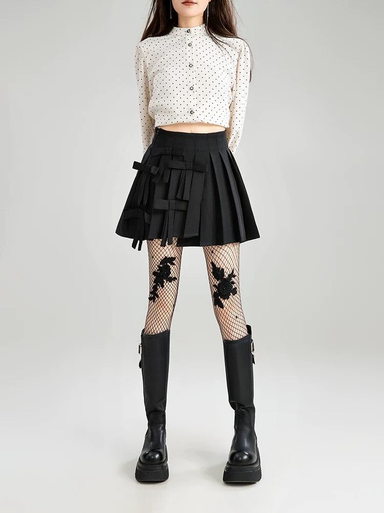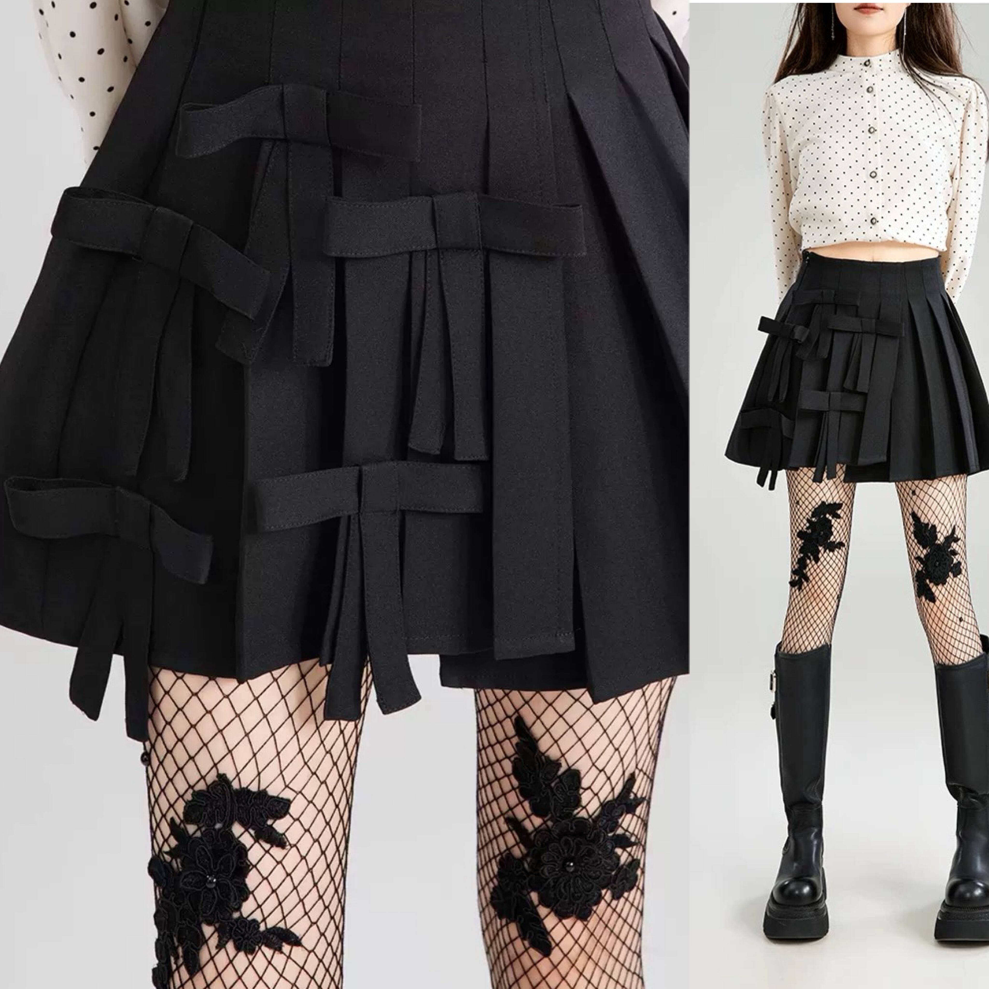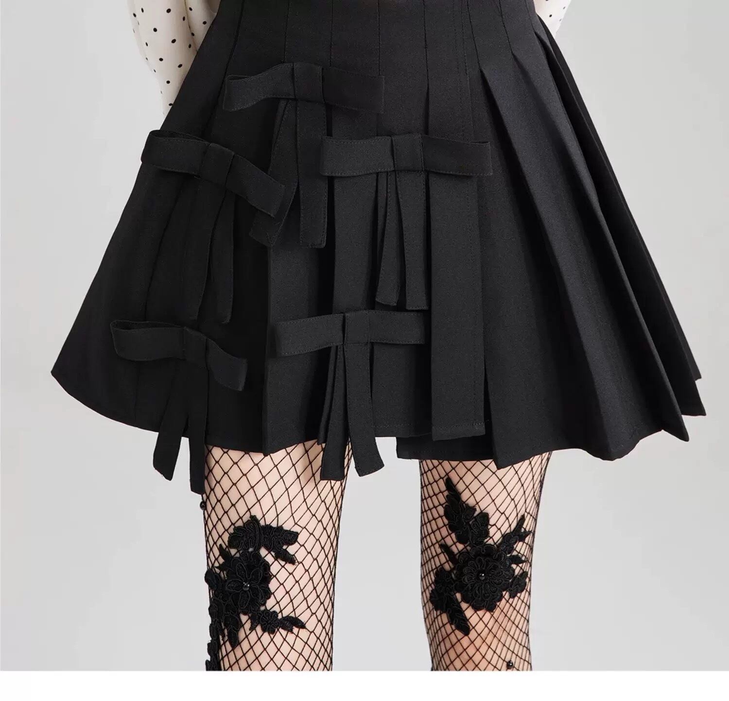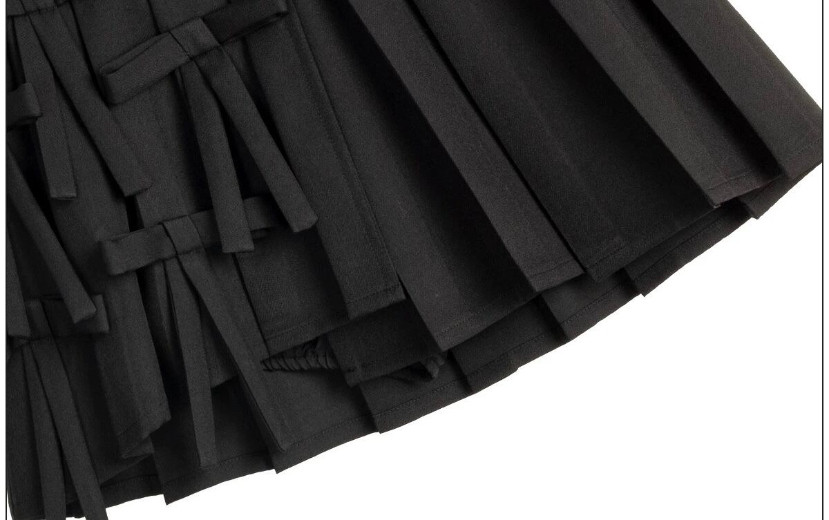黒 ミニスカート プリーツ リボン ガーリー XL