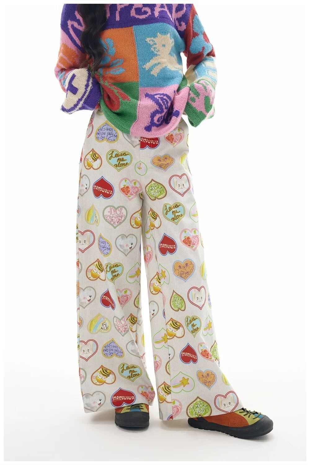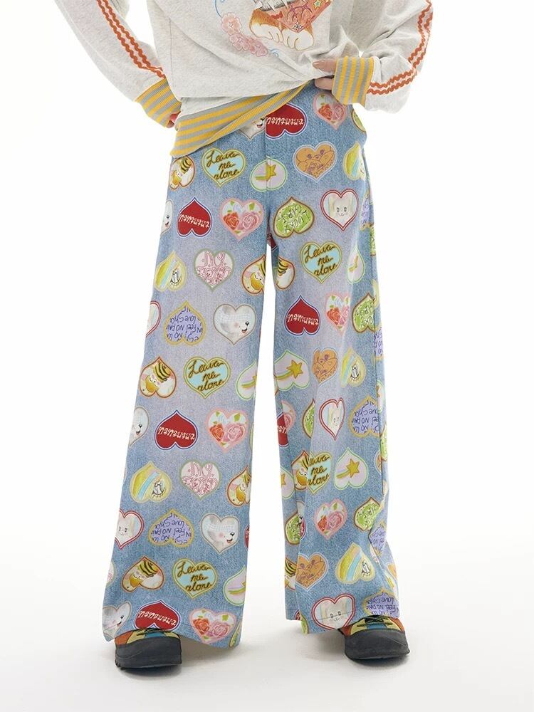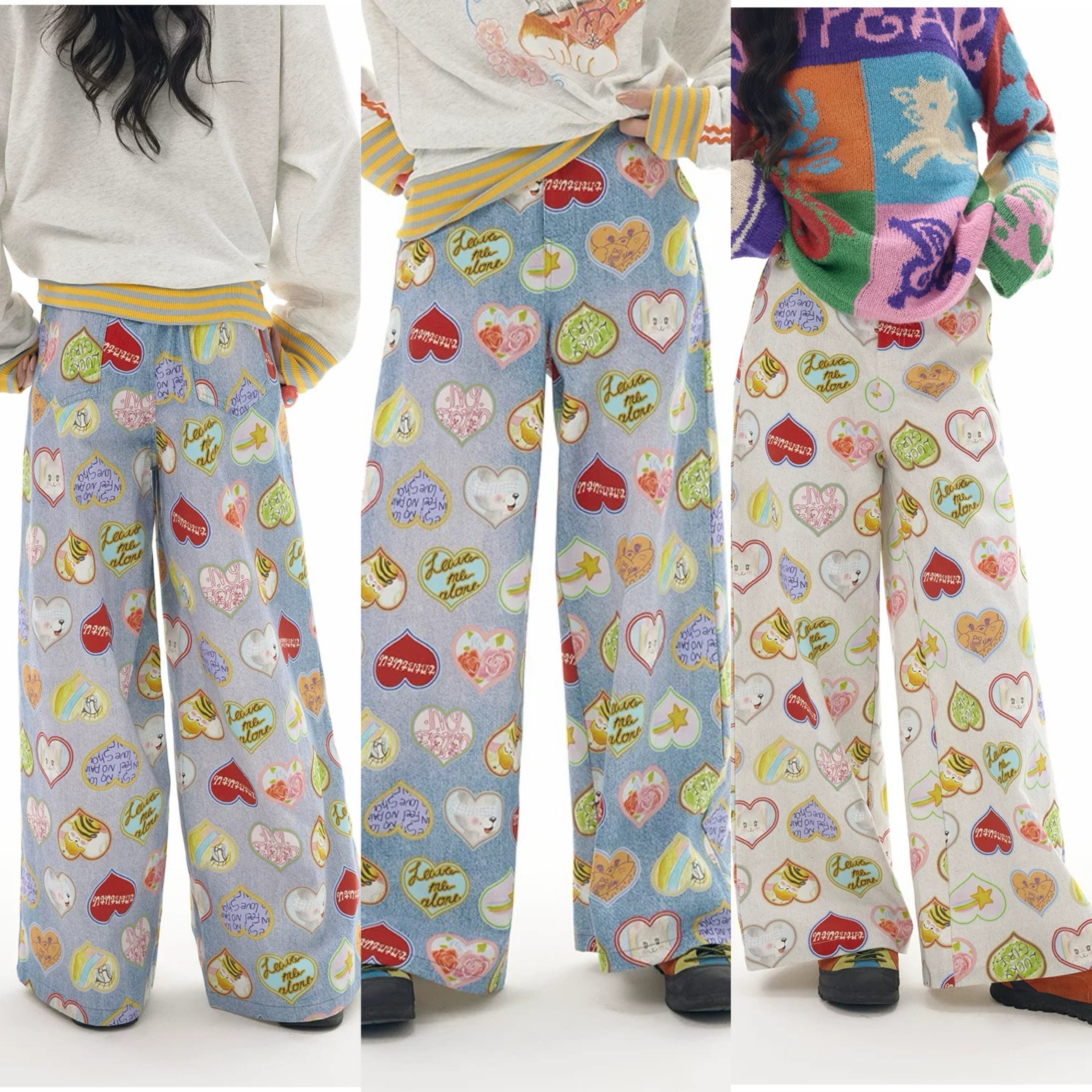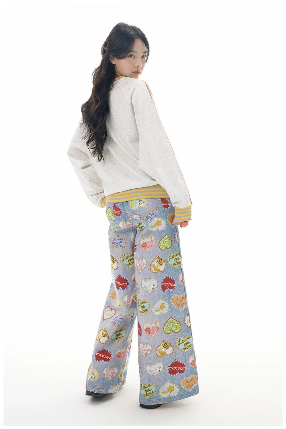 ハート デニム カラフル カジュアル パンツ かわいすぎる ハート XL ジーパン ジーンズ