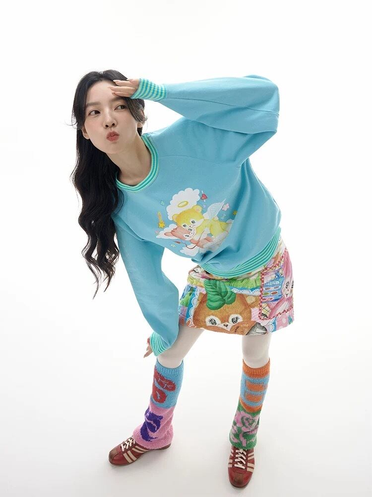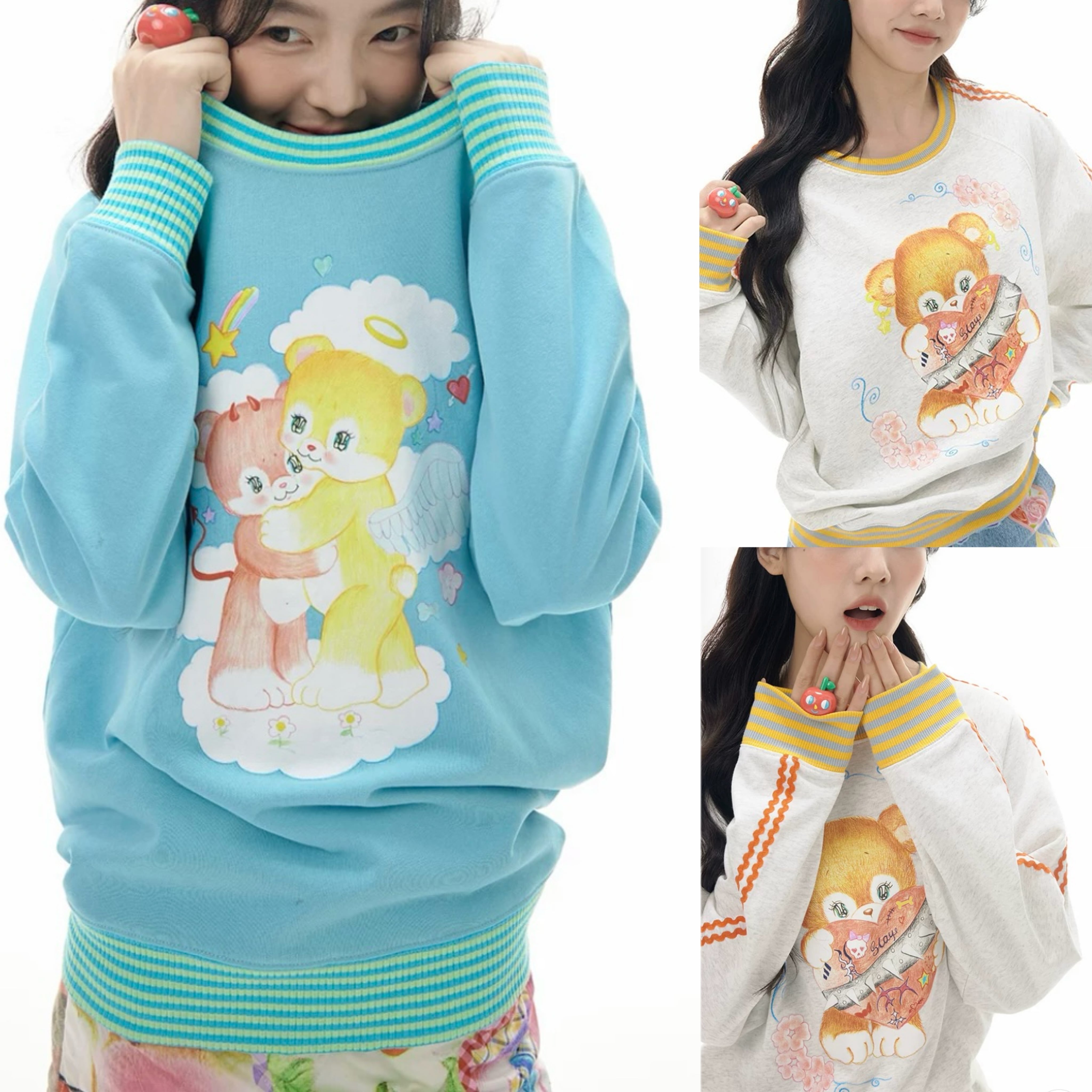 トレーナー 白 水色 くま 可愛い パーカー スウェット