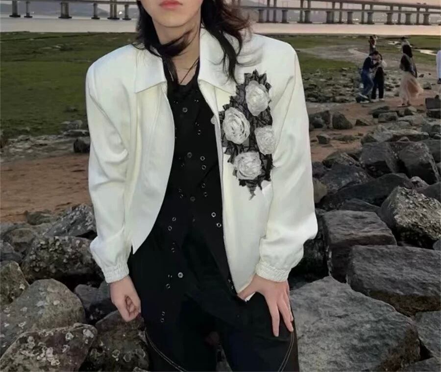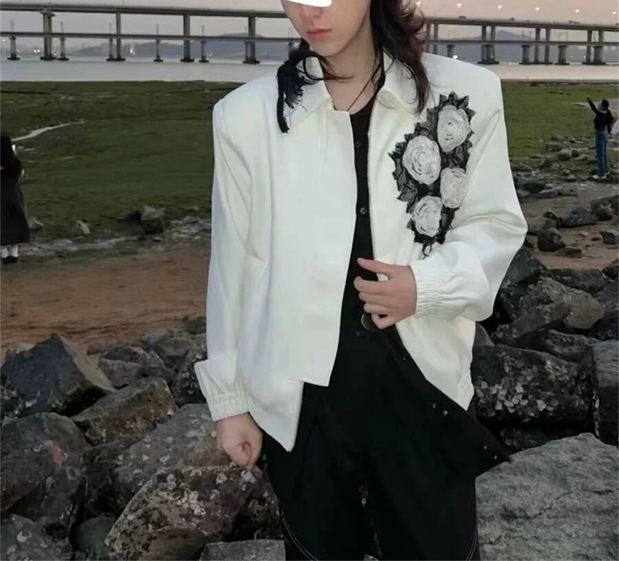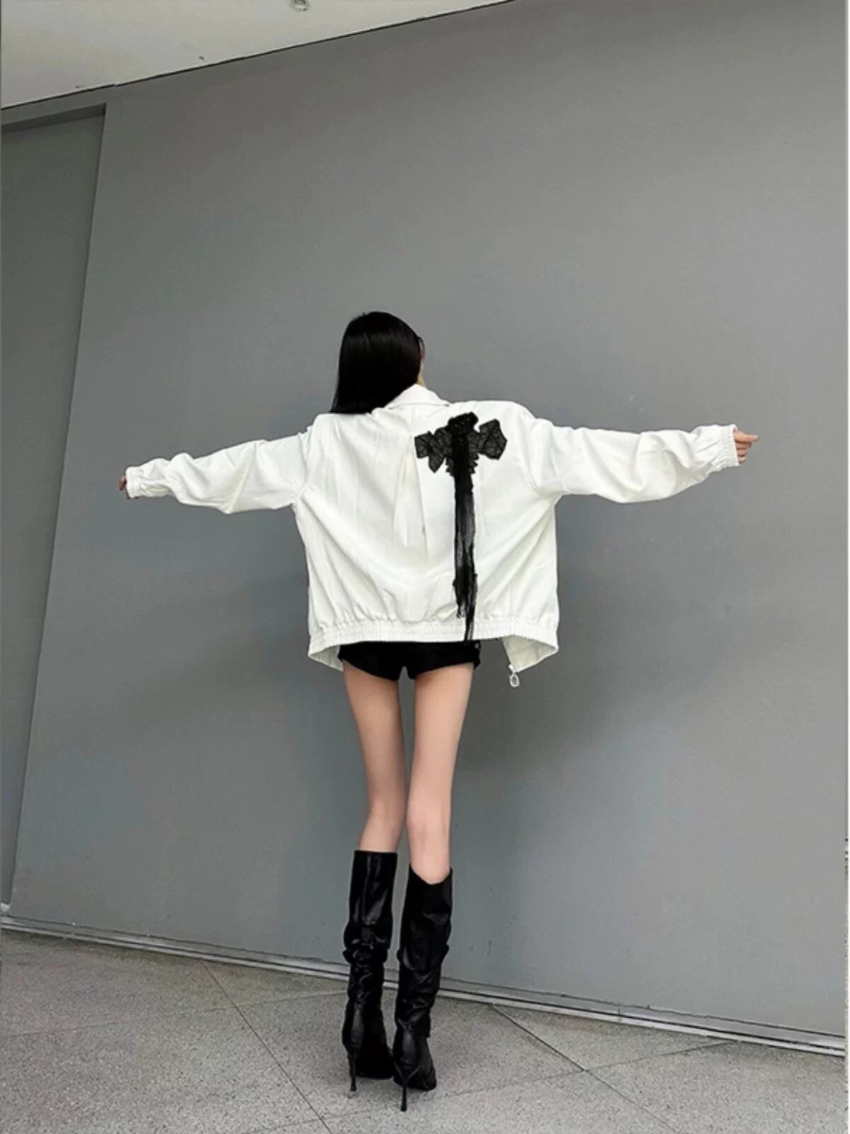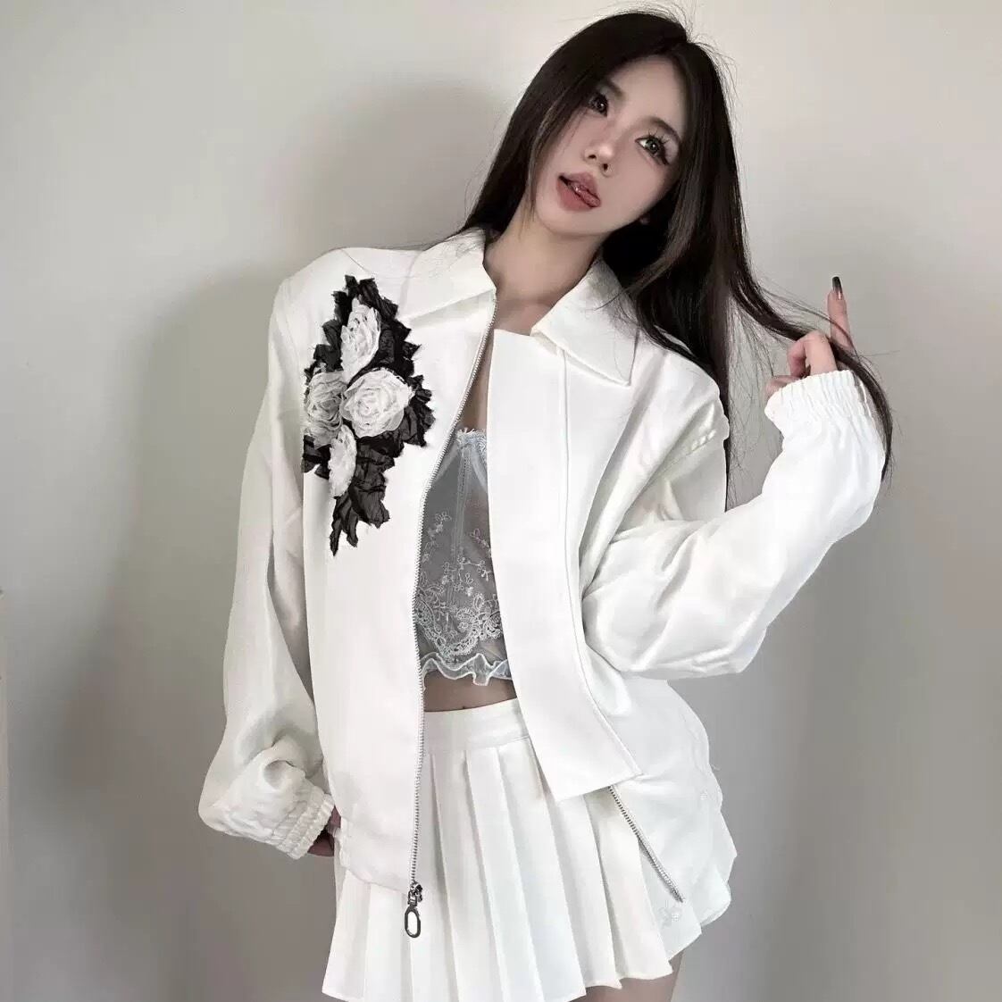白 ホワイト 花柄 黒 ジャケット アウター