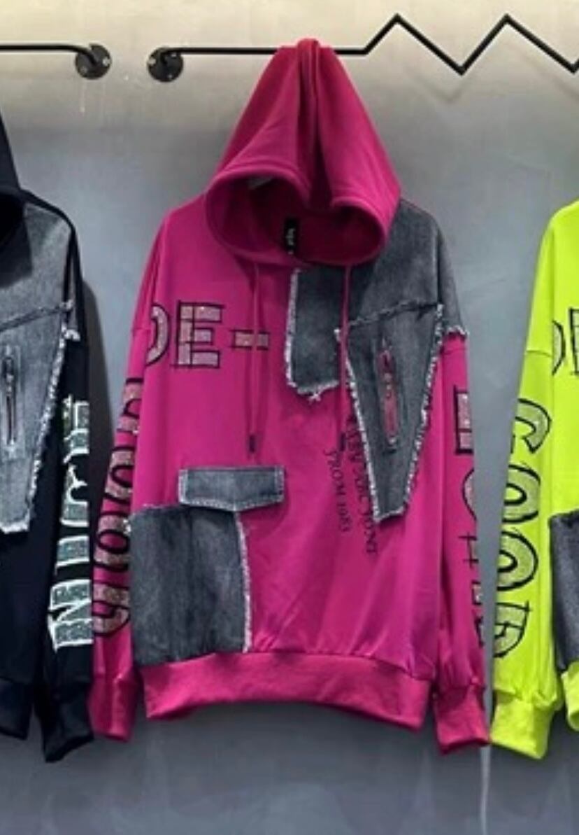 ネオンカラー 黄色 黒 スウェット カジュアル ピンク 赤 デニム パーカー パンツ