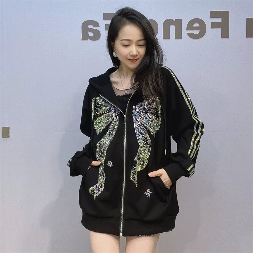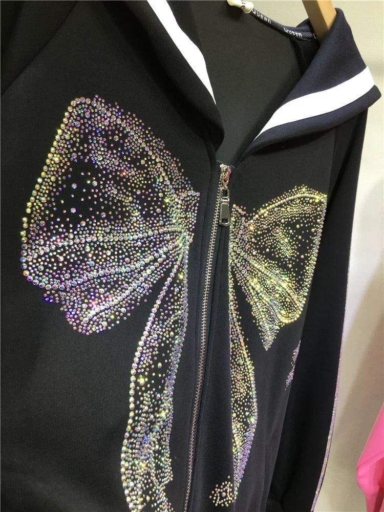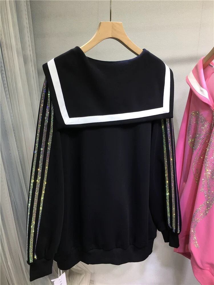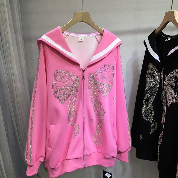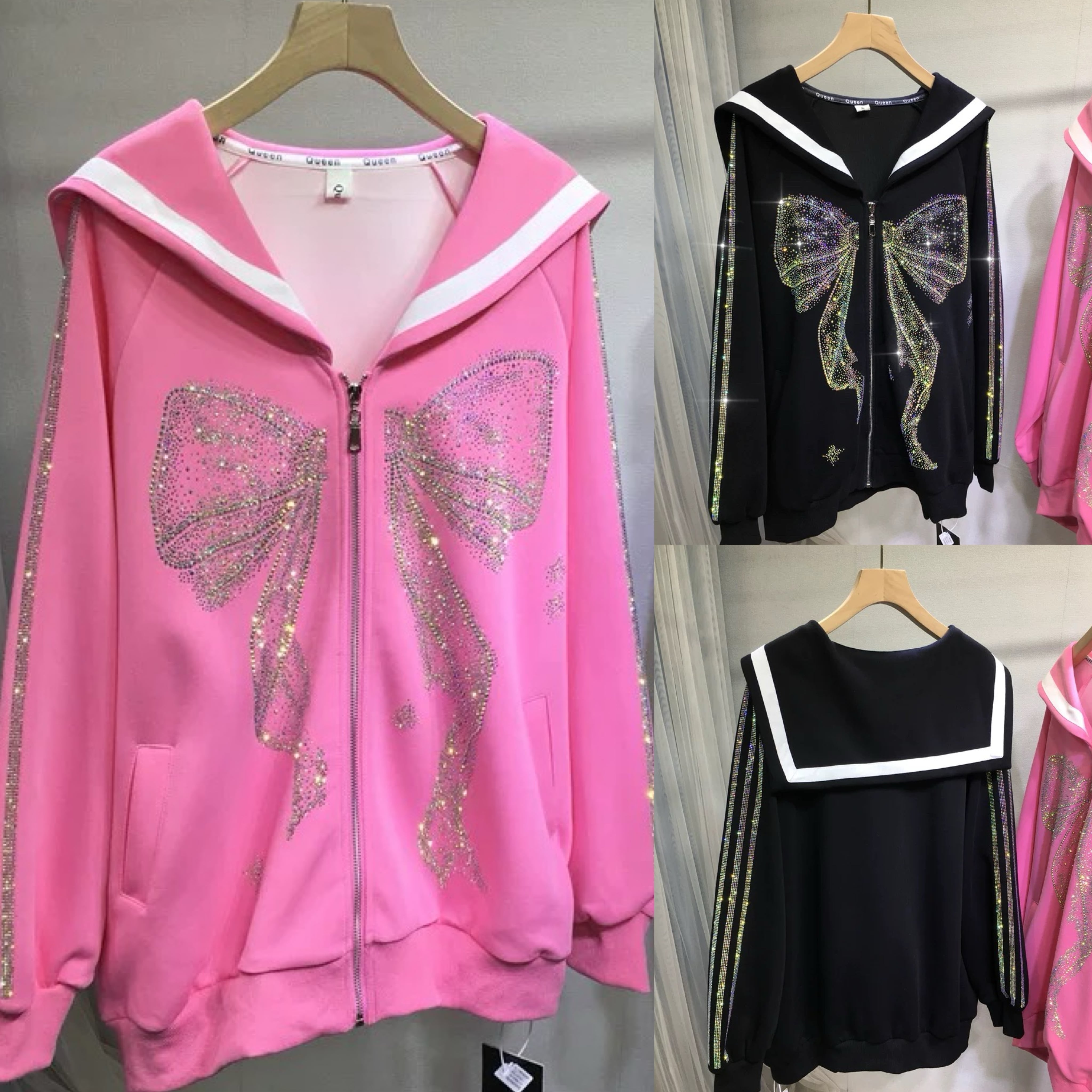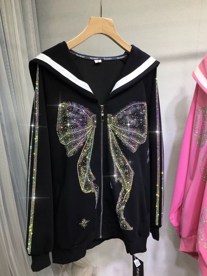 黒 リボン ピンク パーカー スウェット セーラー ラインストーン