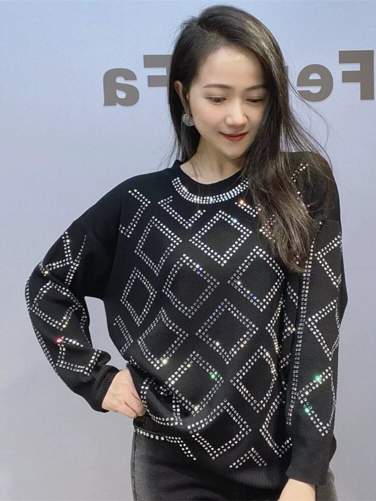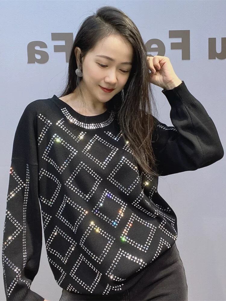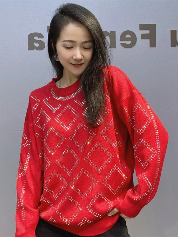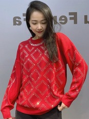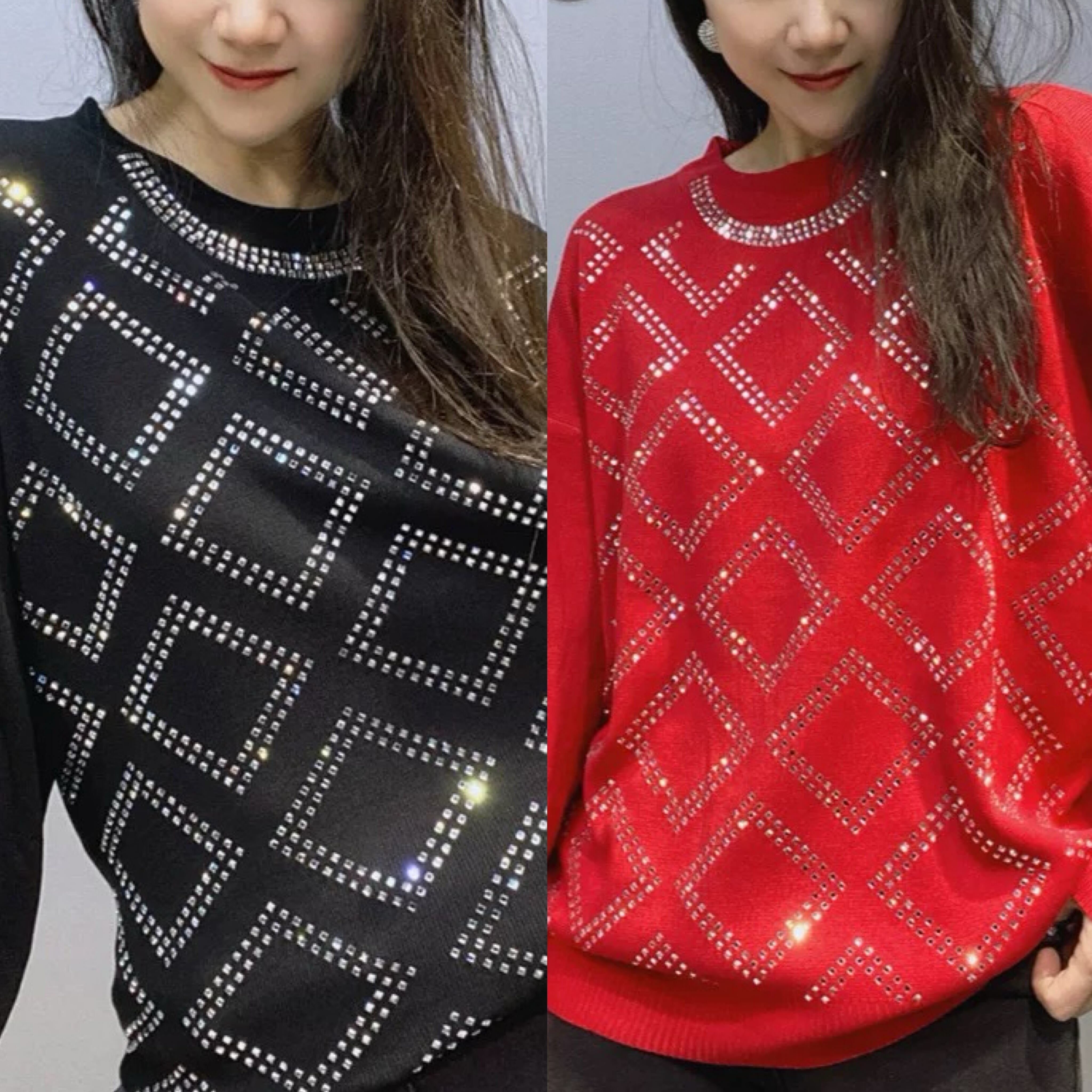 キラキラ ラインストーン 赤 黒 スウェット トレーナー