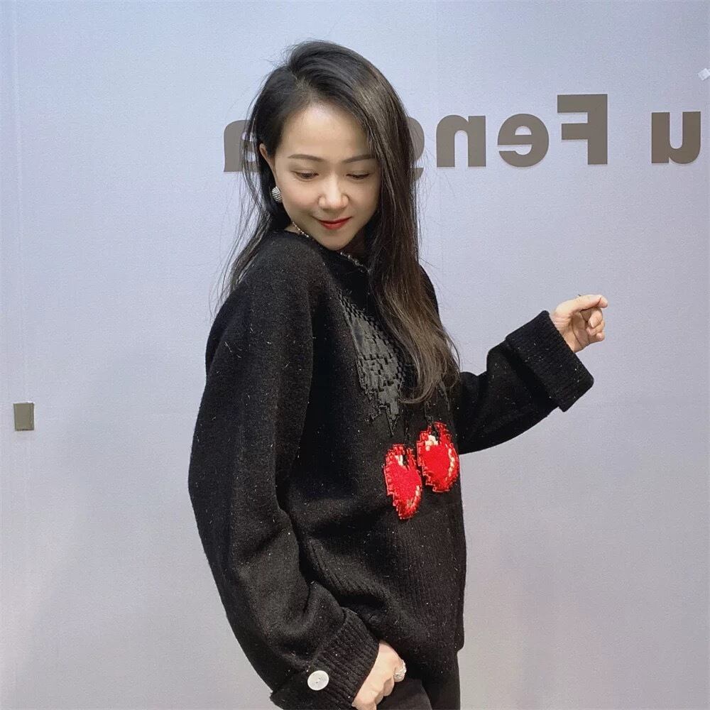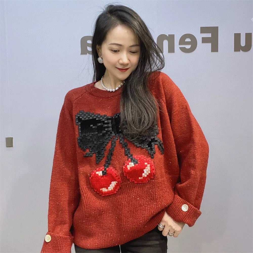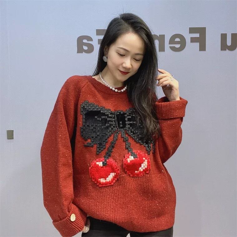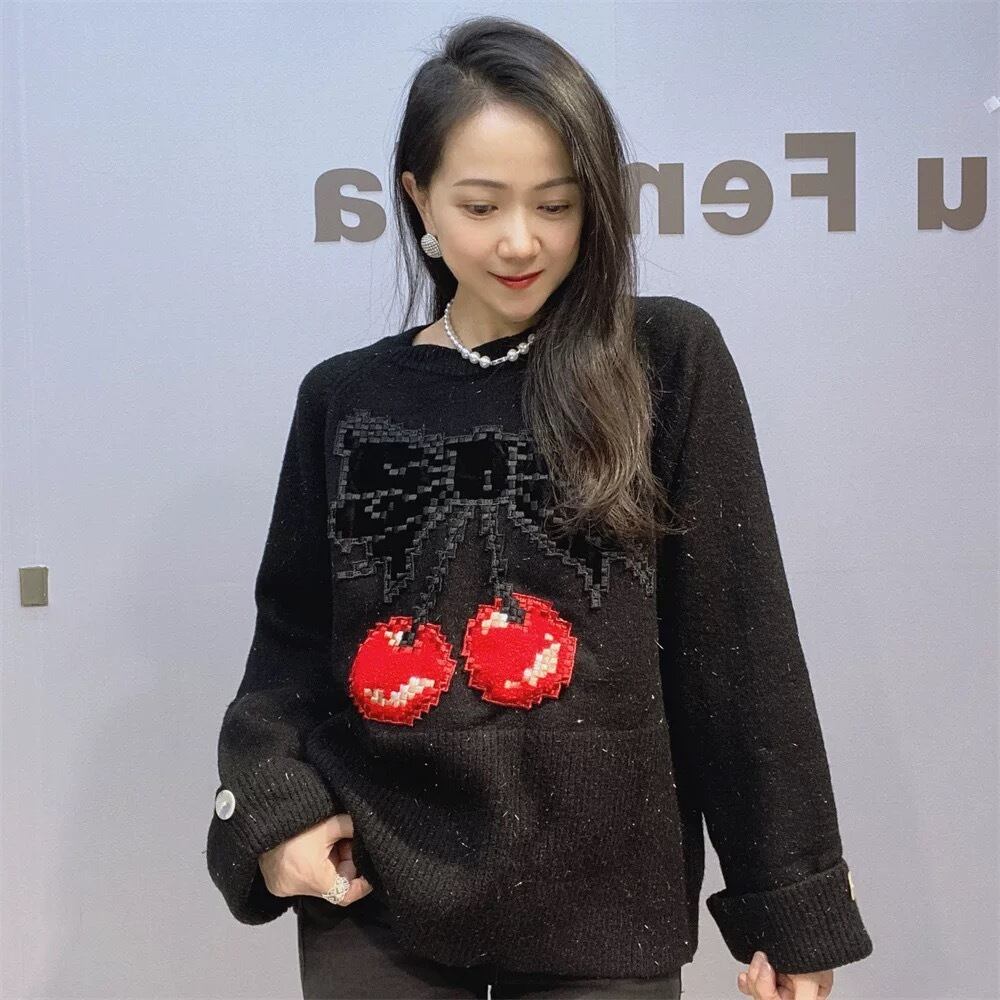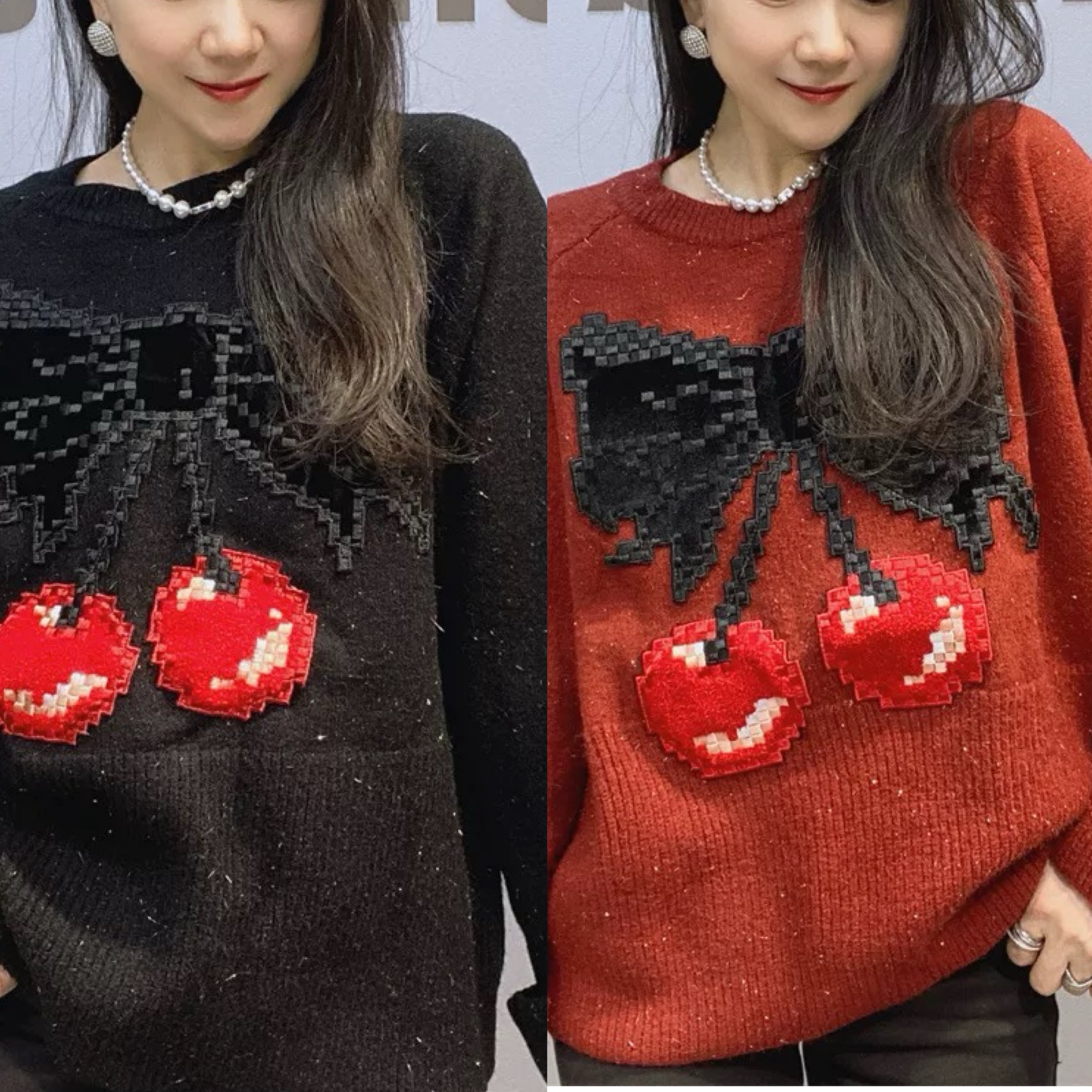 さくらんぼ ハイネック セーター 黒 赤 赤 リボン