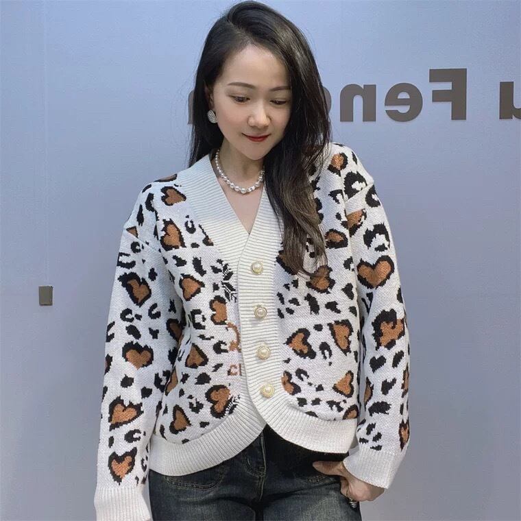 ヒョウ柄 レオパード 茶色 グレー 白 カーディガン