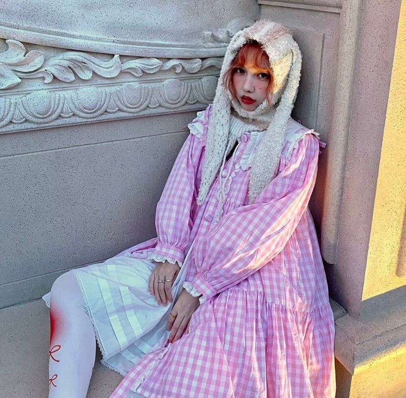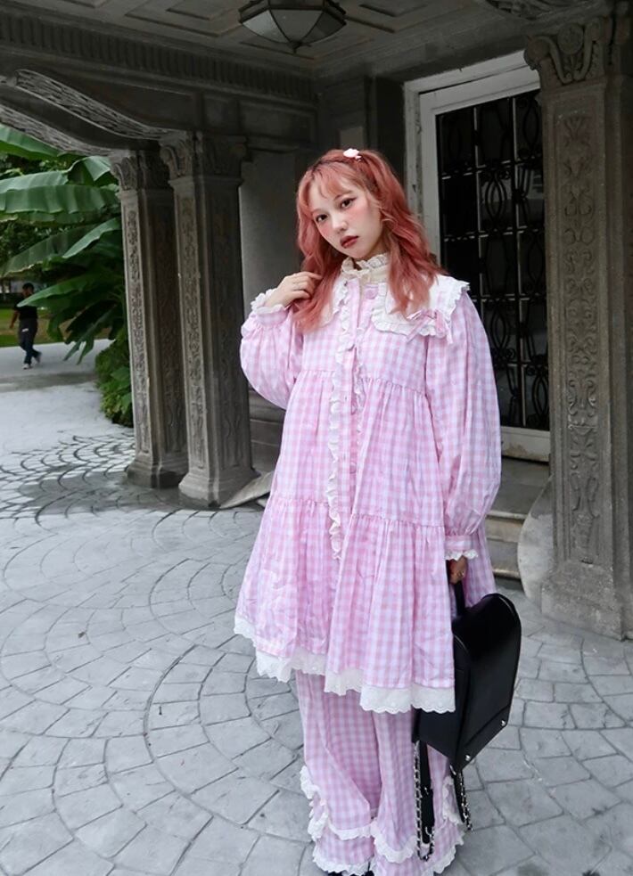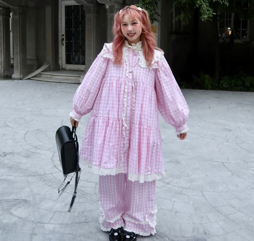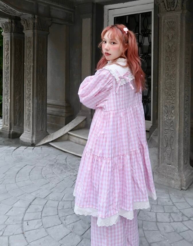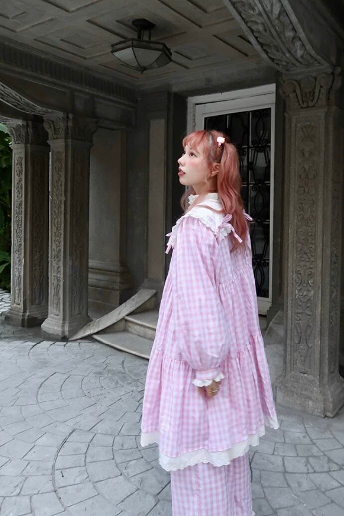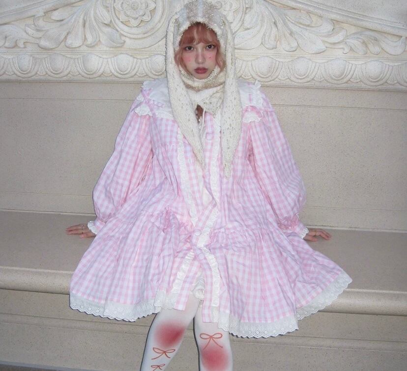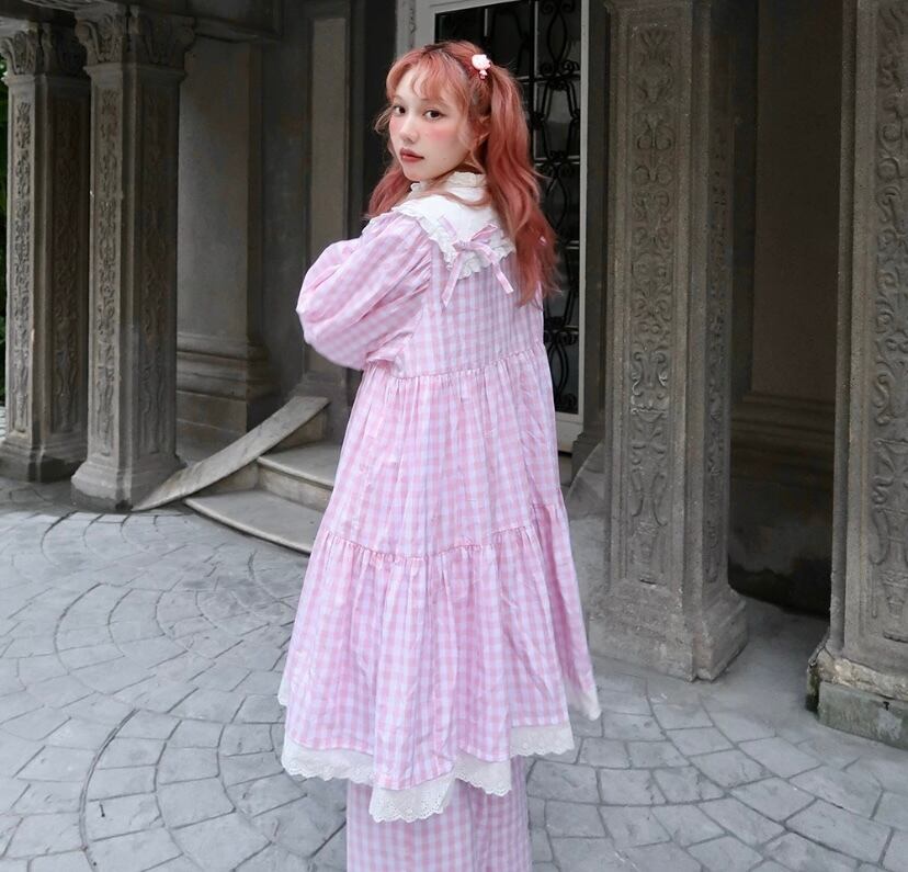 ピンク チェック ワンピース ブラウス カーディガン 可愛い