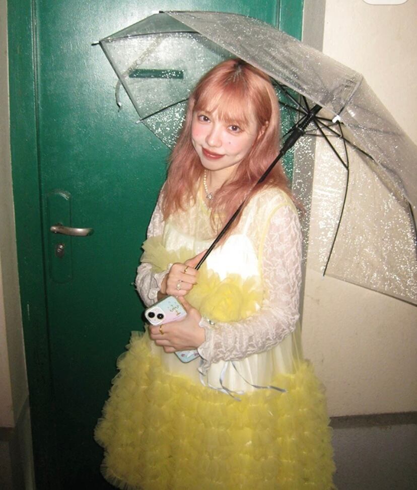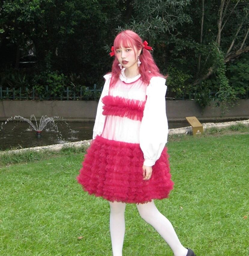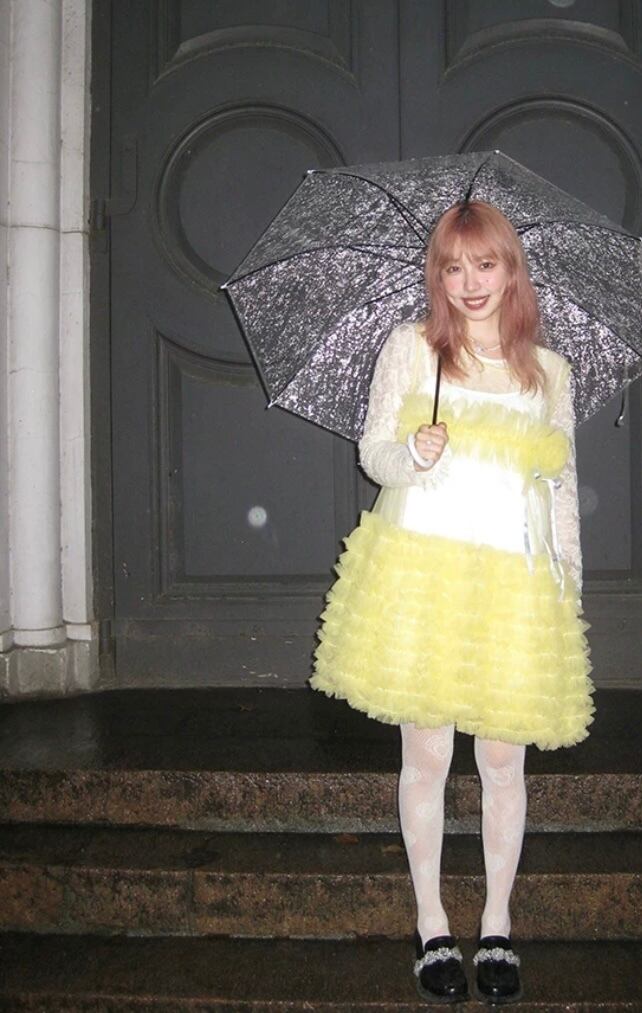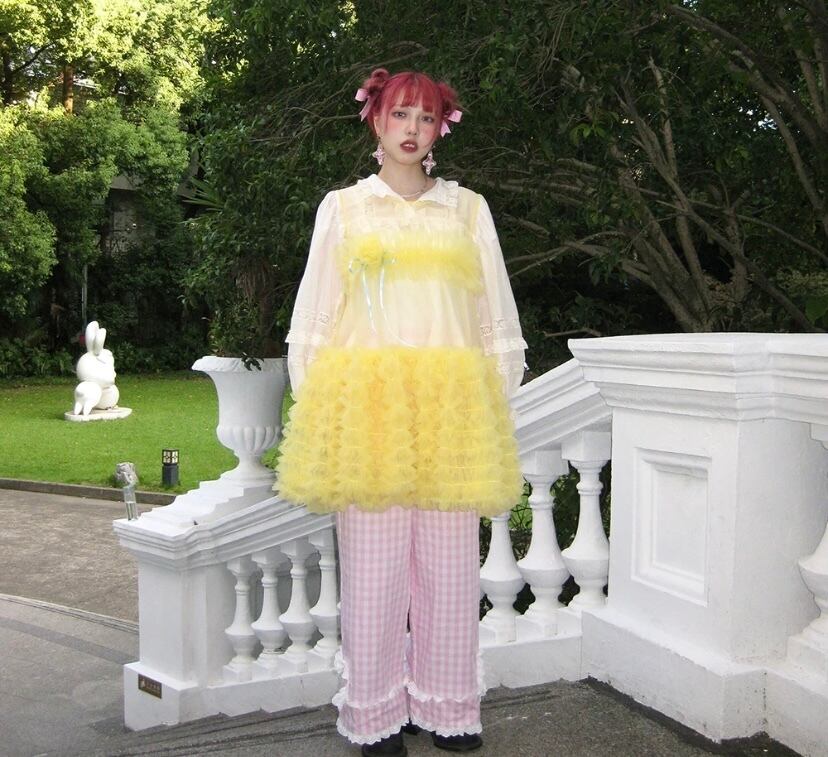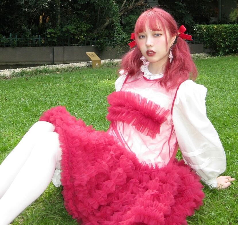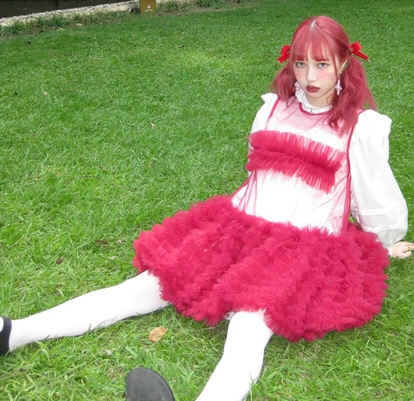 黄色 赤 シースルー 重ね着 可愛い ワンピース ドレス