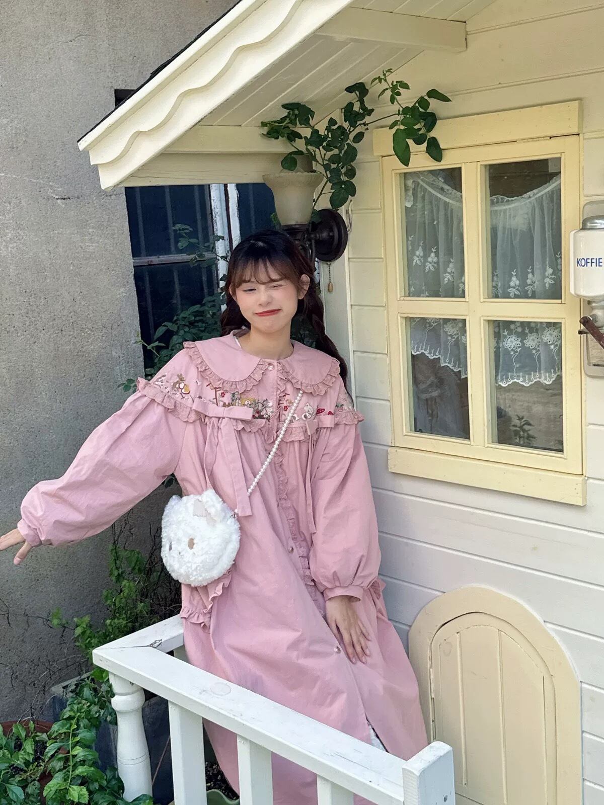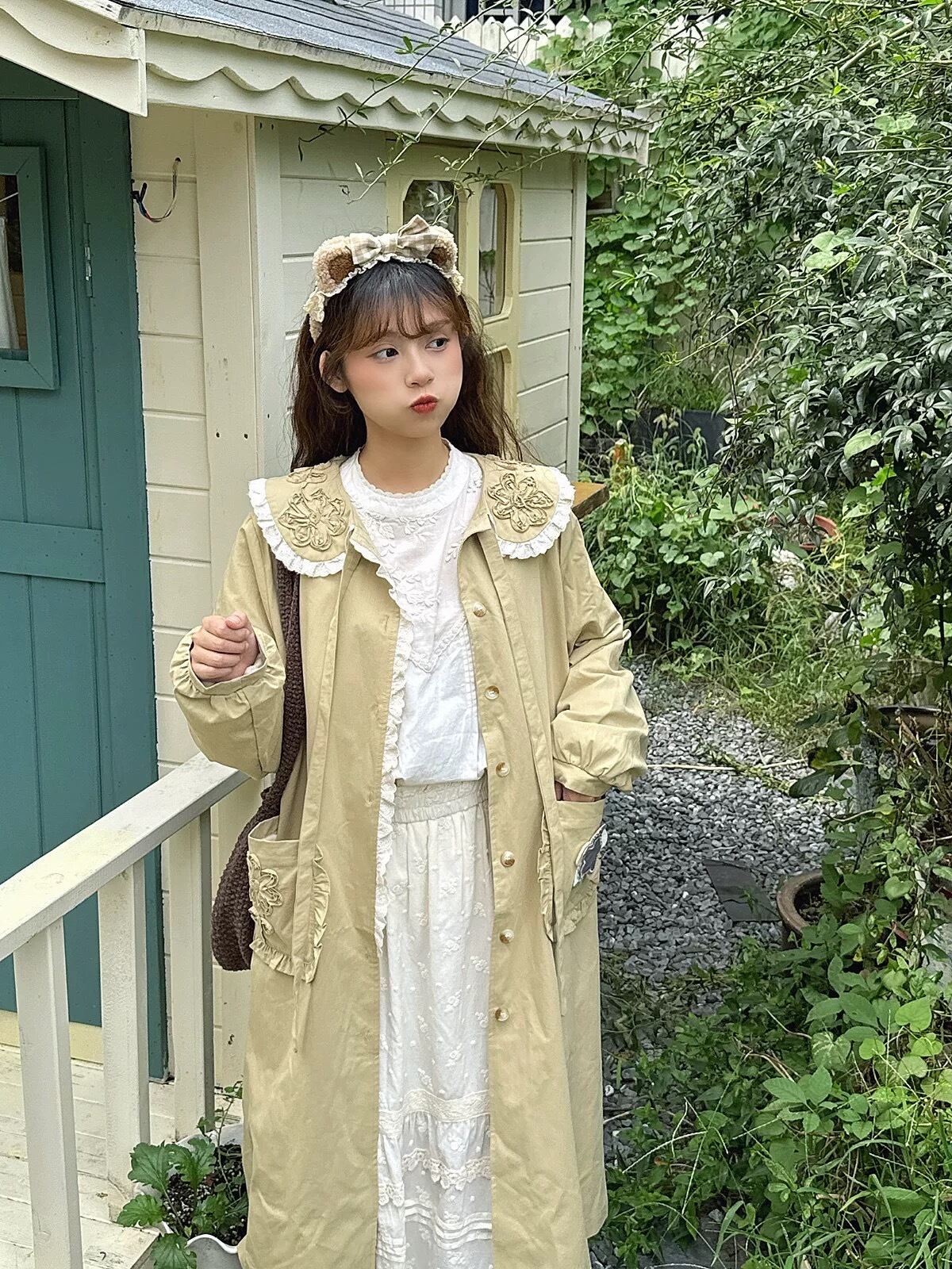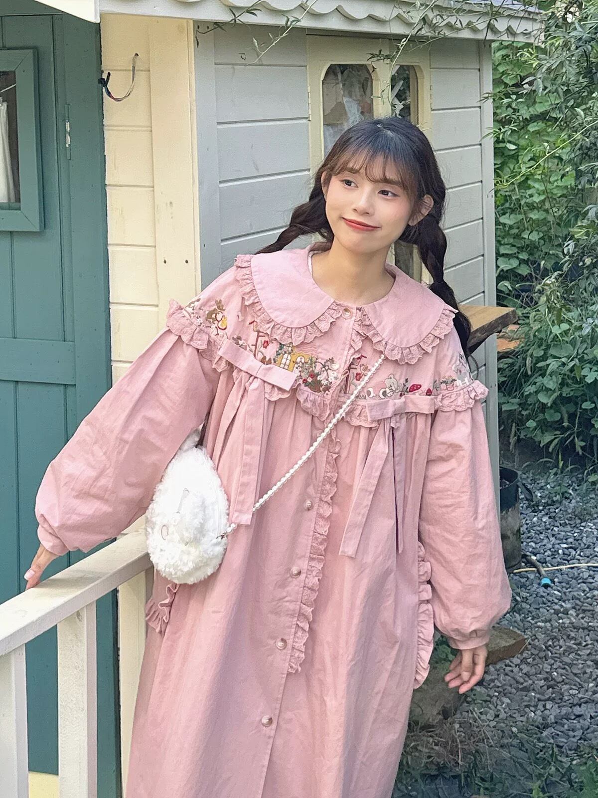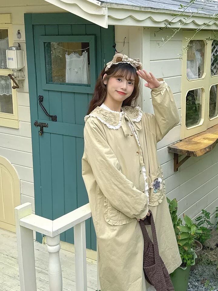 丸襟 コート リボン 可愛い ピンク 緑 春 秋 夏