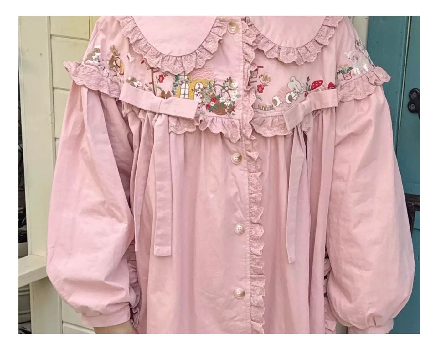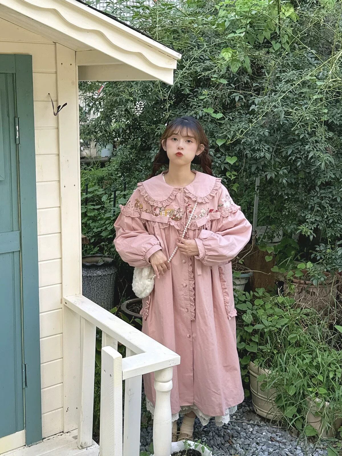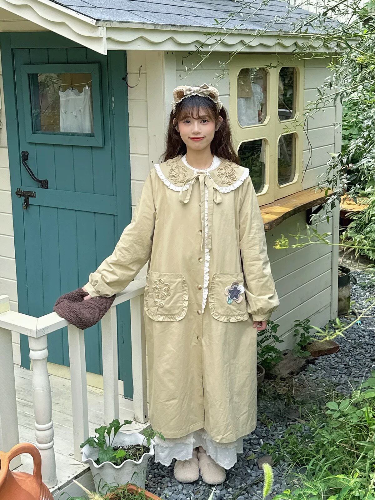 丸襟 コート リボン 可愛い ピンク 緑 春 秋 夏