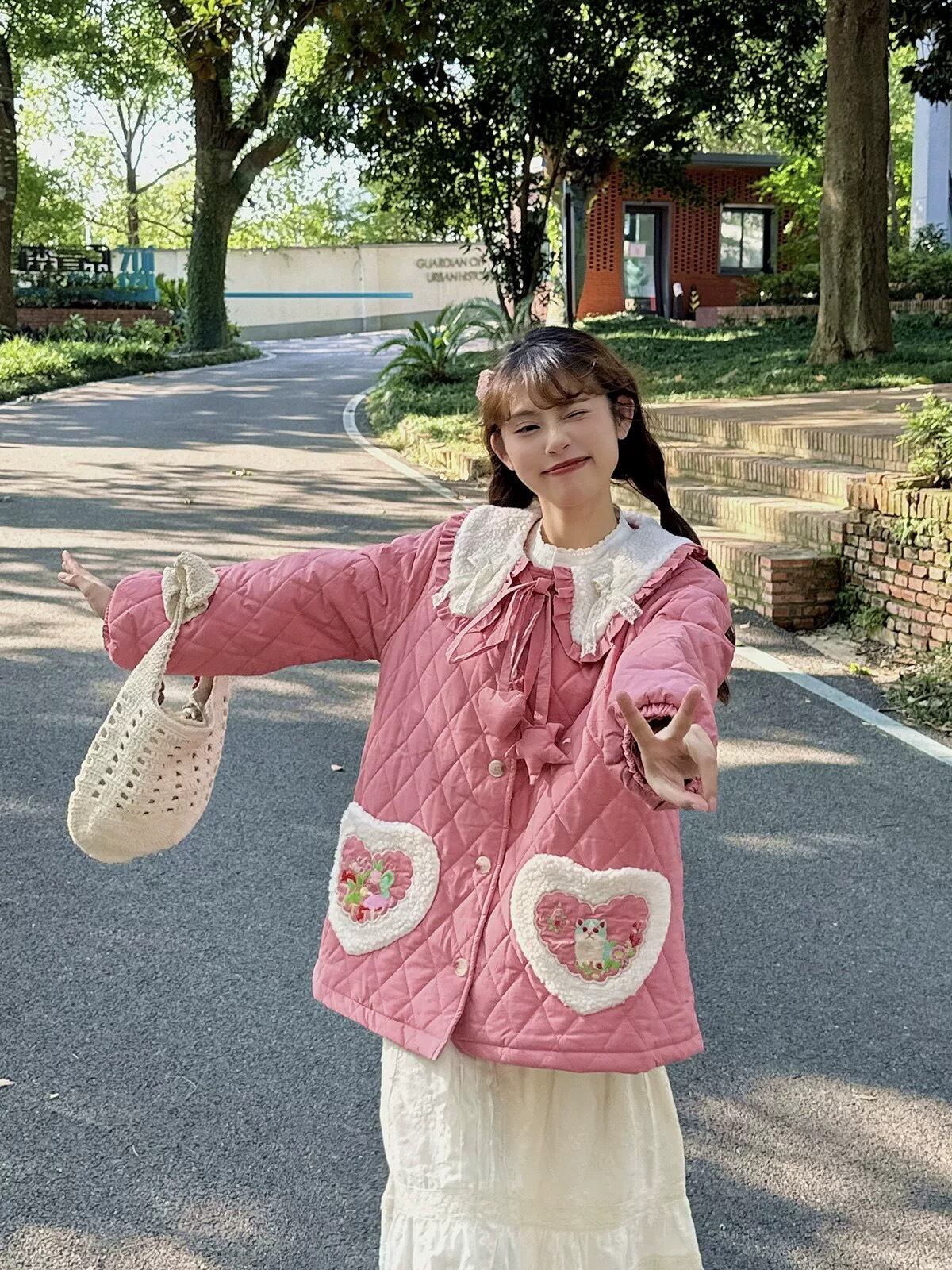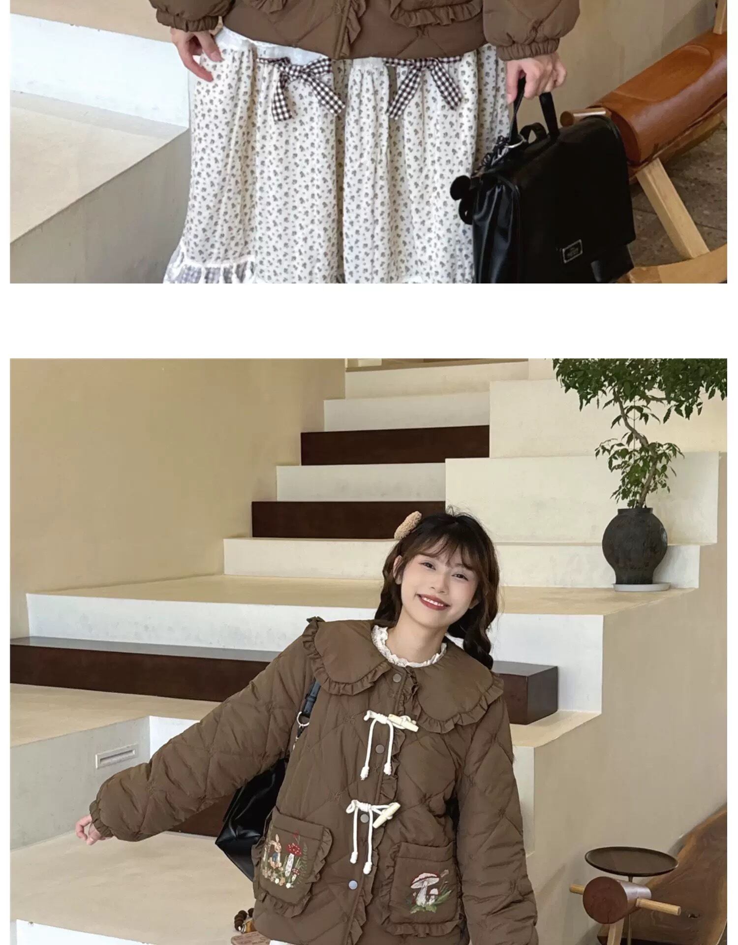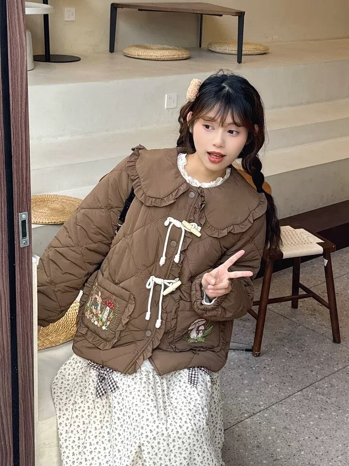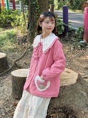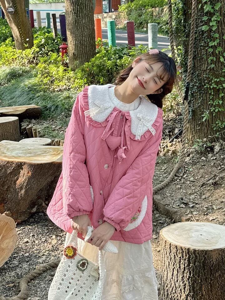 茶色 ピンク 丸襟 ジャケット アウター コート