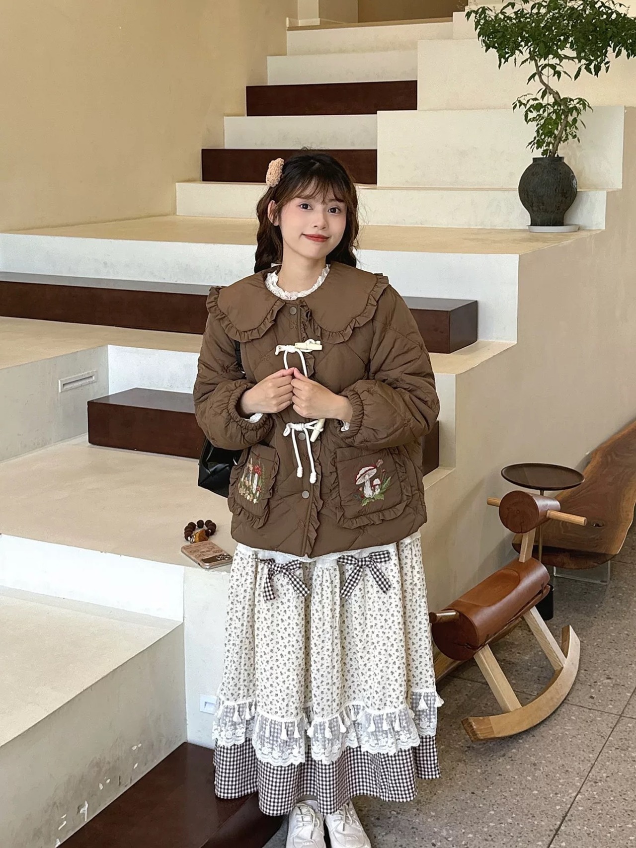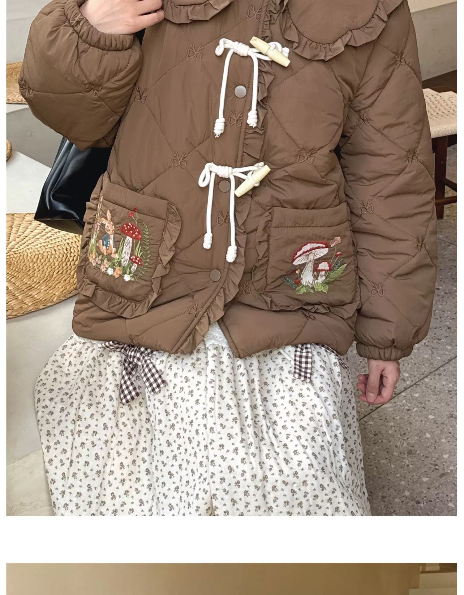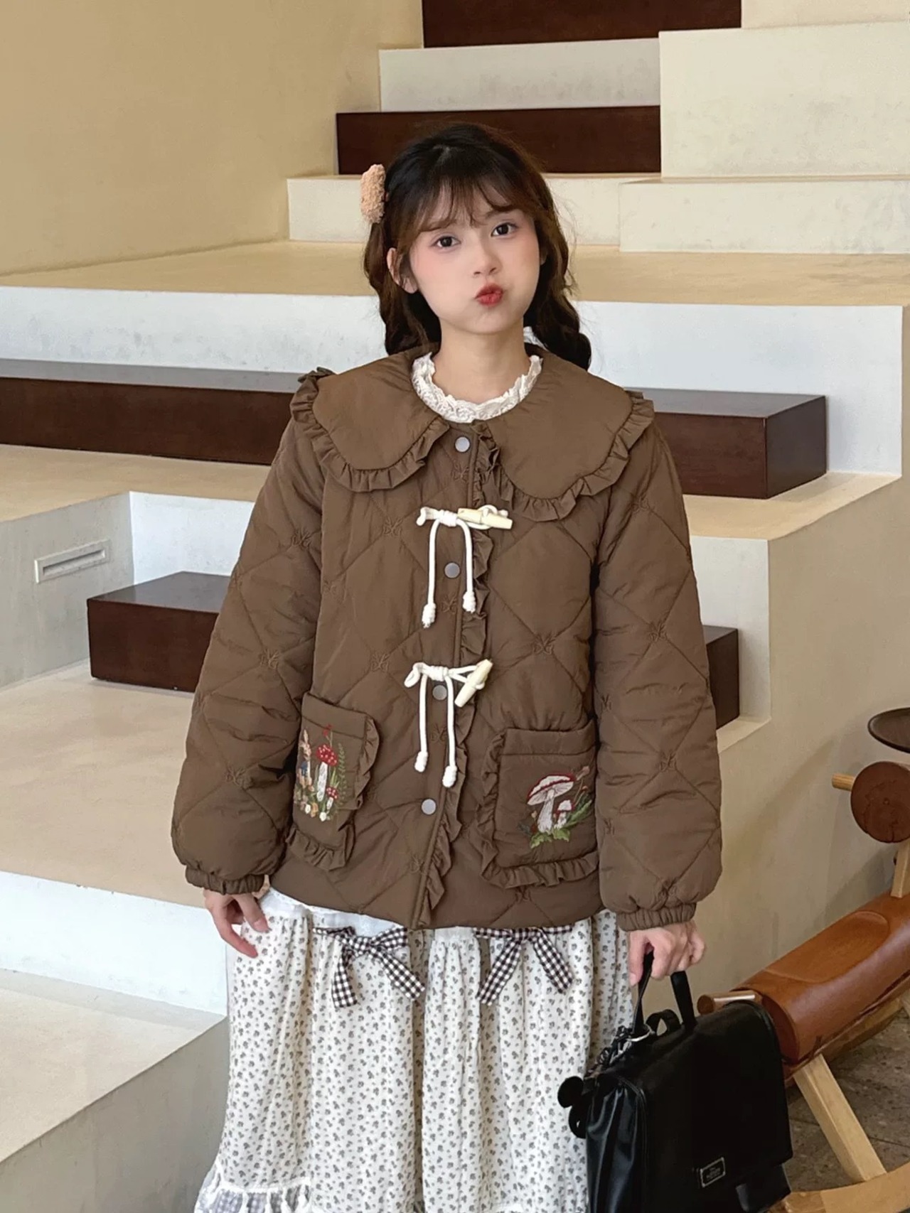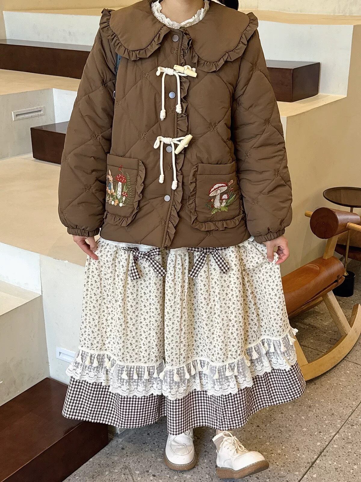 茶色 ピンク 丸襟 ジャケット アウター コート