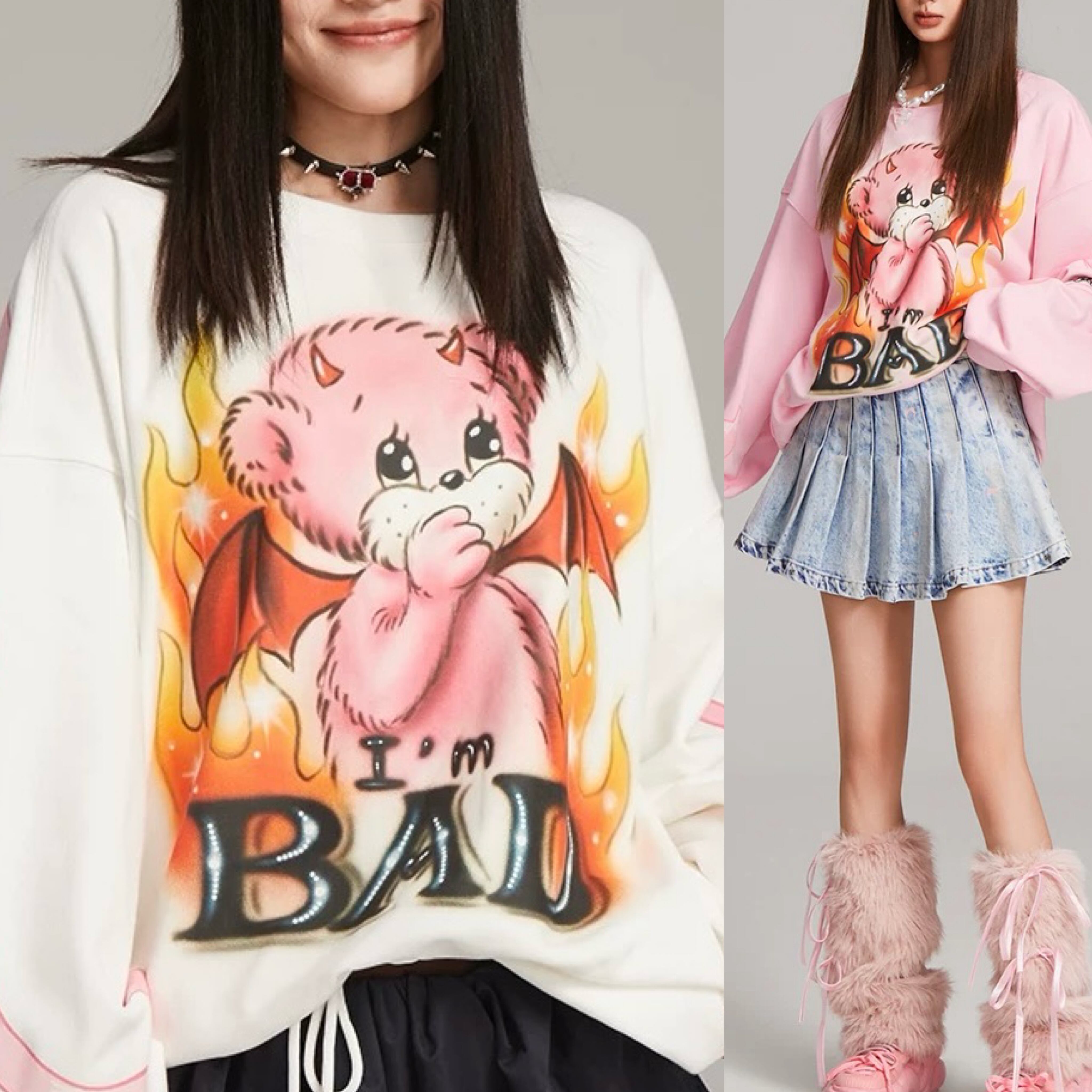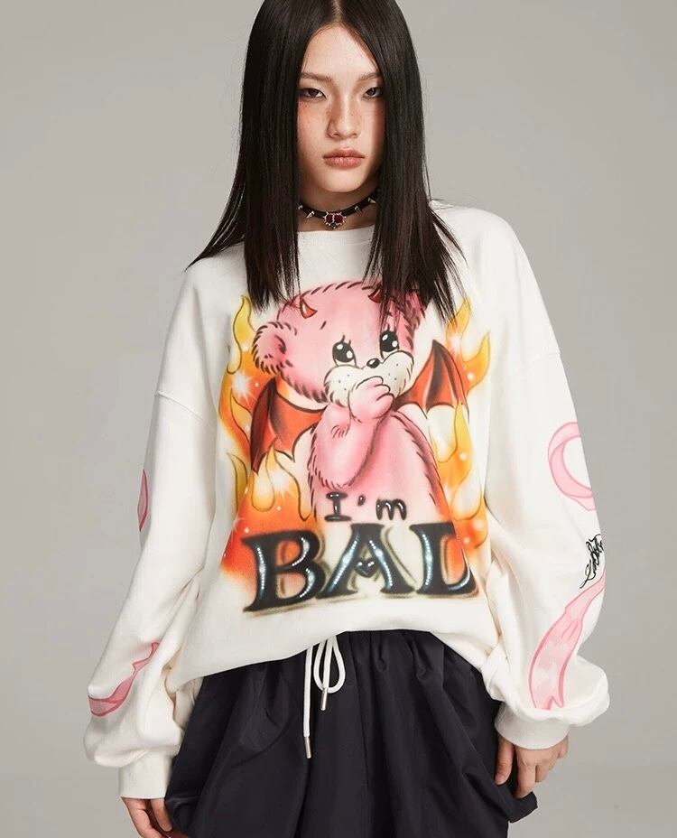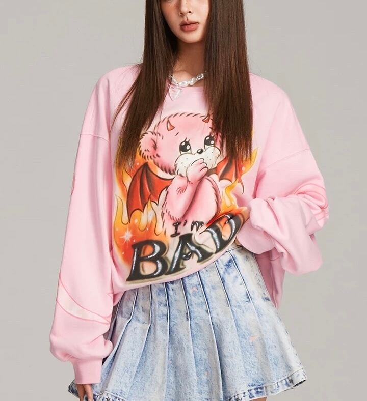 くまさん 白 ピンク トレーナー スウェット カジュアル