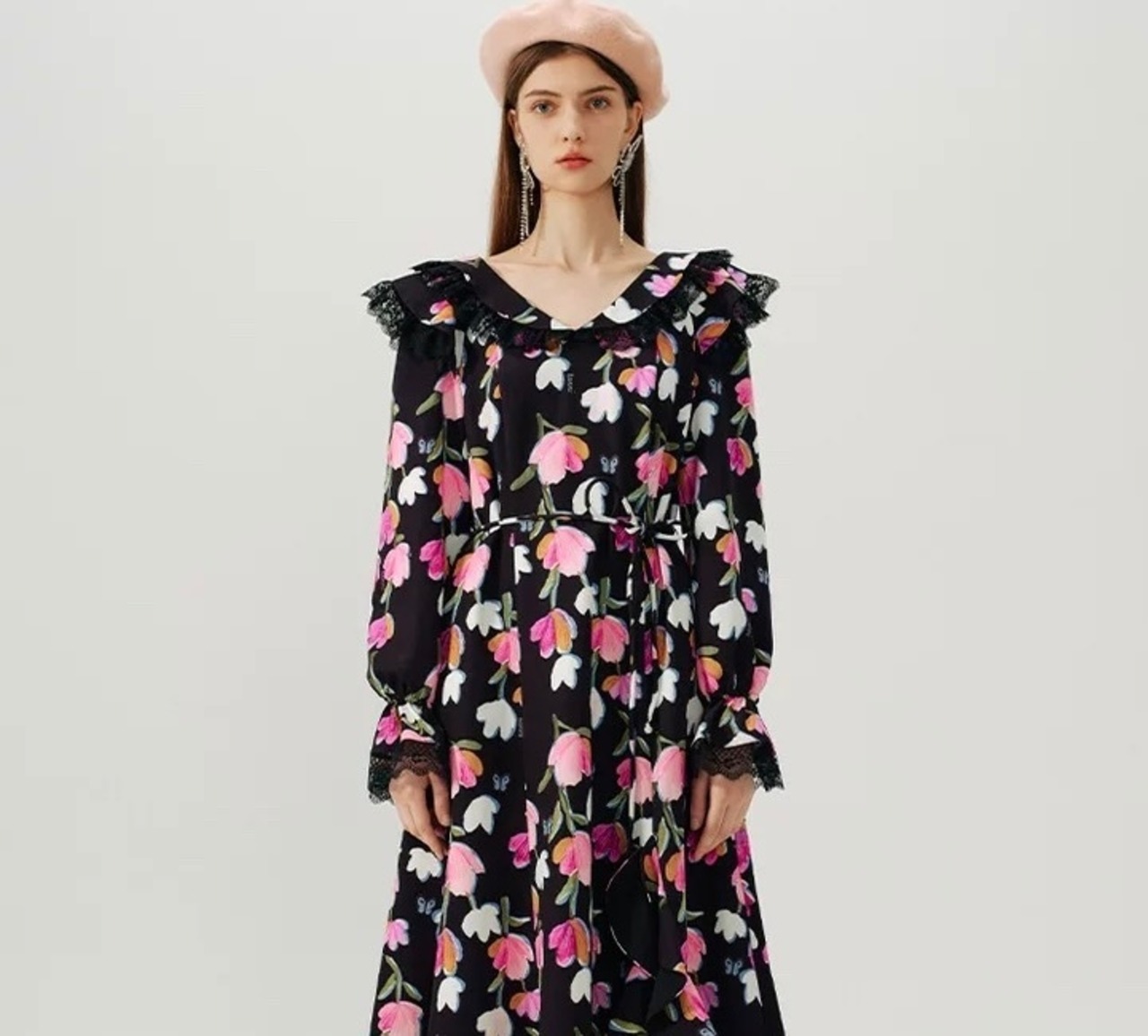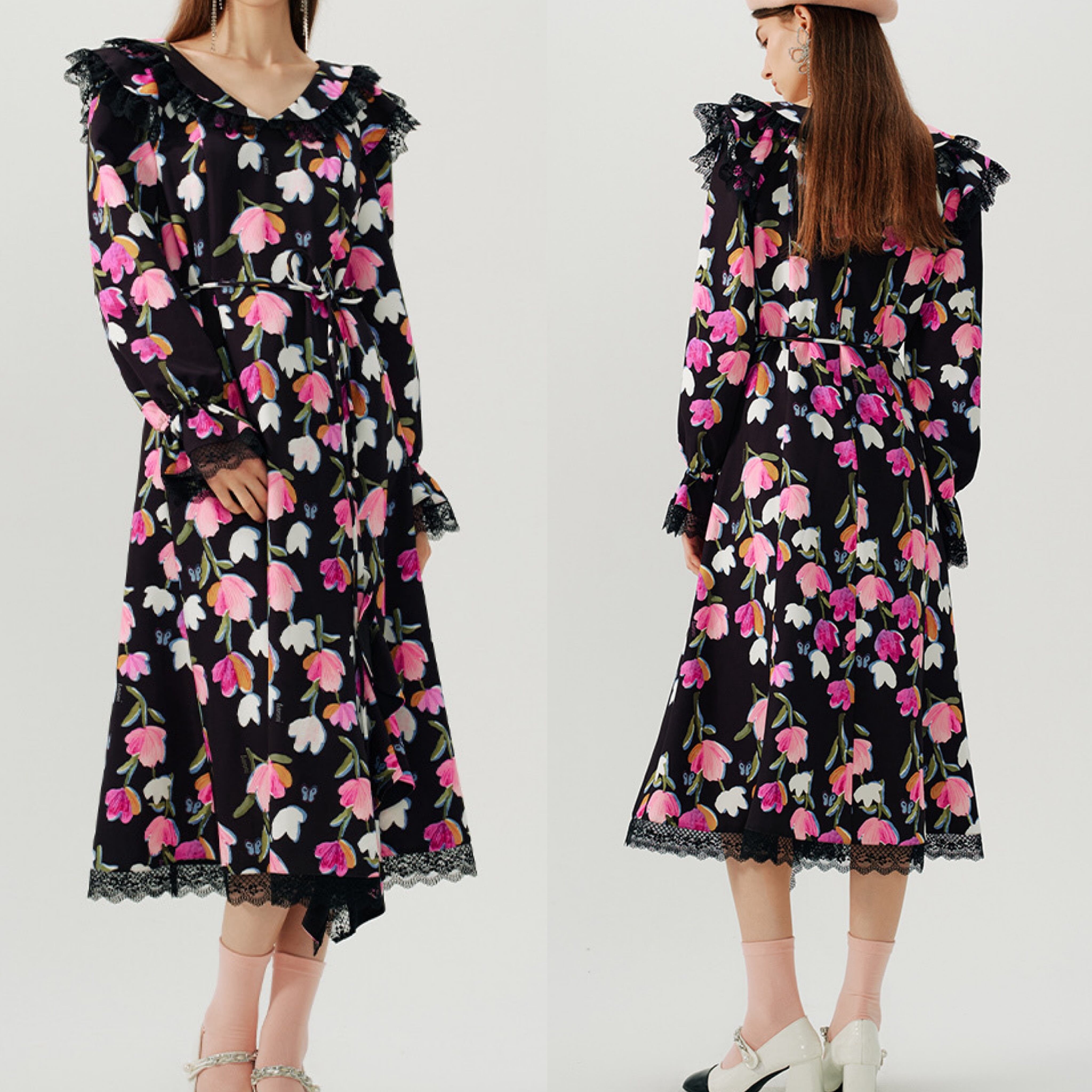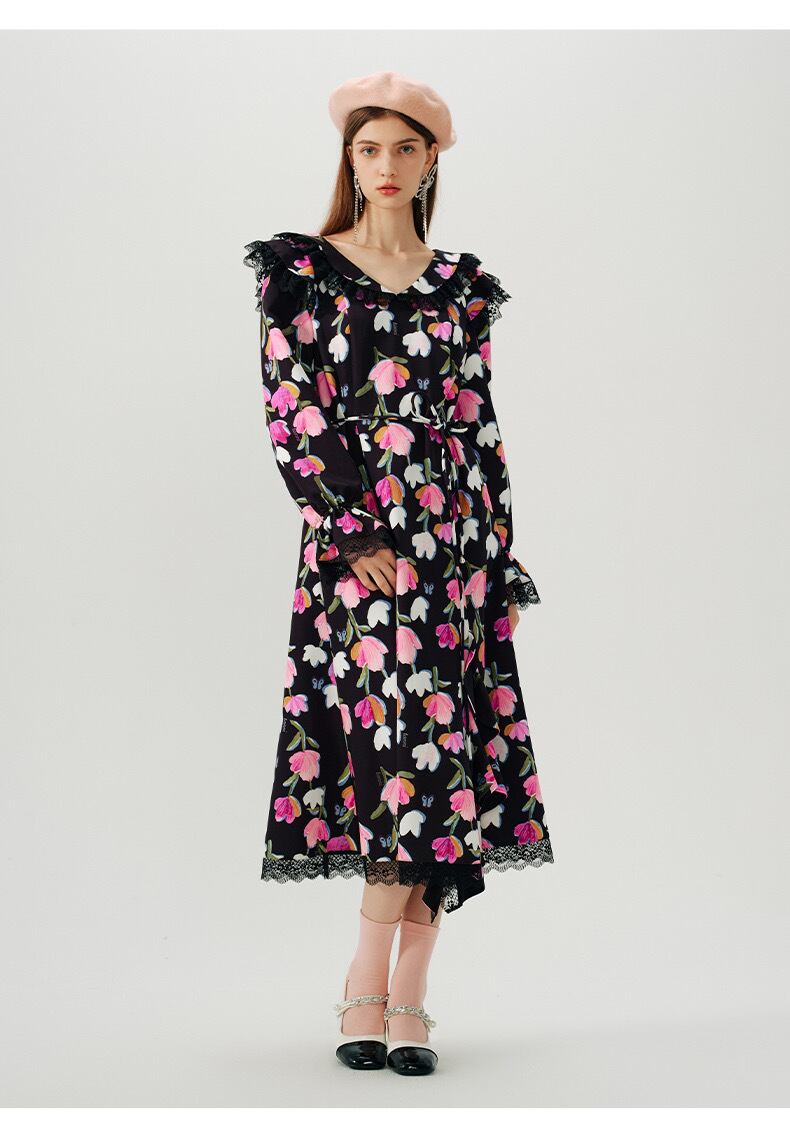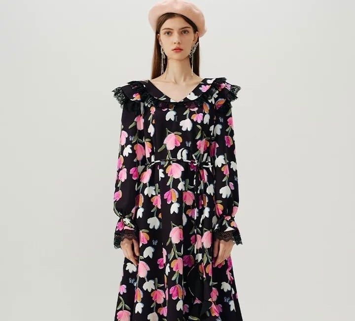花柄 フラワー エレガント ワンピース ピンク 黒