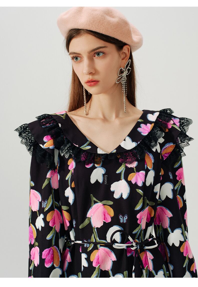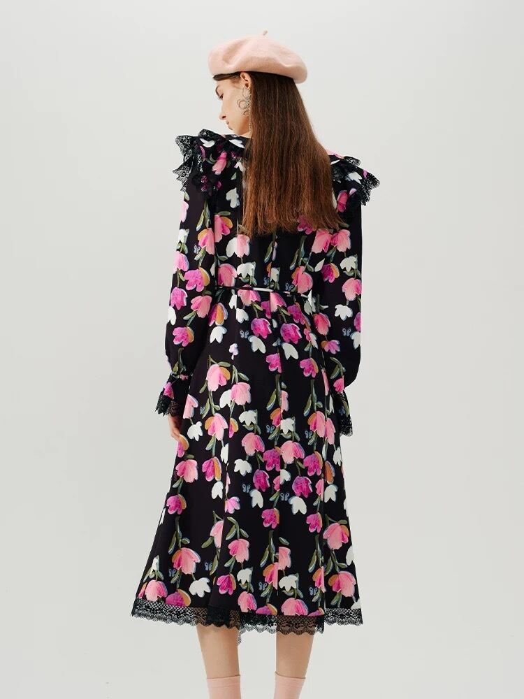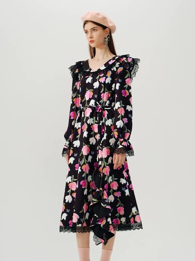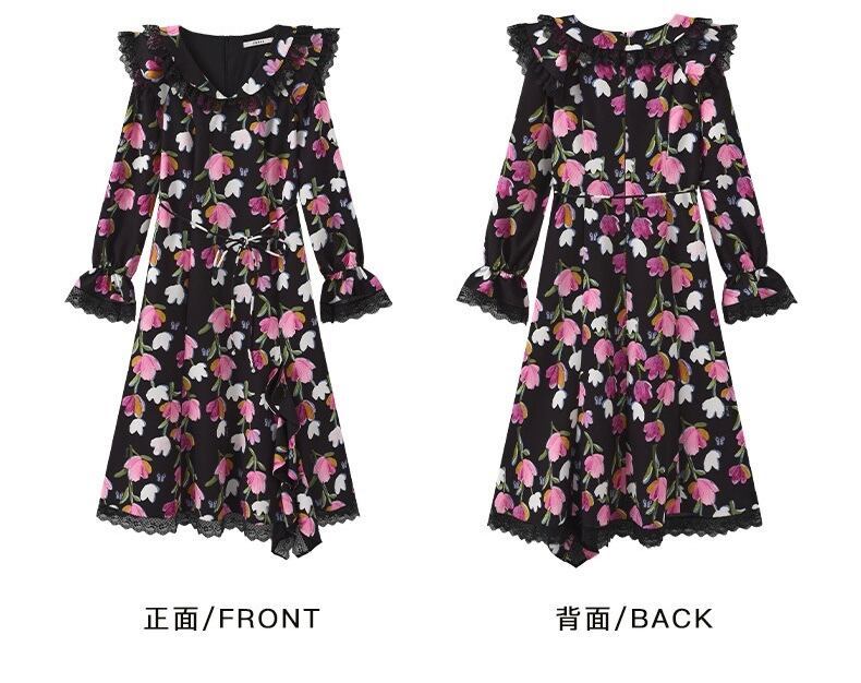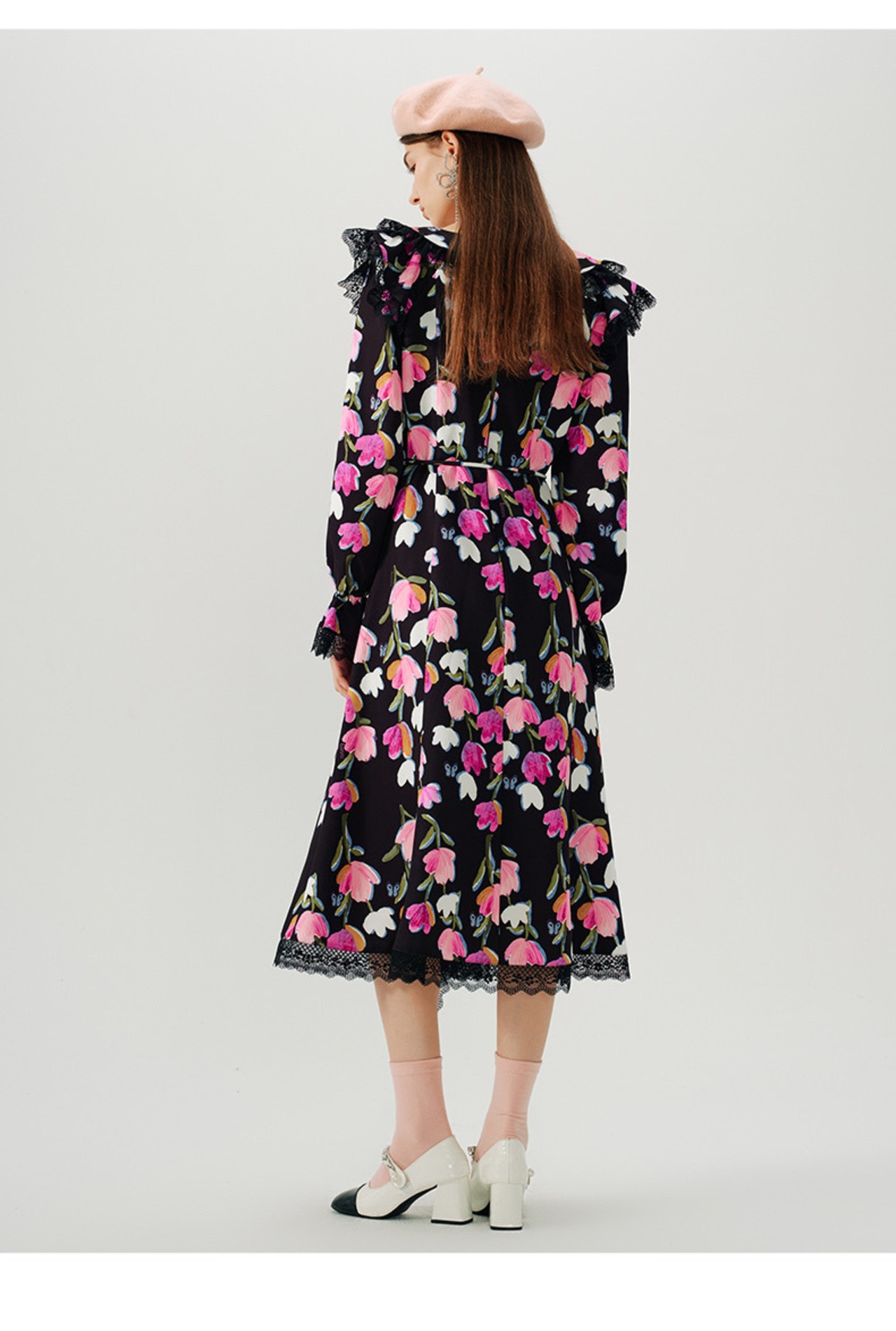 花柄 フラワー エレガント ワンピース ピンク 黒