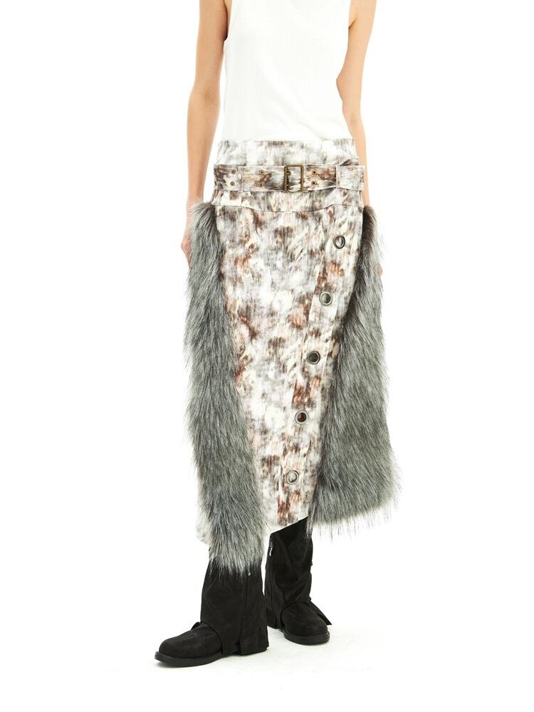 タイト ファー マキシ スリット スカート ボトムス
