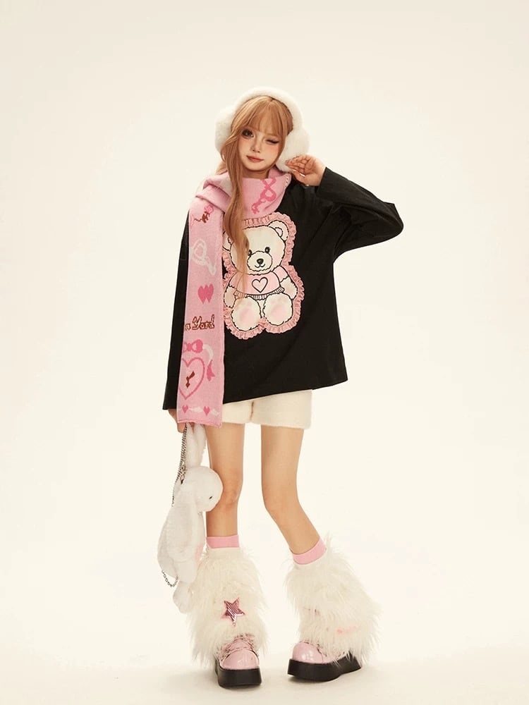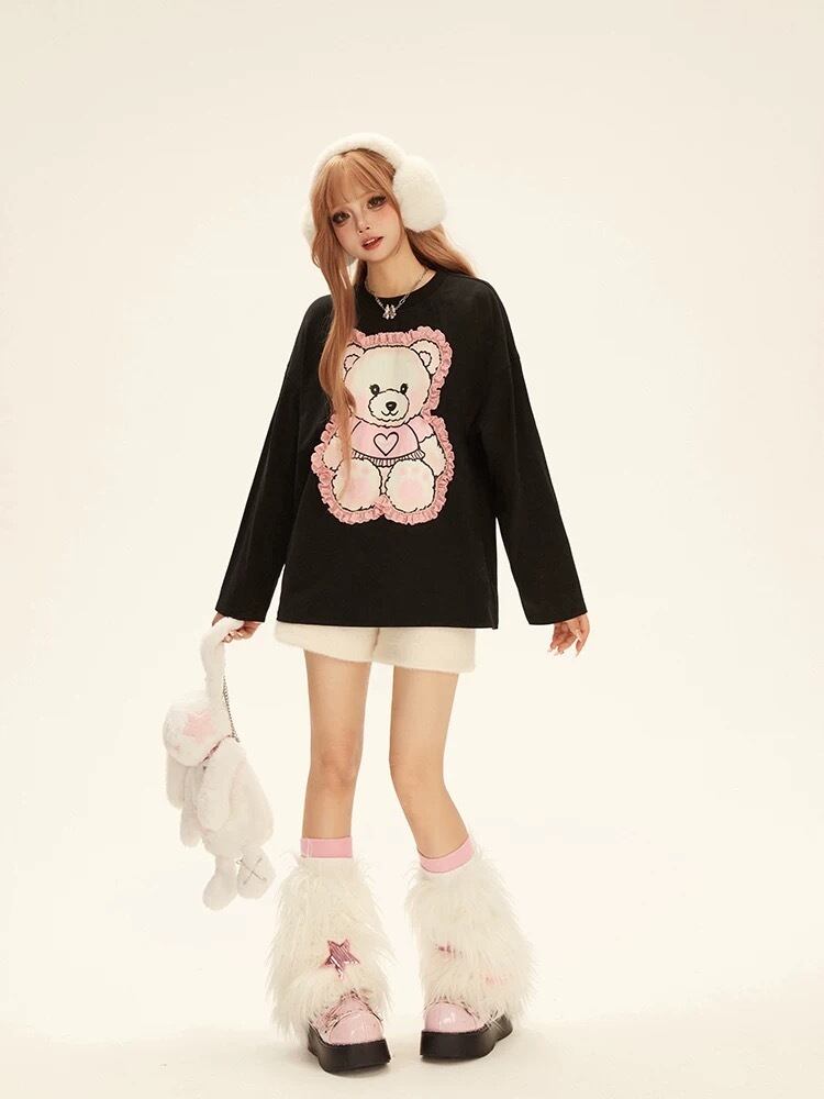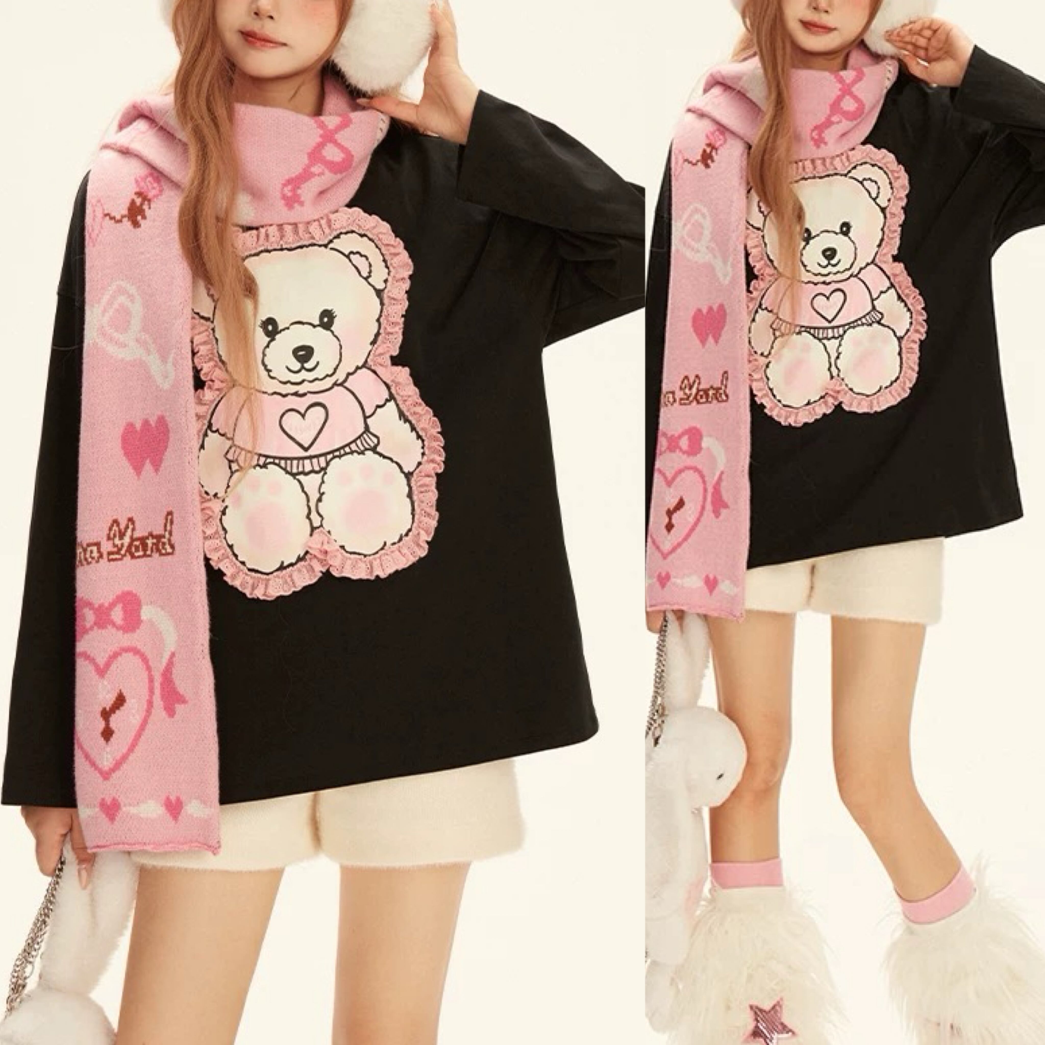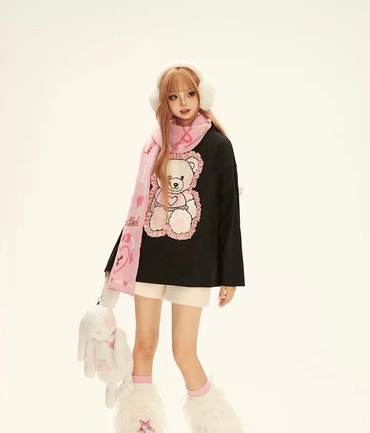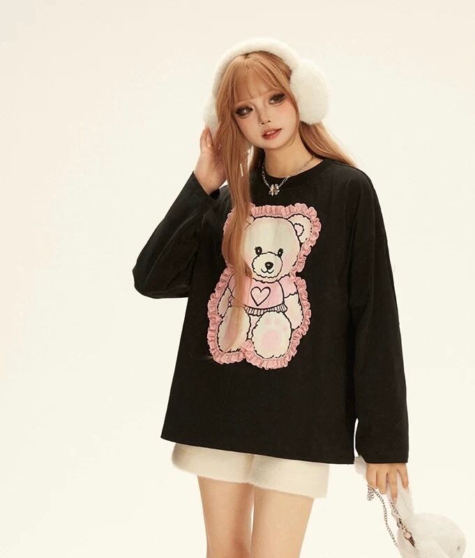 くまさん ガーリー 黒 ピンク トレーナー リボン 可愛い