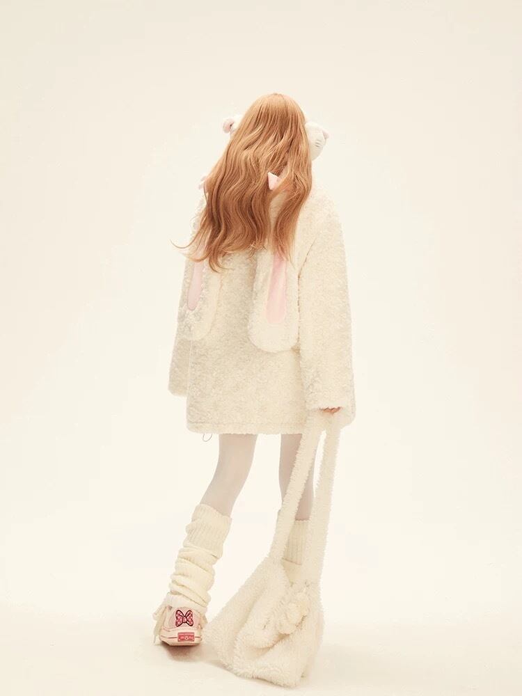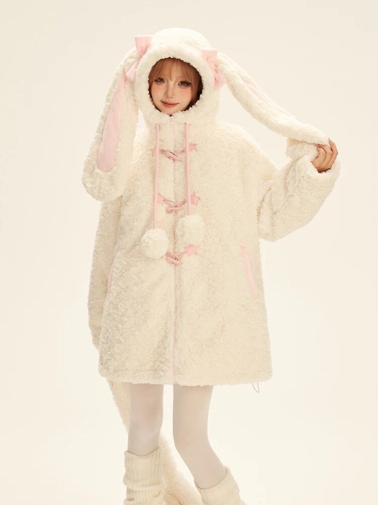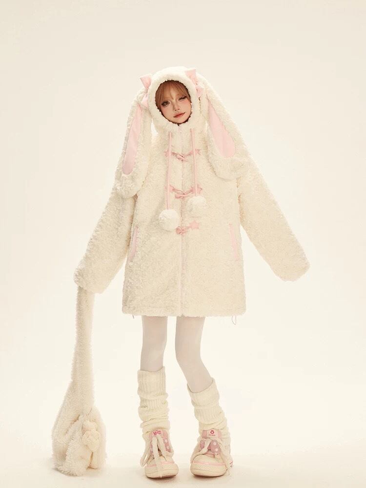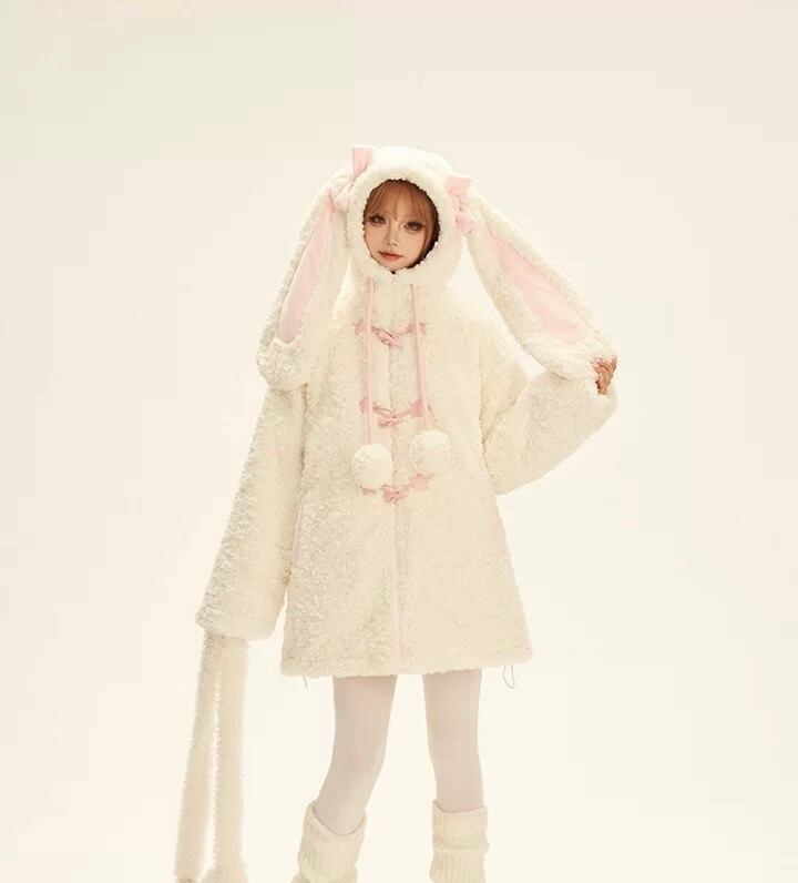 うさぎ ぽんぽん 白 ホワイト 耳 コート