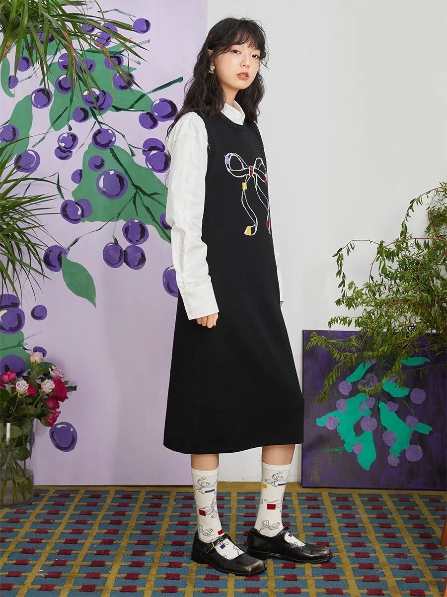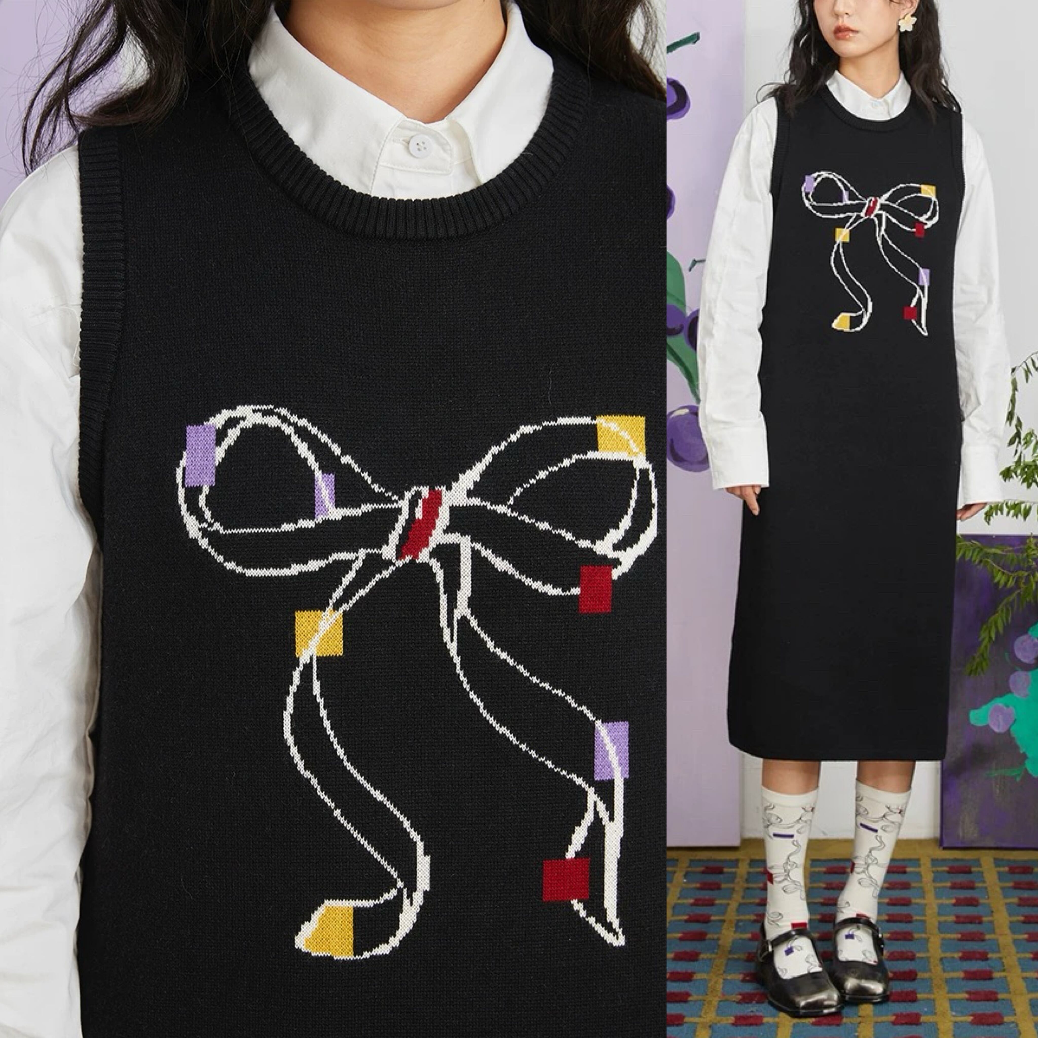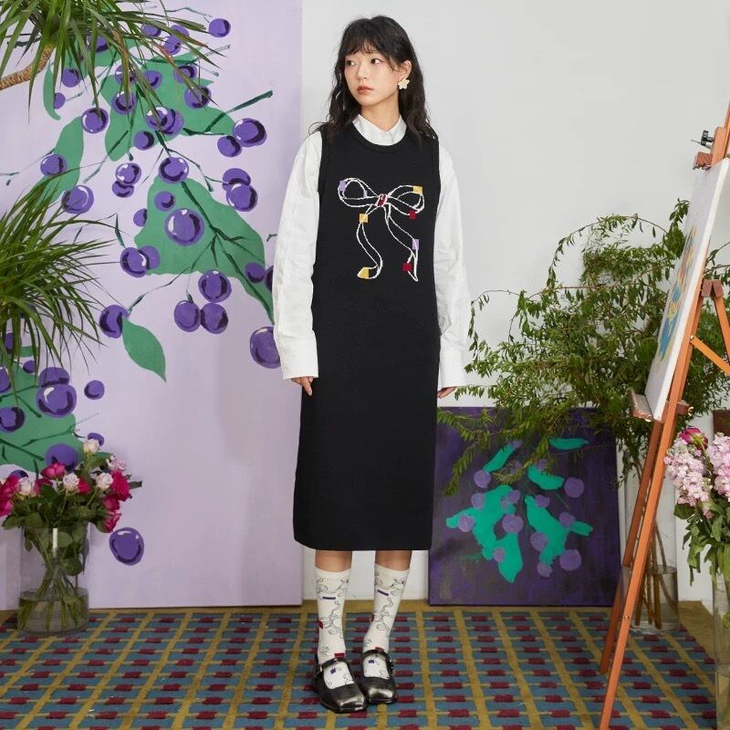 黒 リボン ゆったり ワンピース 可愛い カジュアル