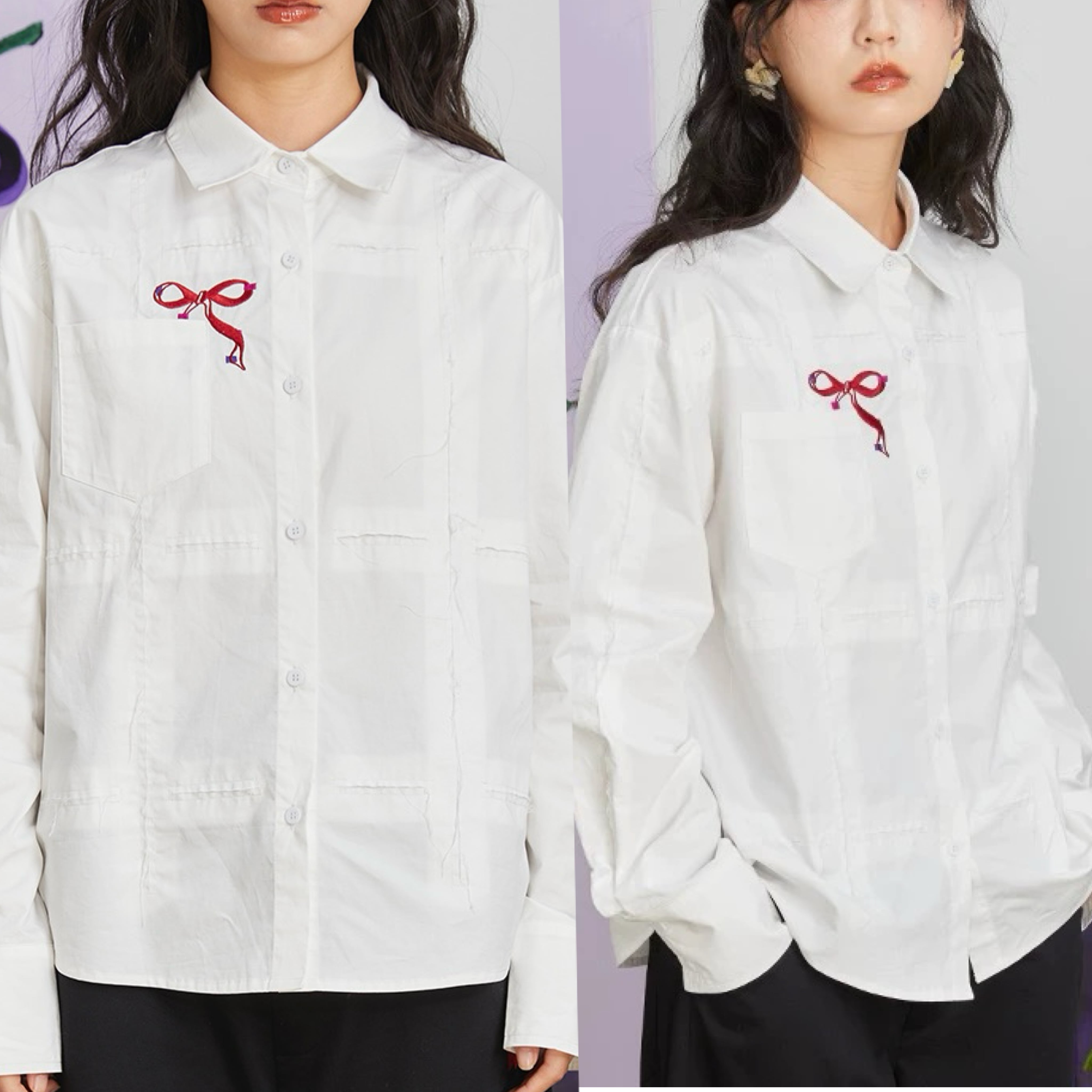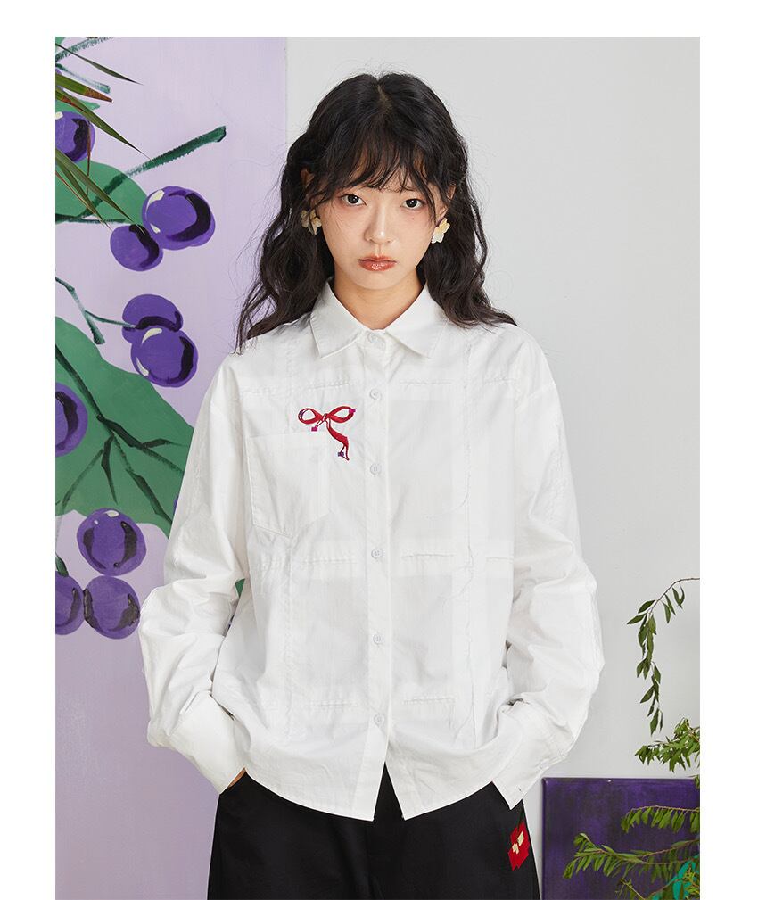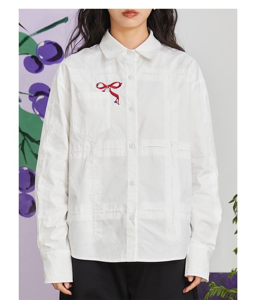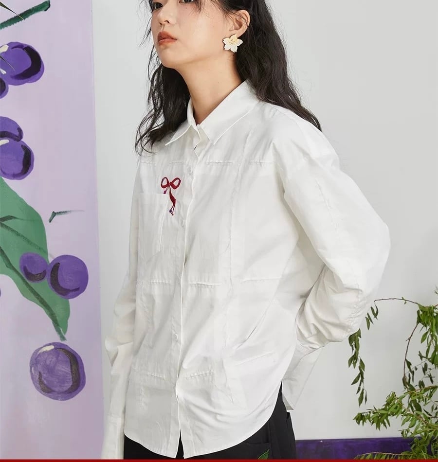 白 赤 リボン シャツ ブラウス トップス