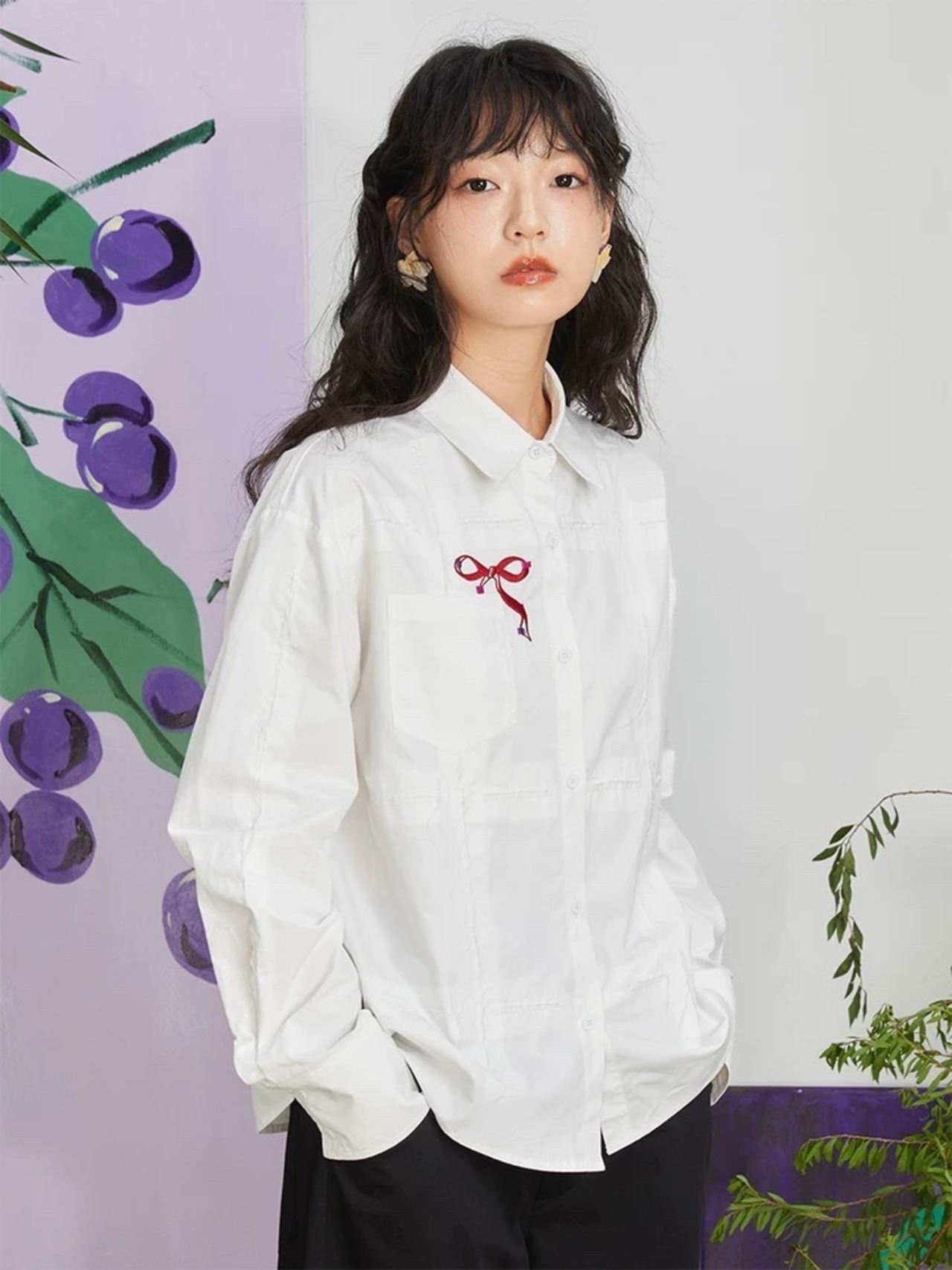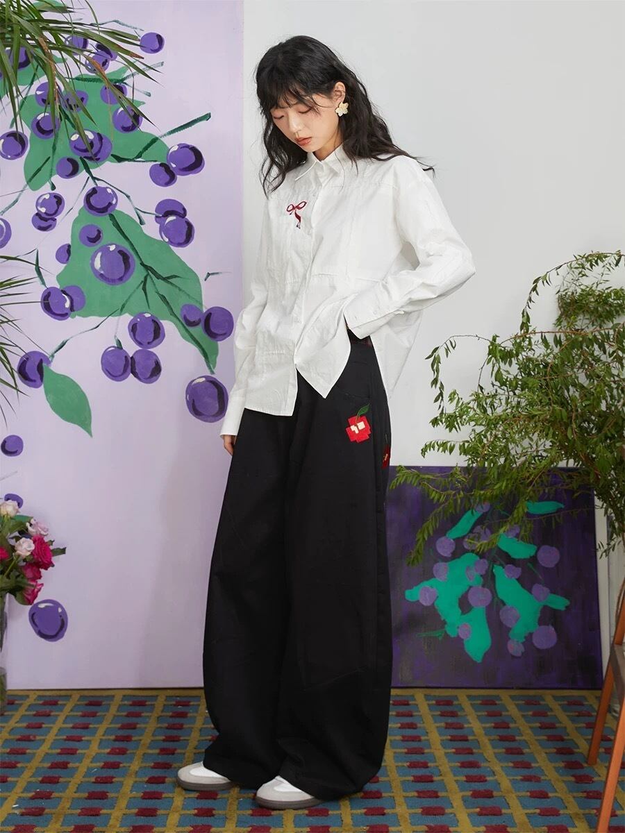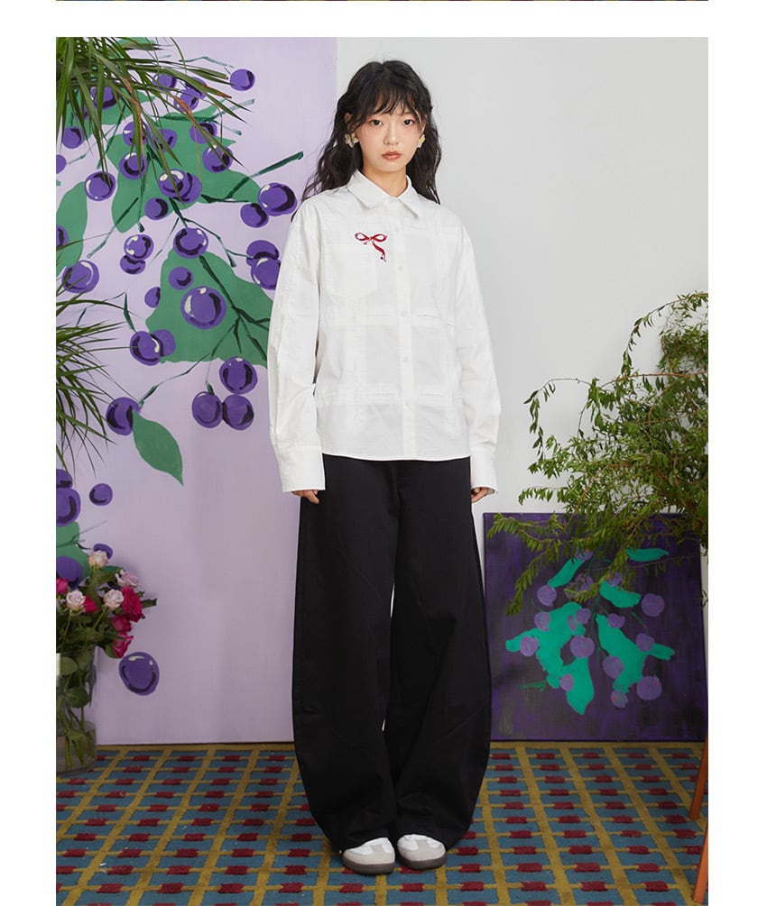 白 赤 リボン シャツ ブラウス トップス