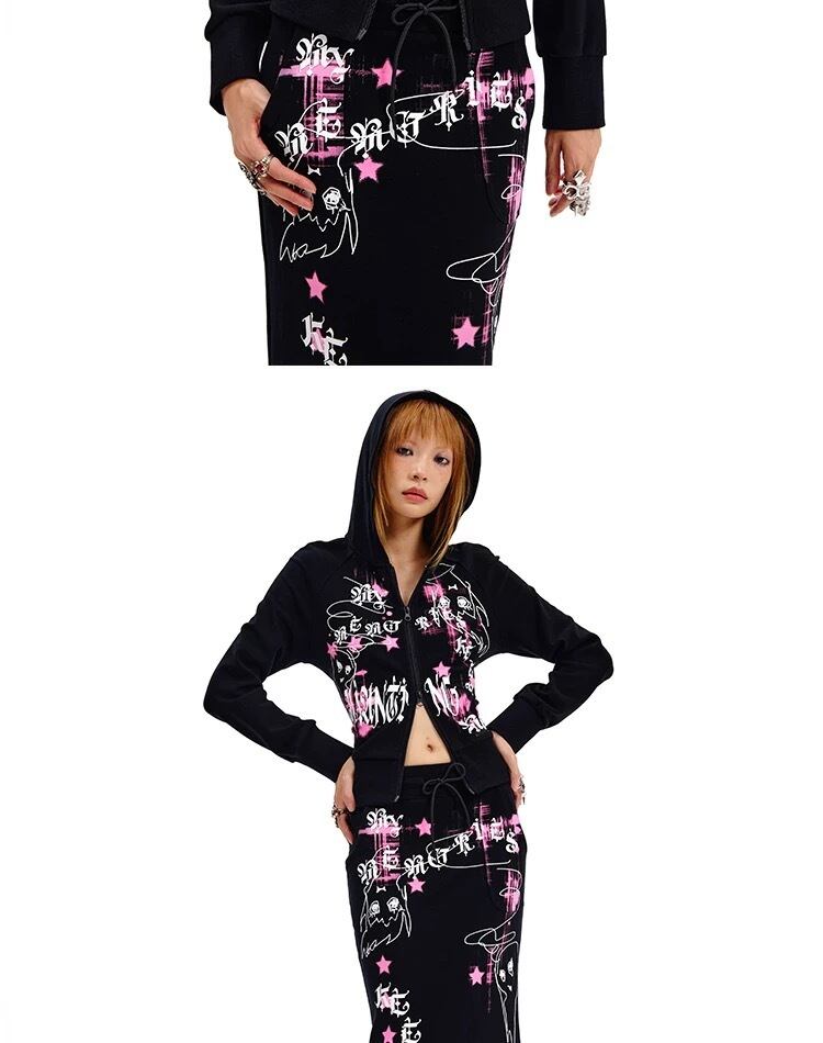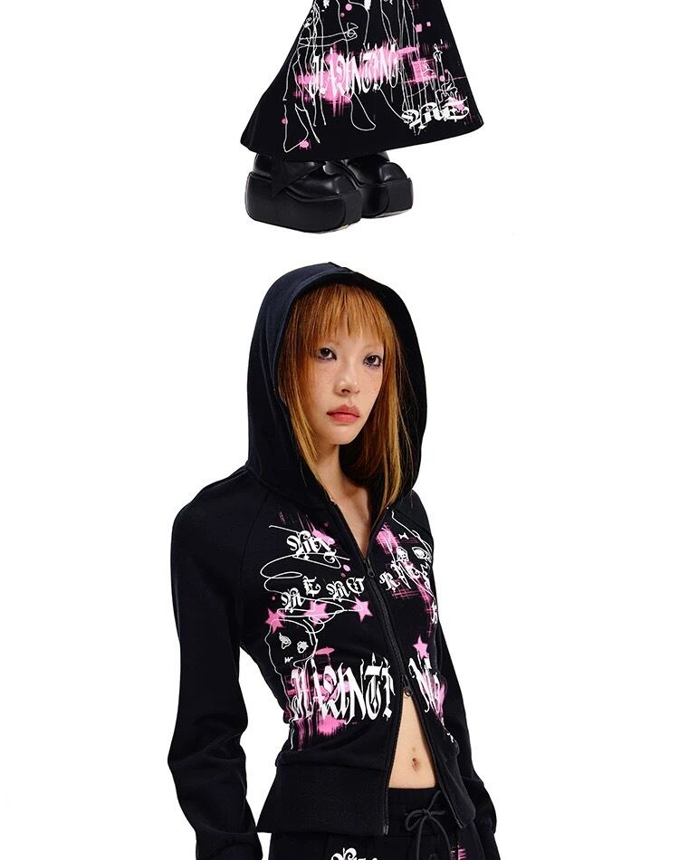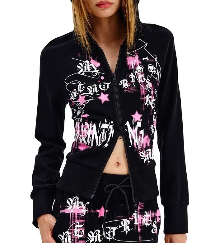 黒 ピンク スウェット パーカー カジュアル