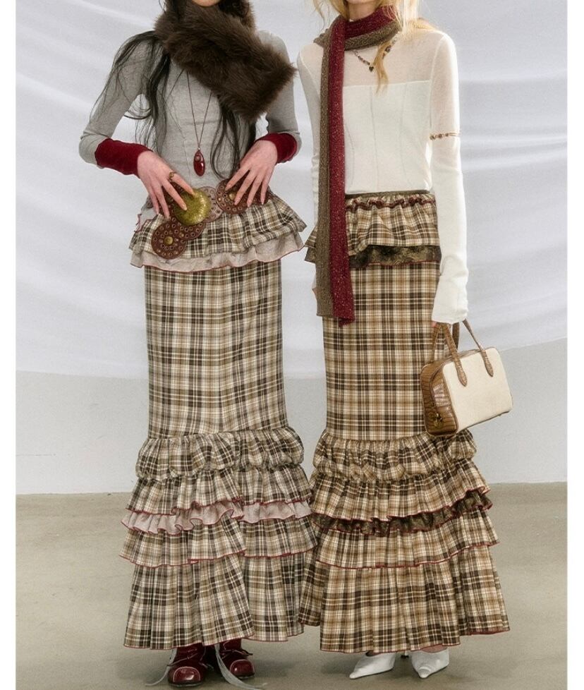マーメイド チェック ガーリー ボトムス スカート