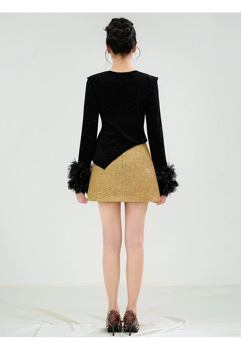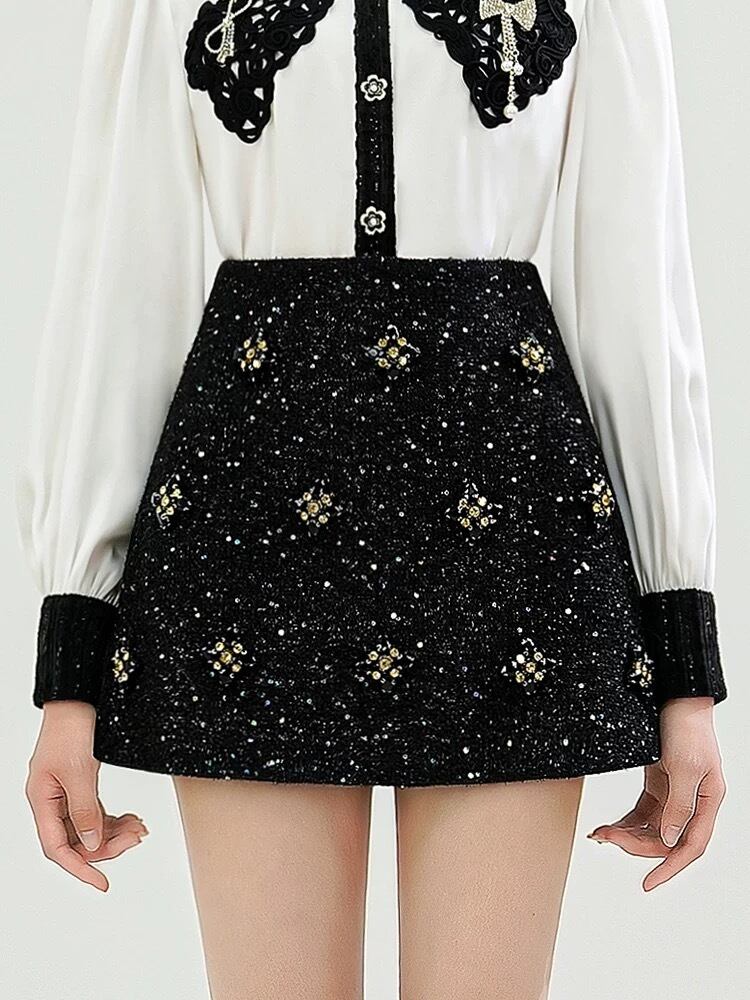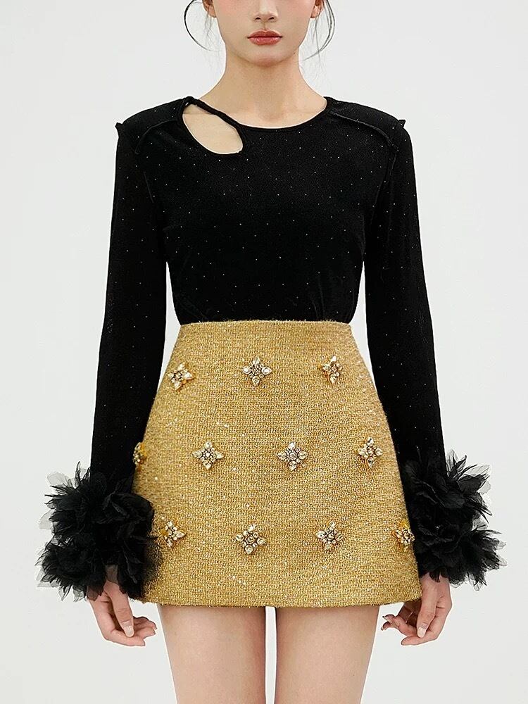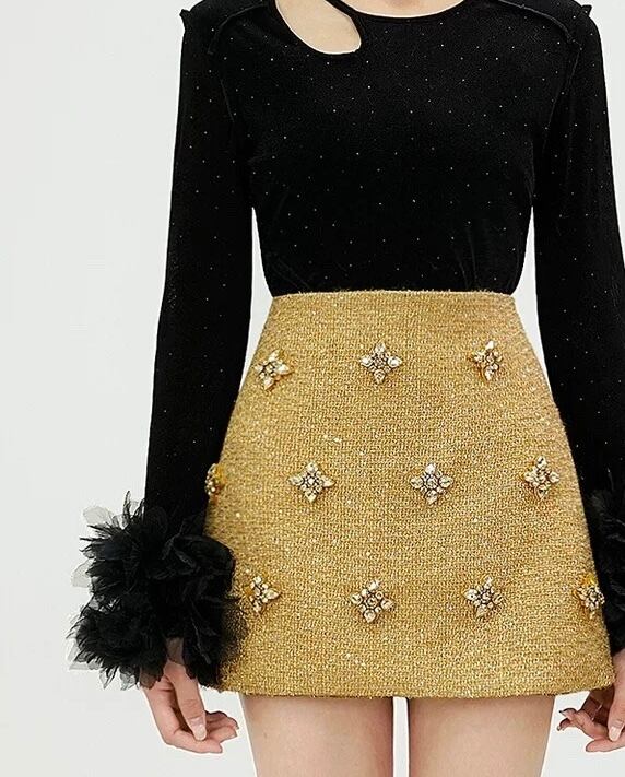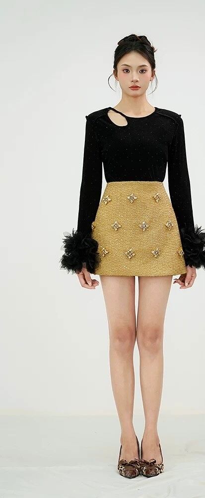 ボトムス ラインストーン ビジュー スカート 黒 金色