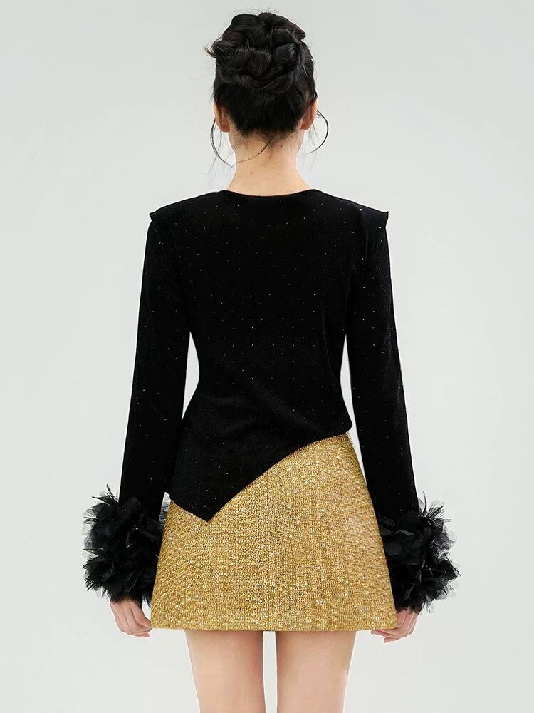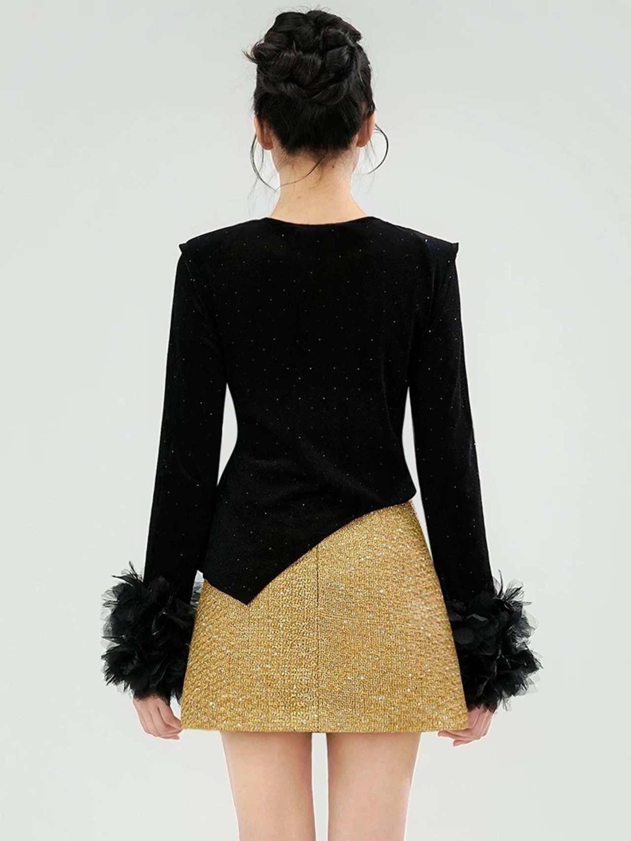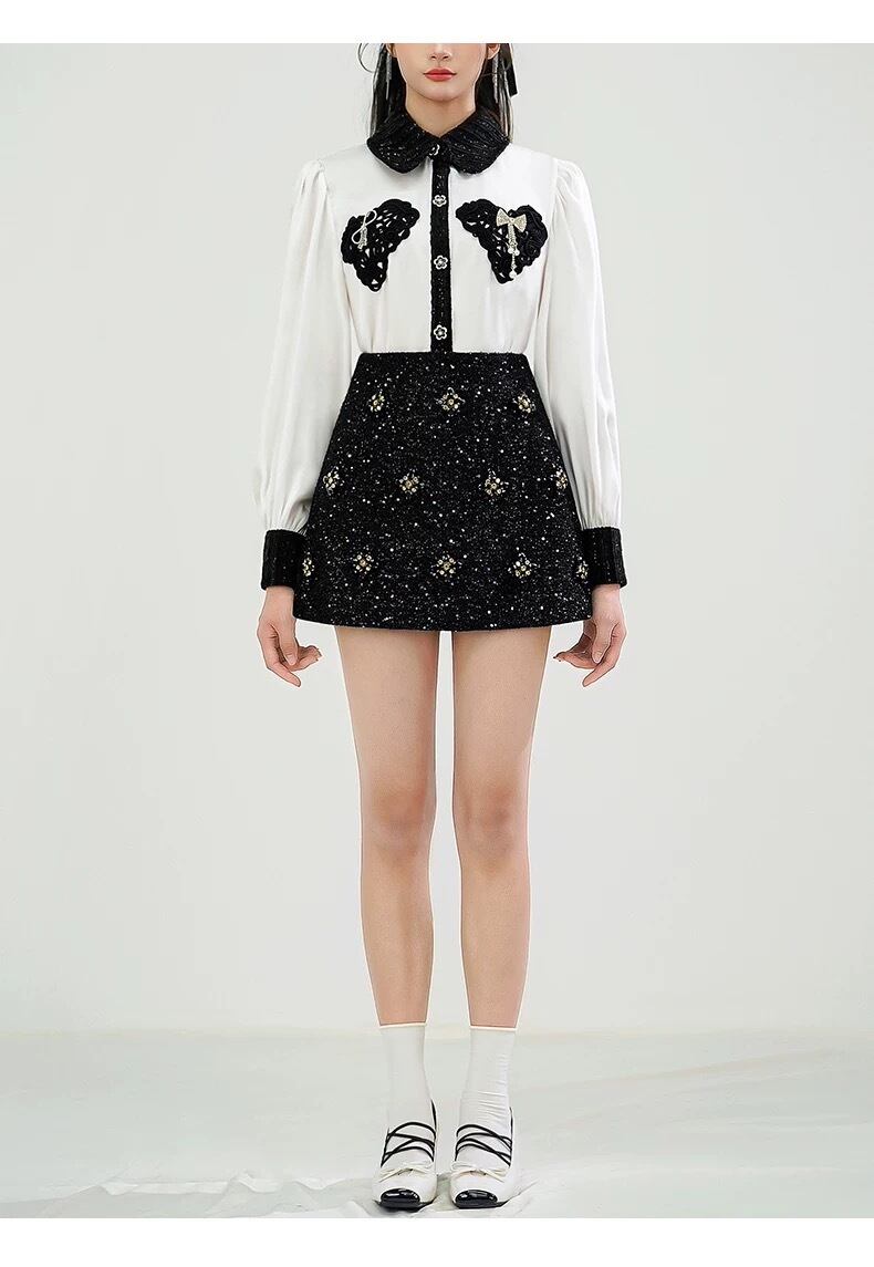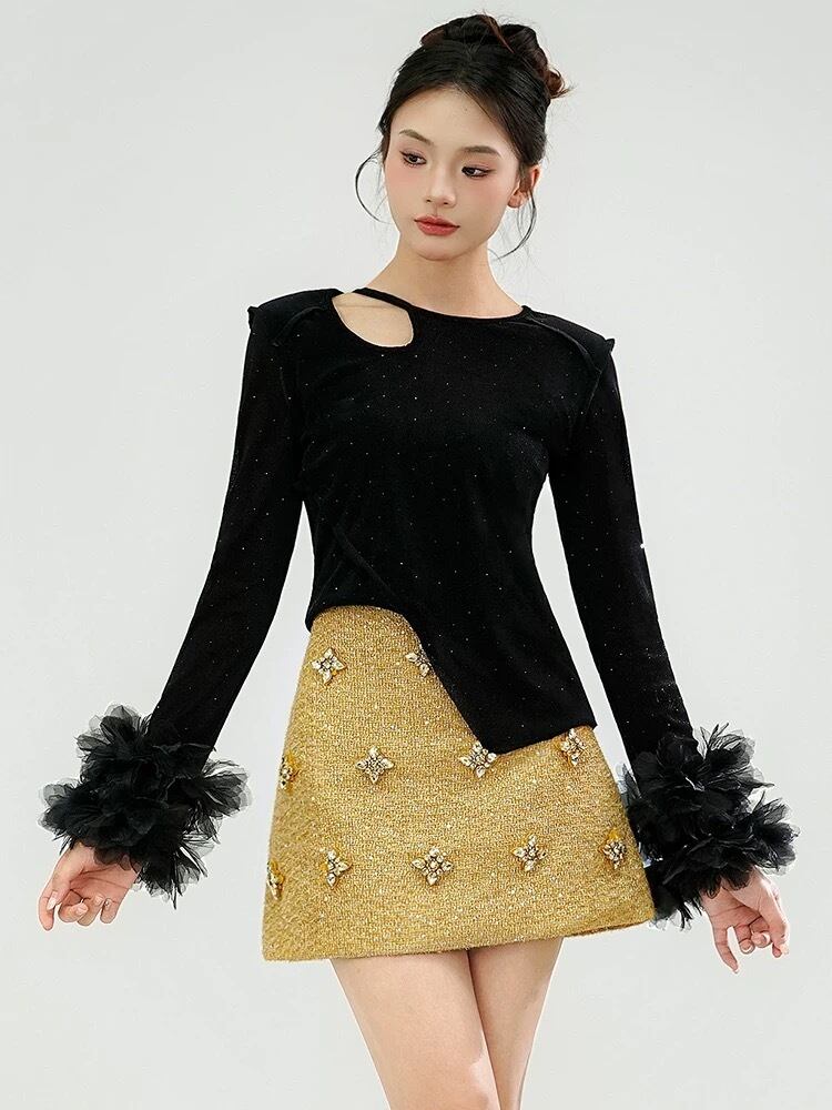 ボトムス ラインストーン ビジュー スカート 黒 金色