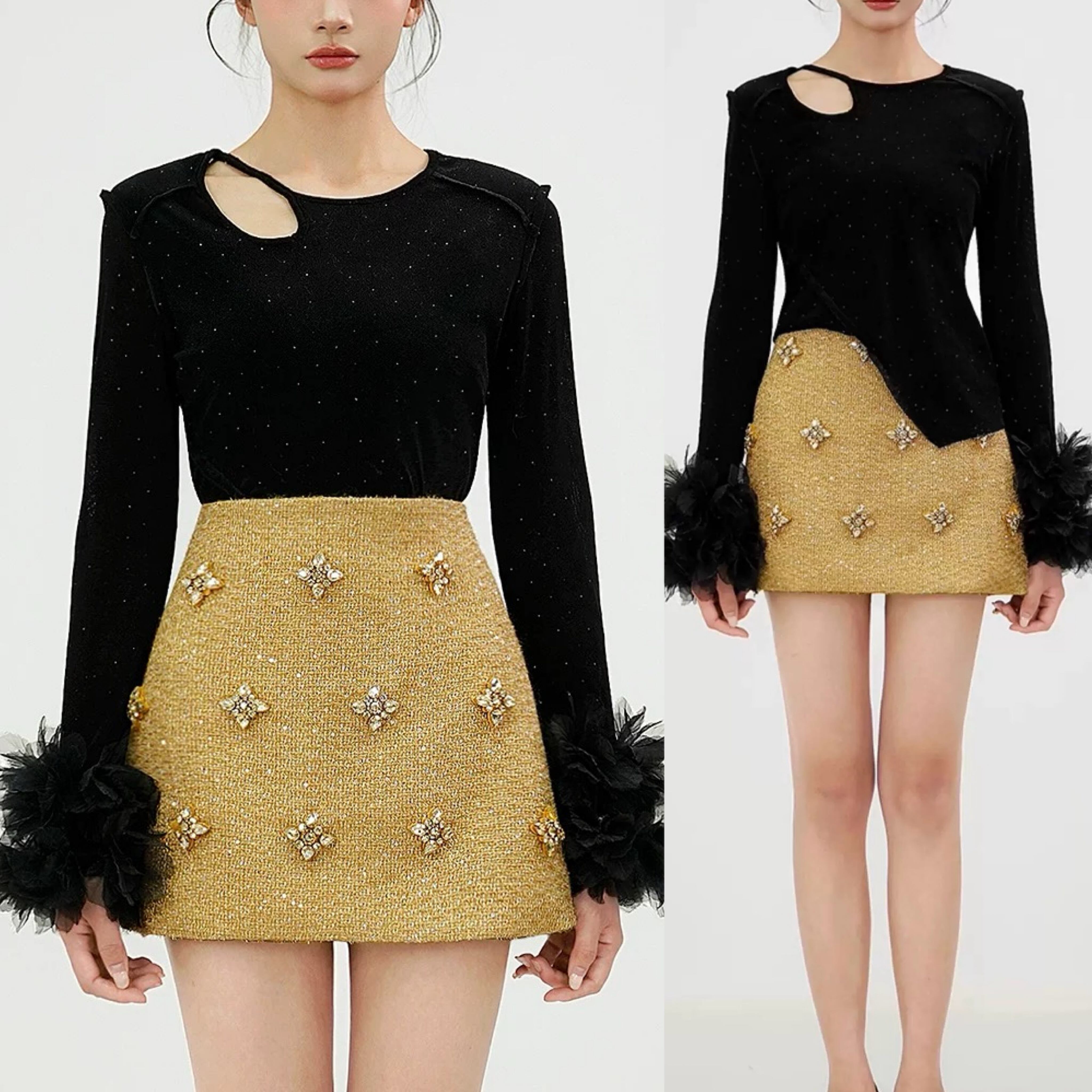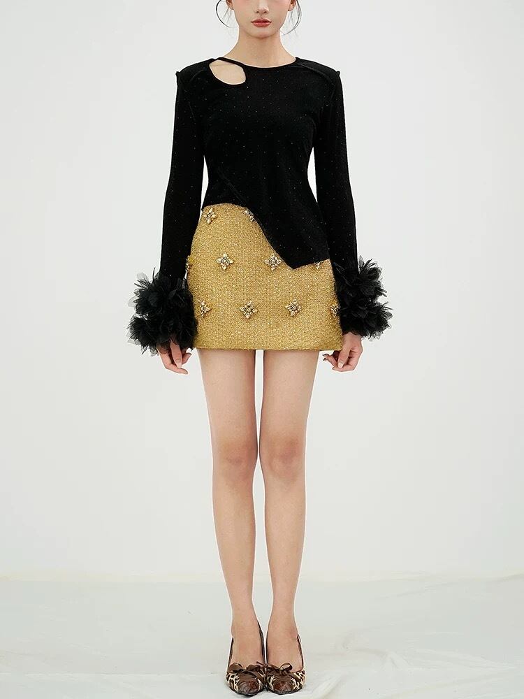 黒 フラワー 袖 ブラウス トップス シンプル えれが