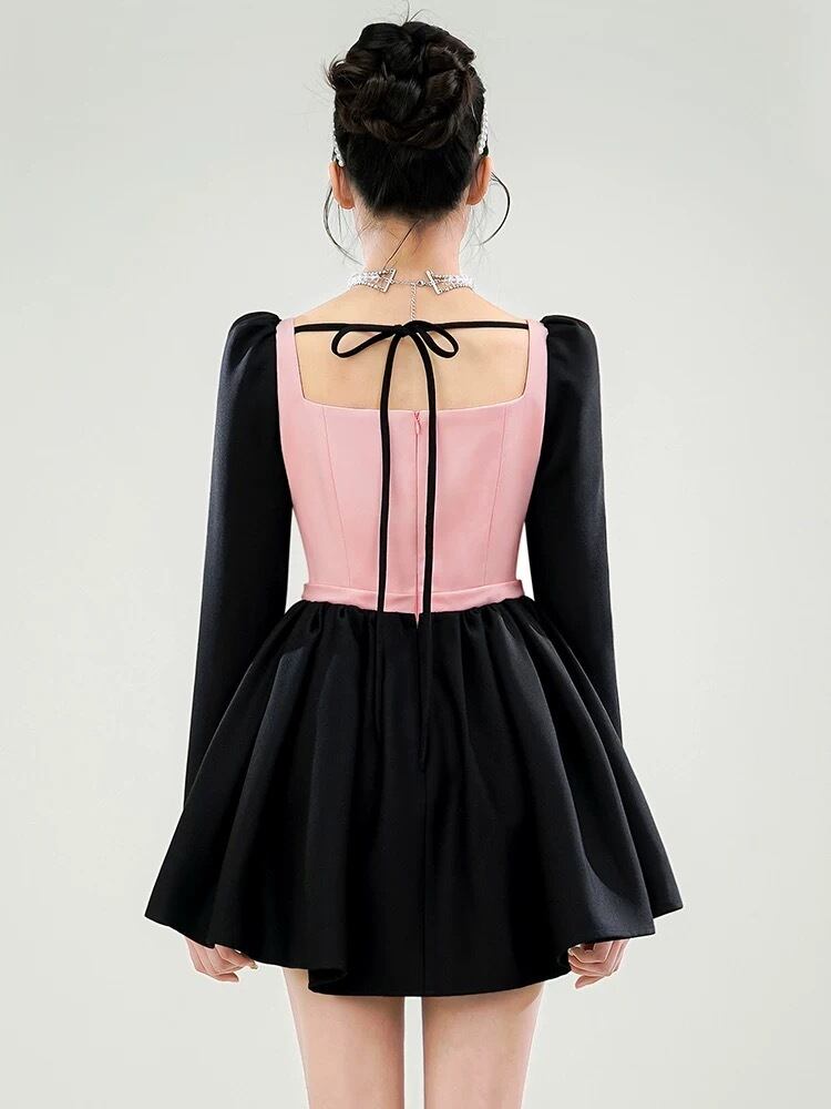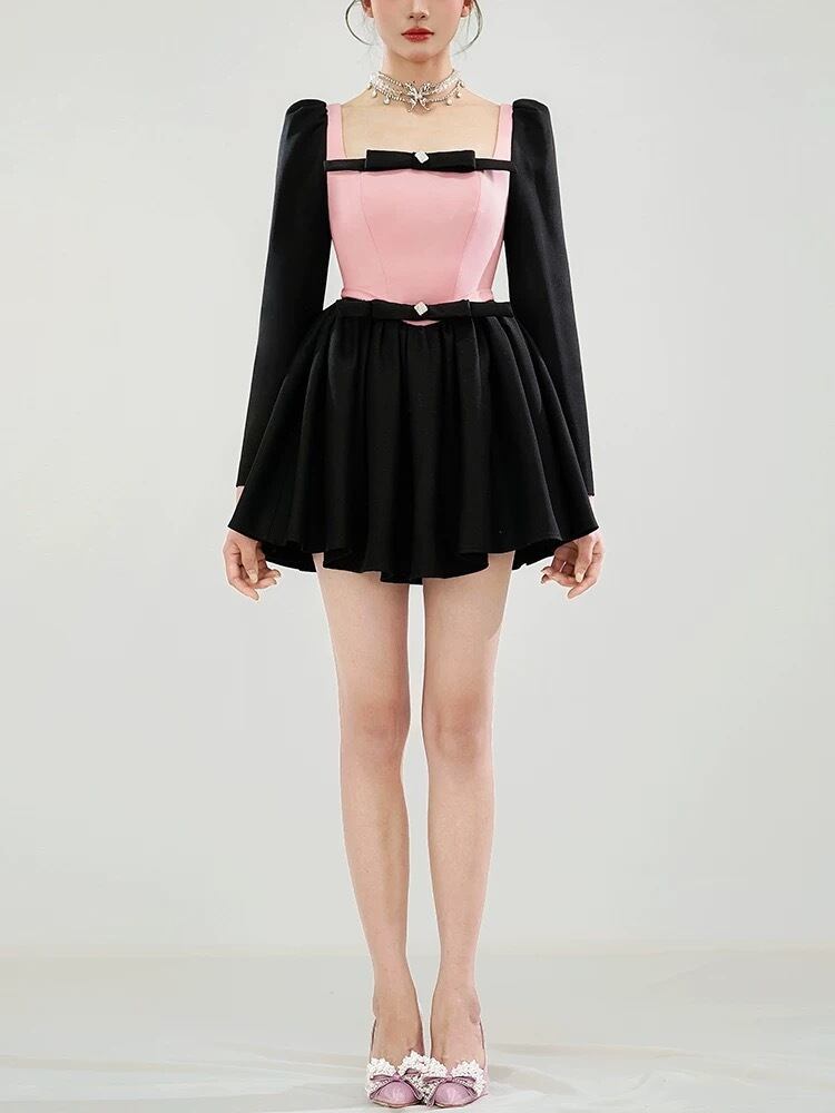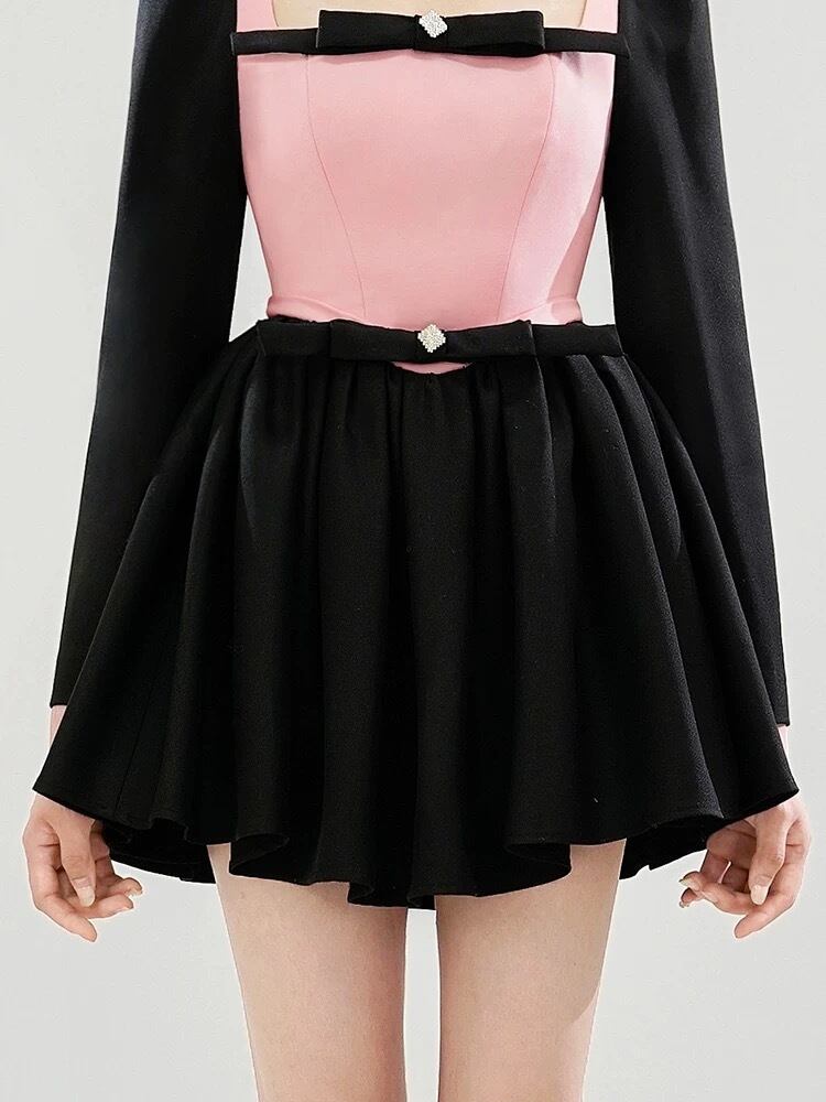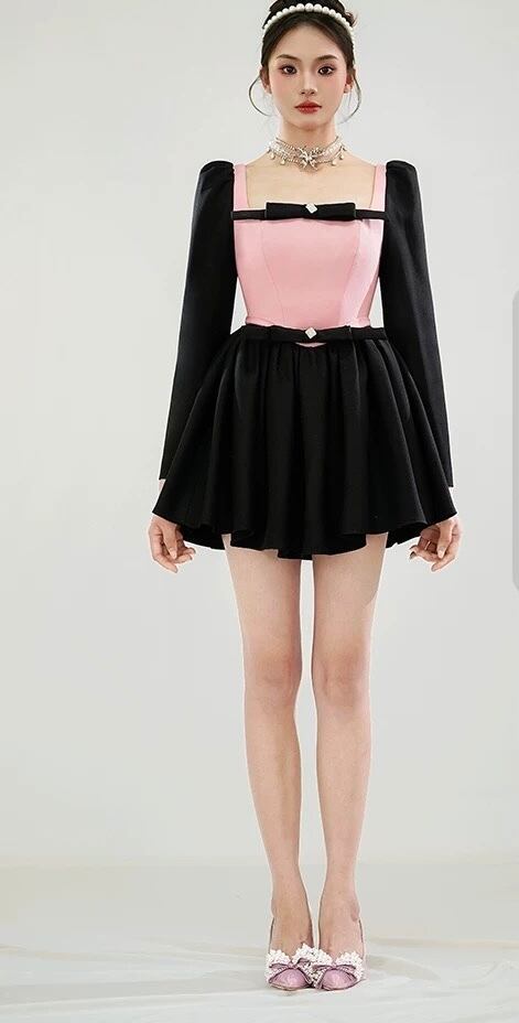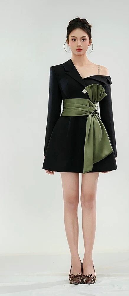 ピンク 緑 リボン ワンピース ドレス オフショルダー 和風