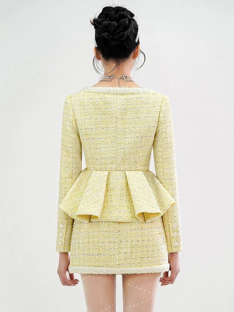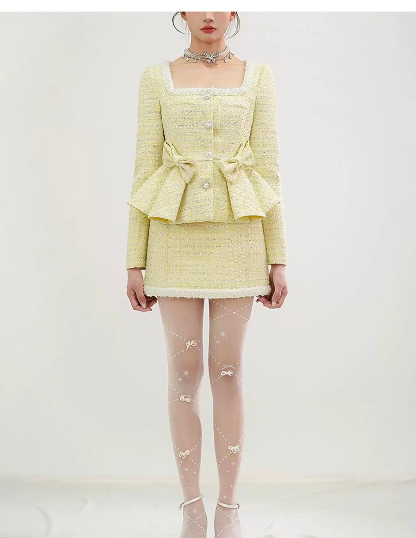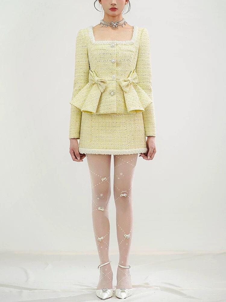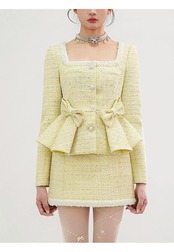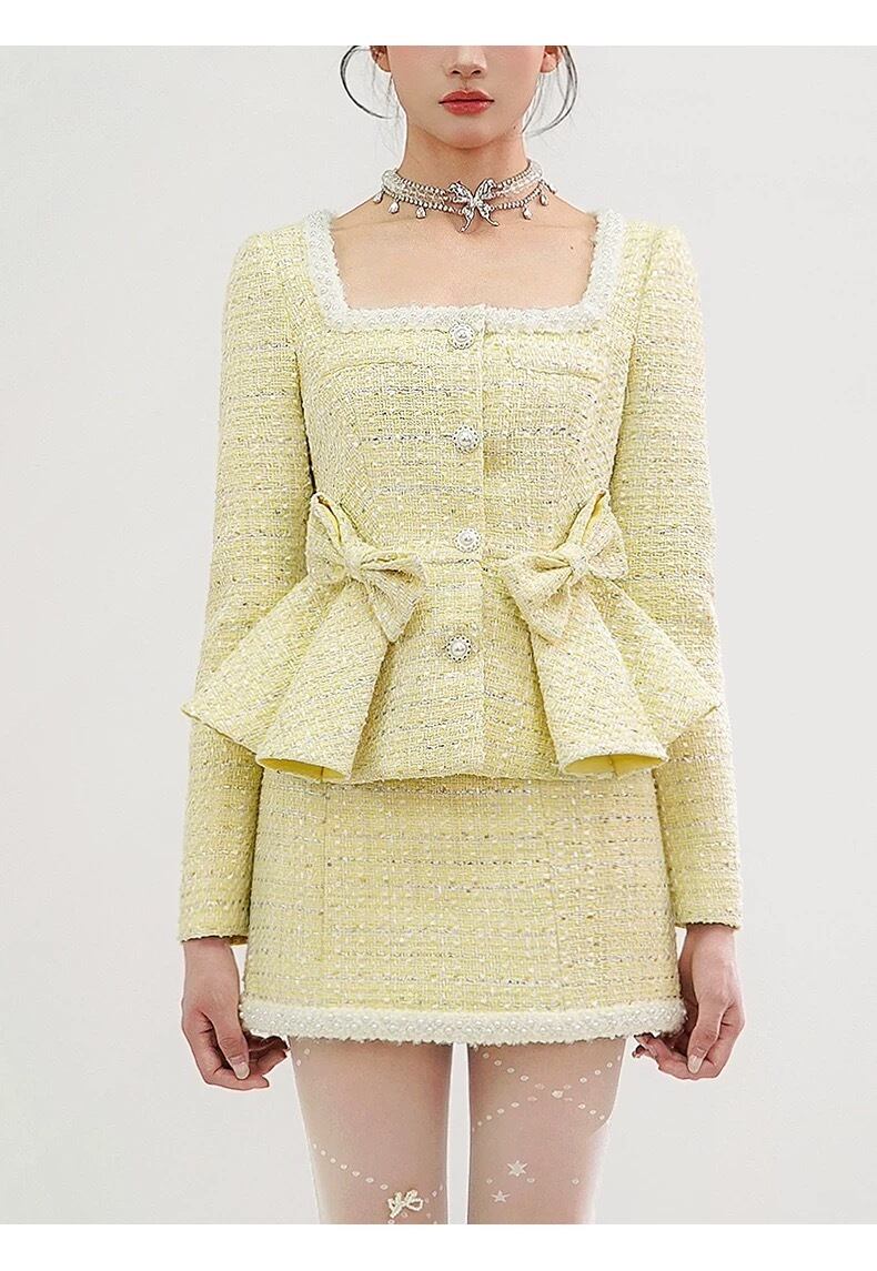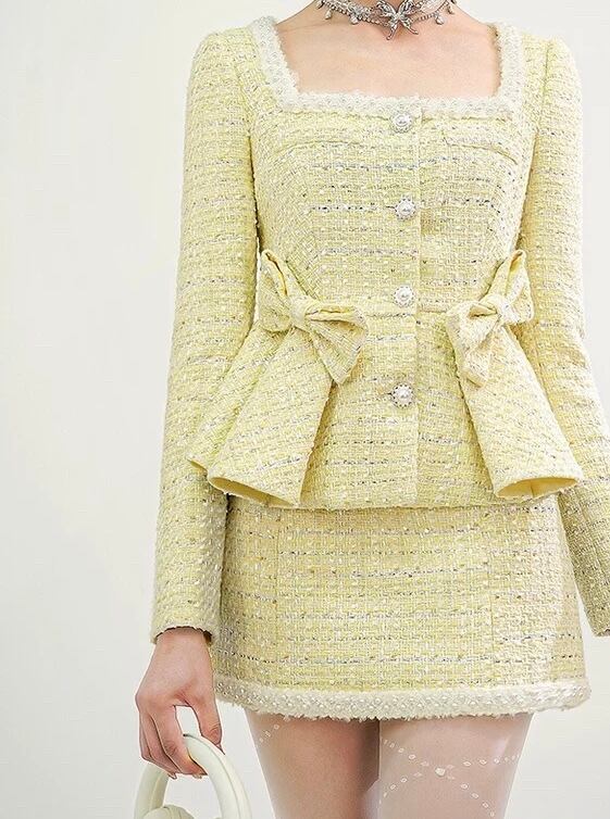 【セットアップ】紫 黄色 チェック リボン ラインストーン スーツ