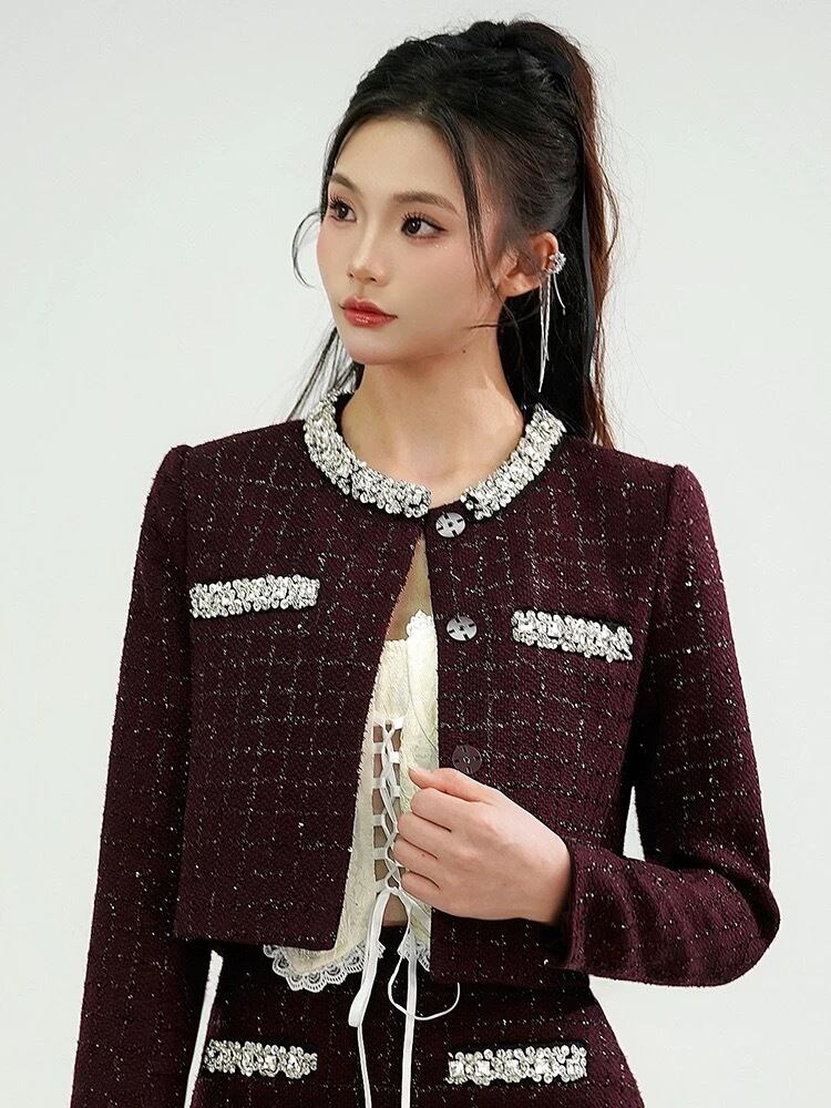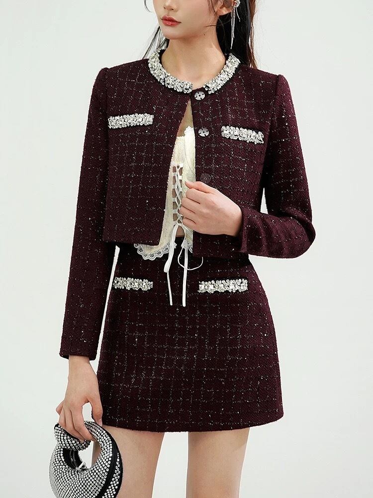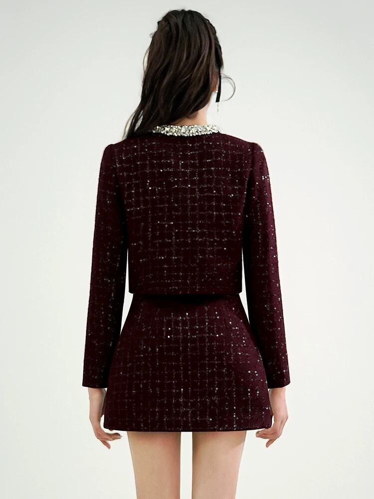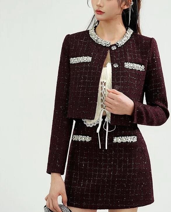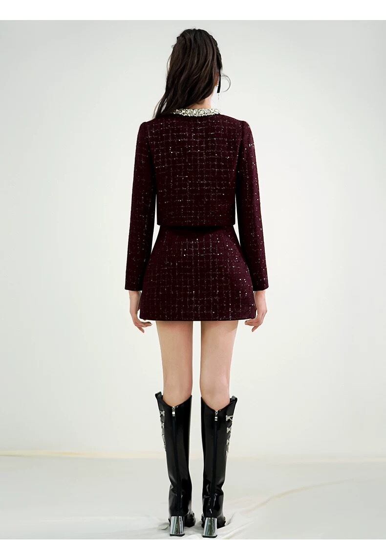 【セットアップ】紫 黄色 チェック リボン ラインストーン スーツ