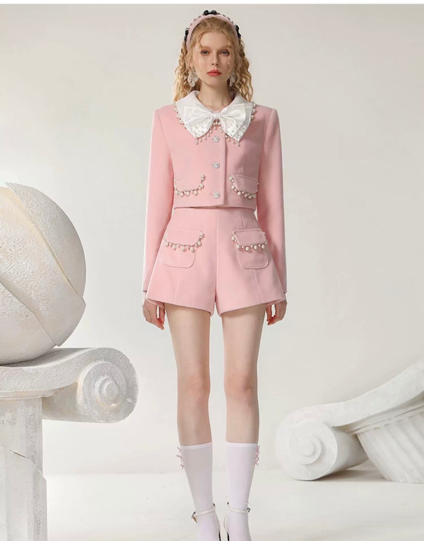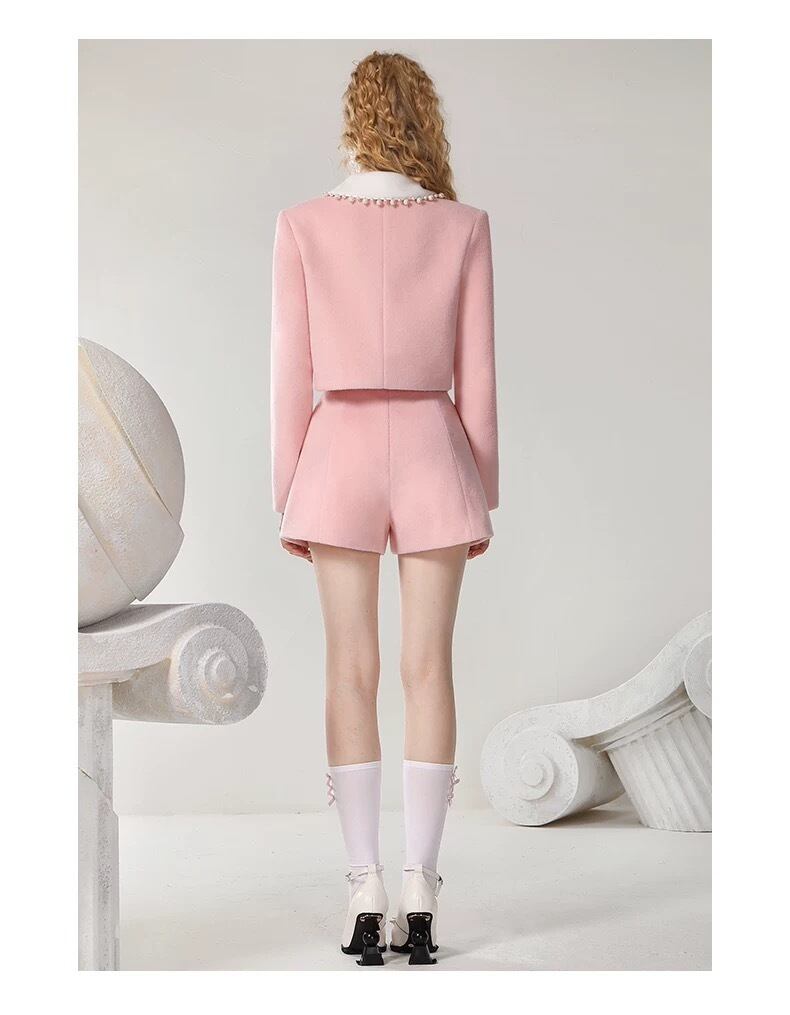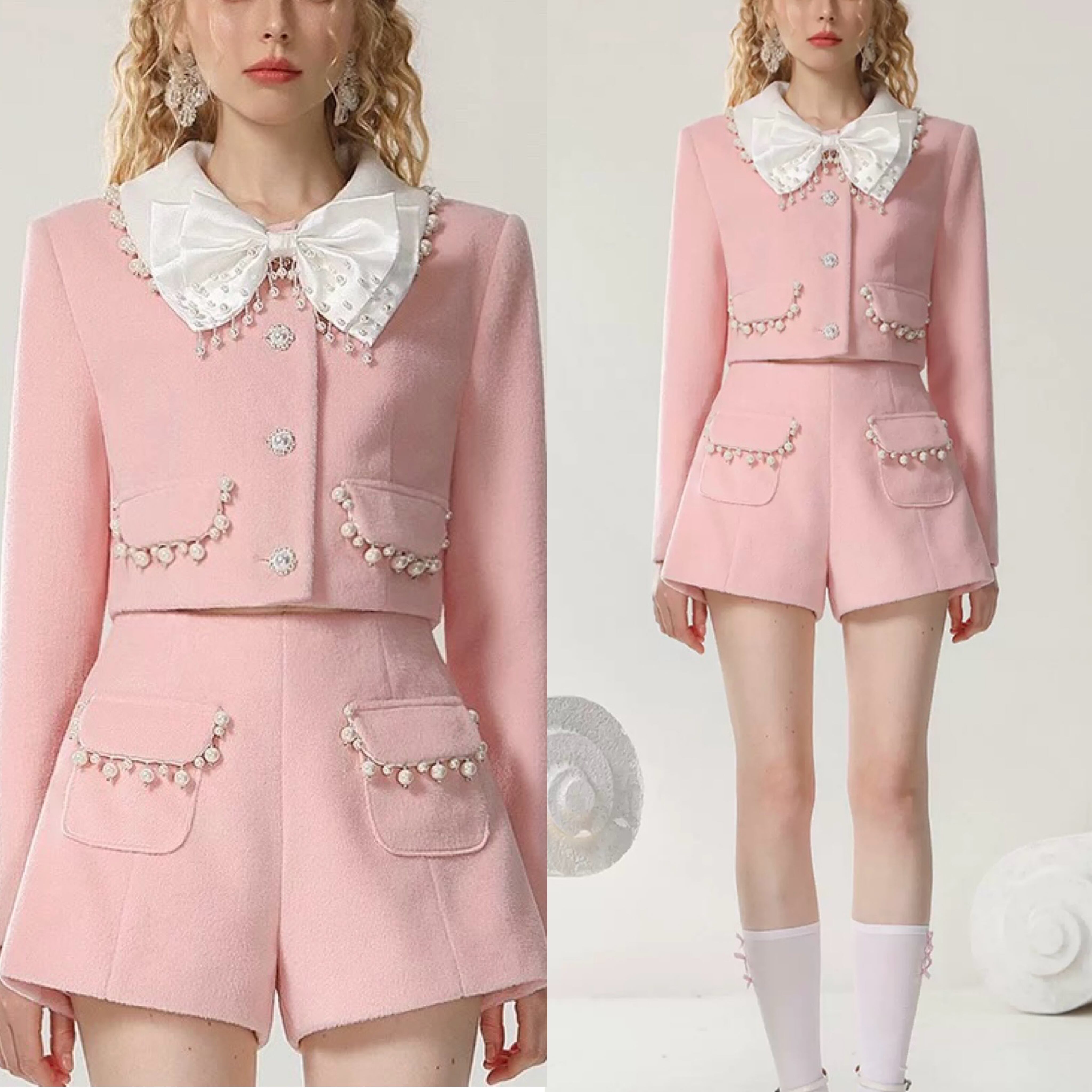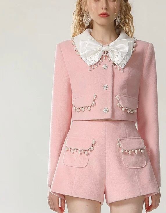 【セットアップ】ピンク スーツ リボン ジャケット パール ショートパンツ