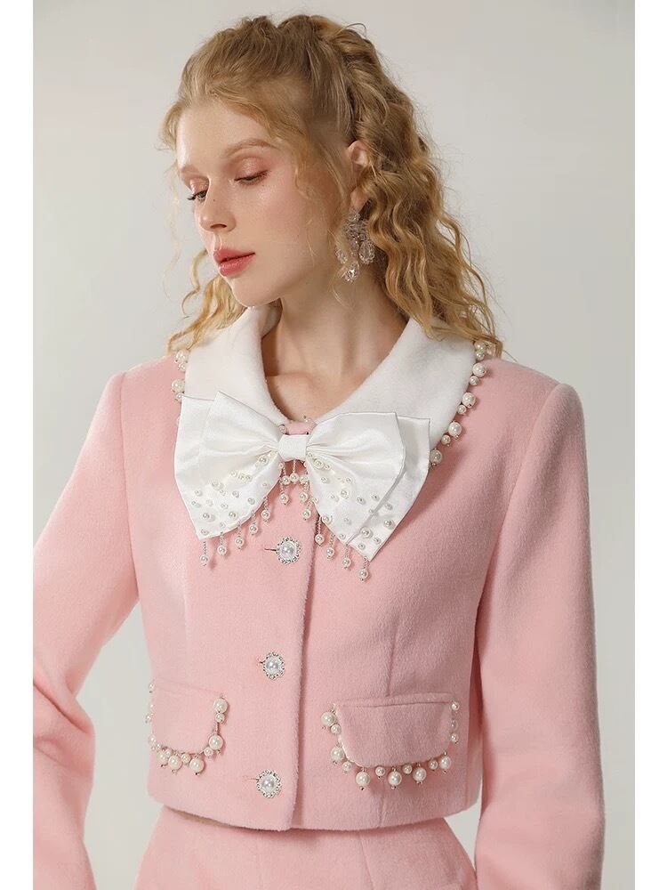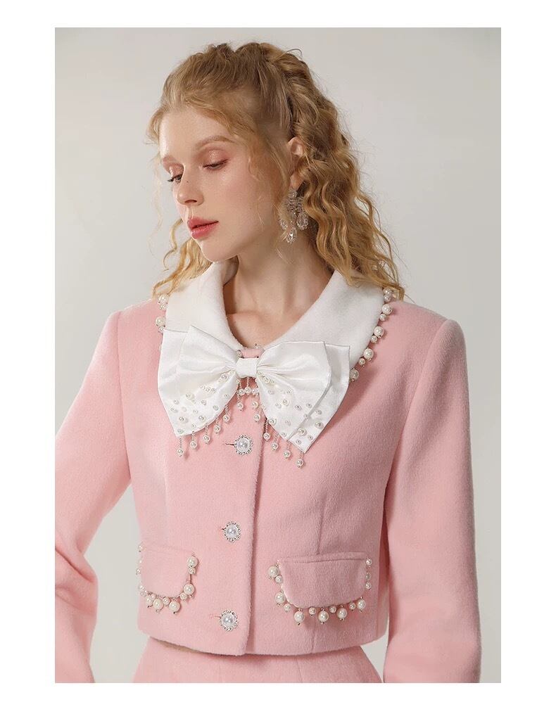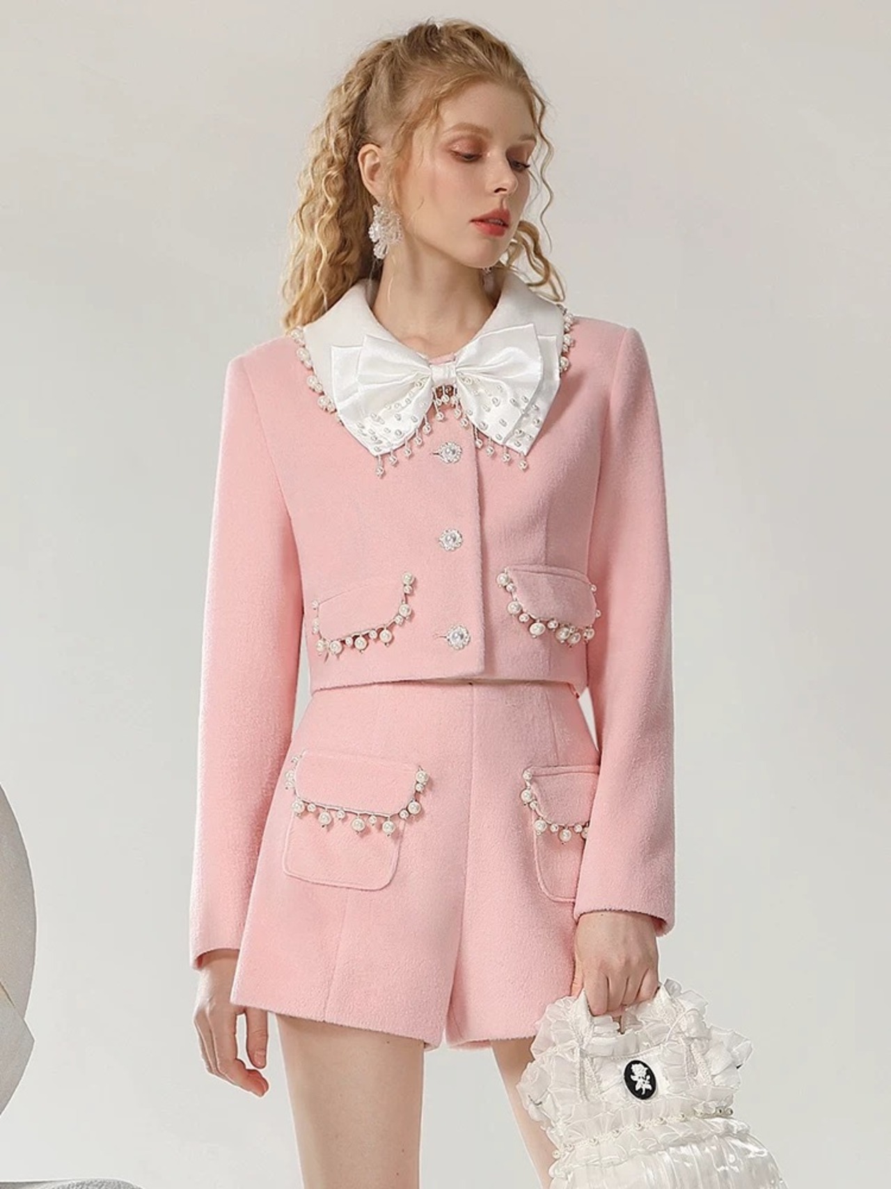 【セットアップ】ピンク スーツ リボン ジャケット パール ショートパンツ