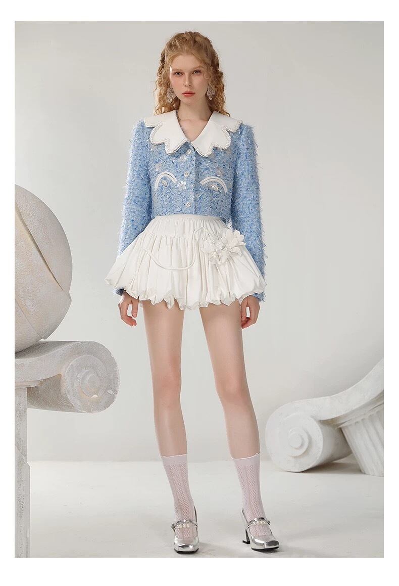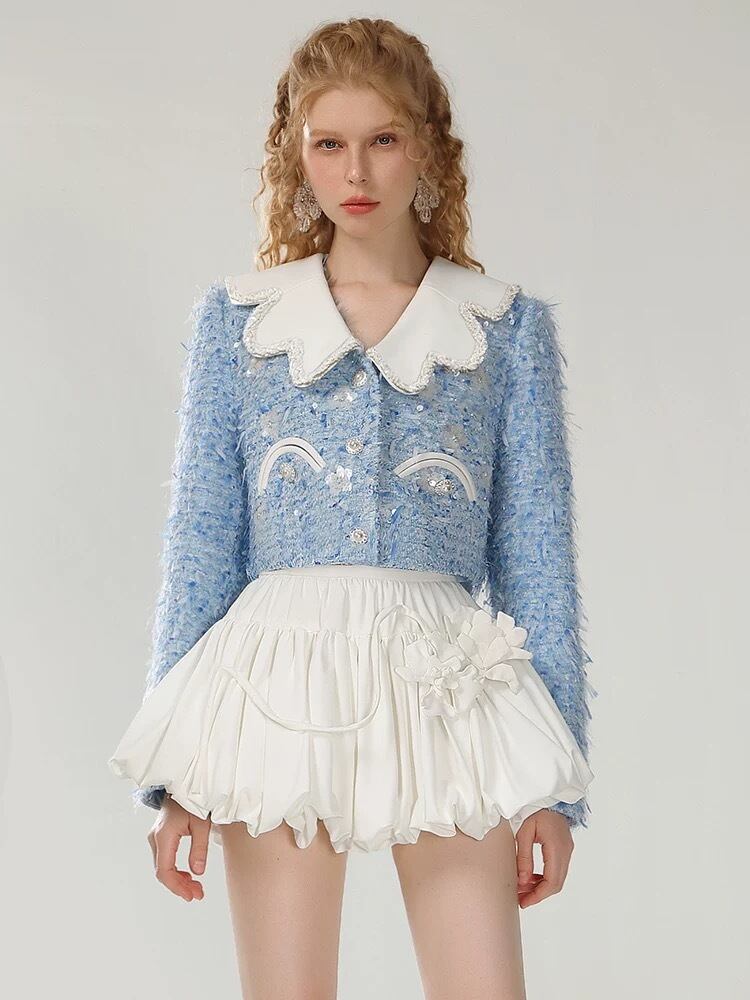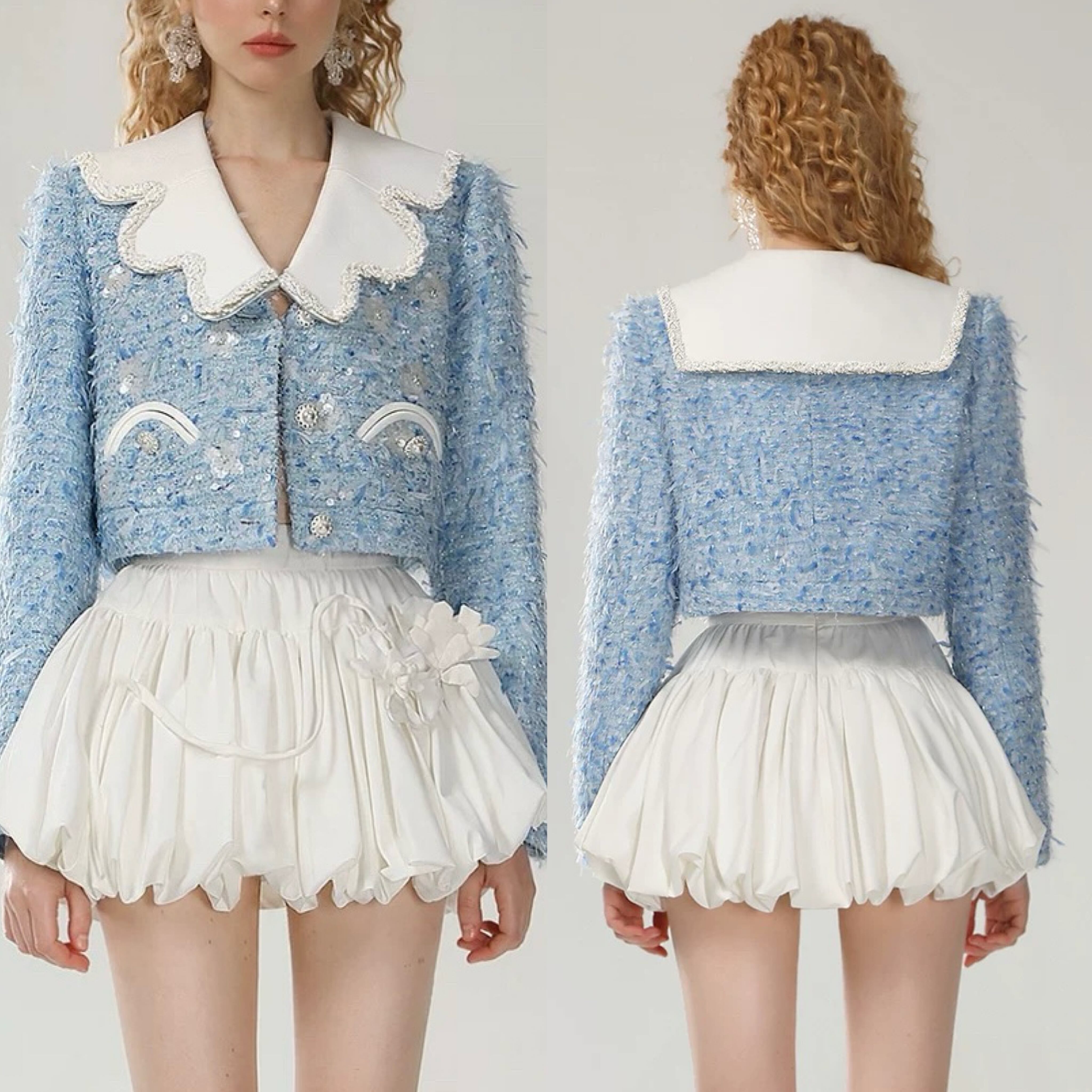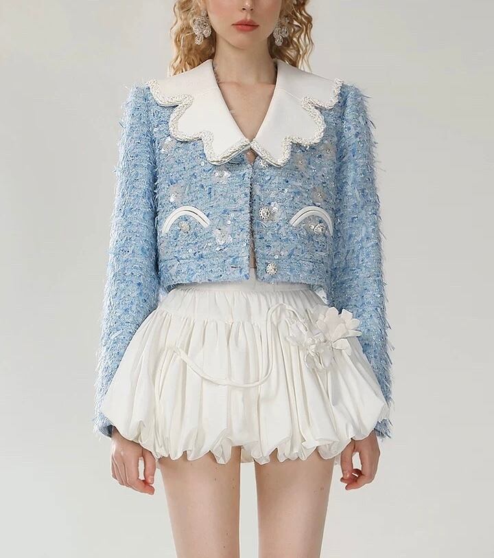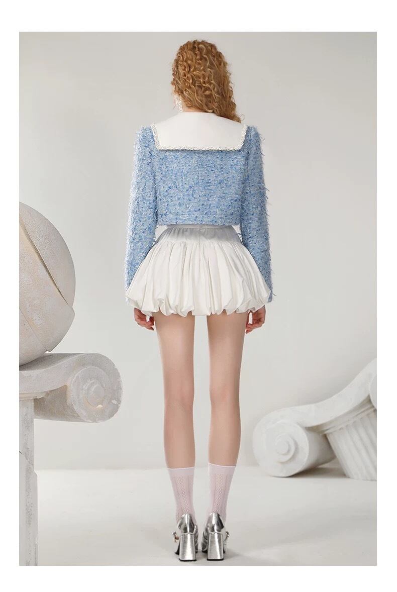 水色 ツイード セーラー ジャケット アウター