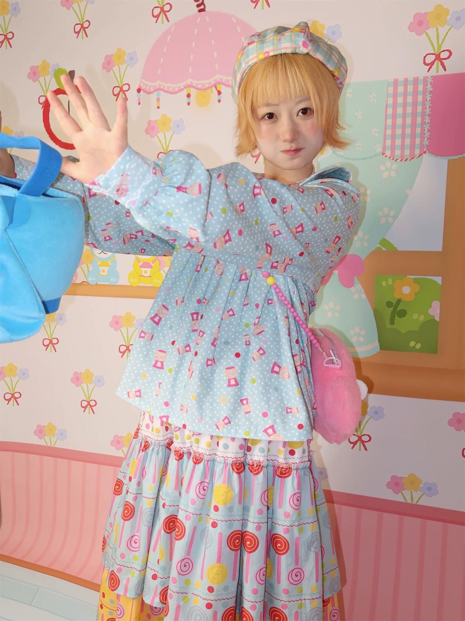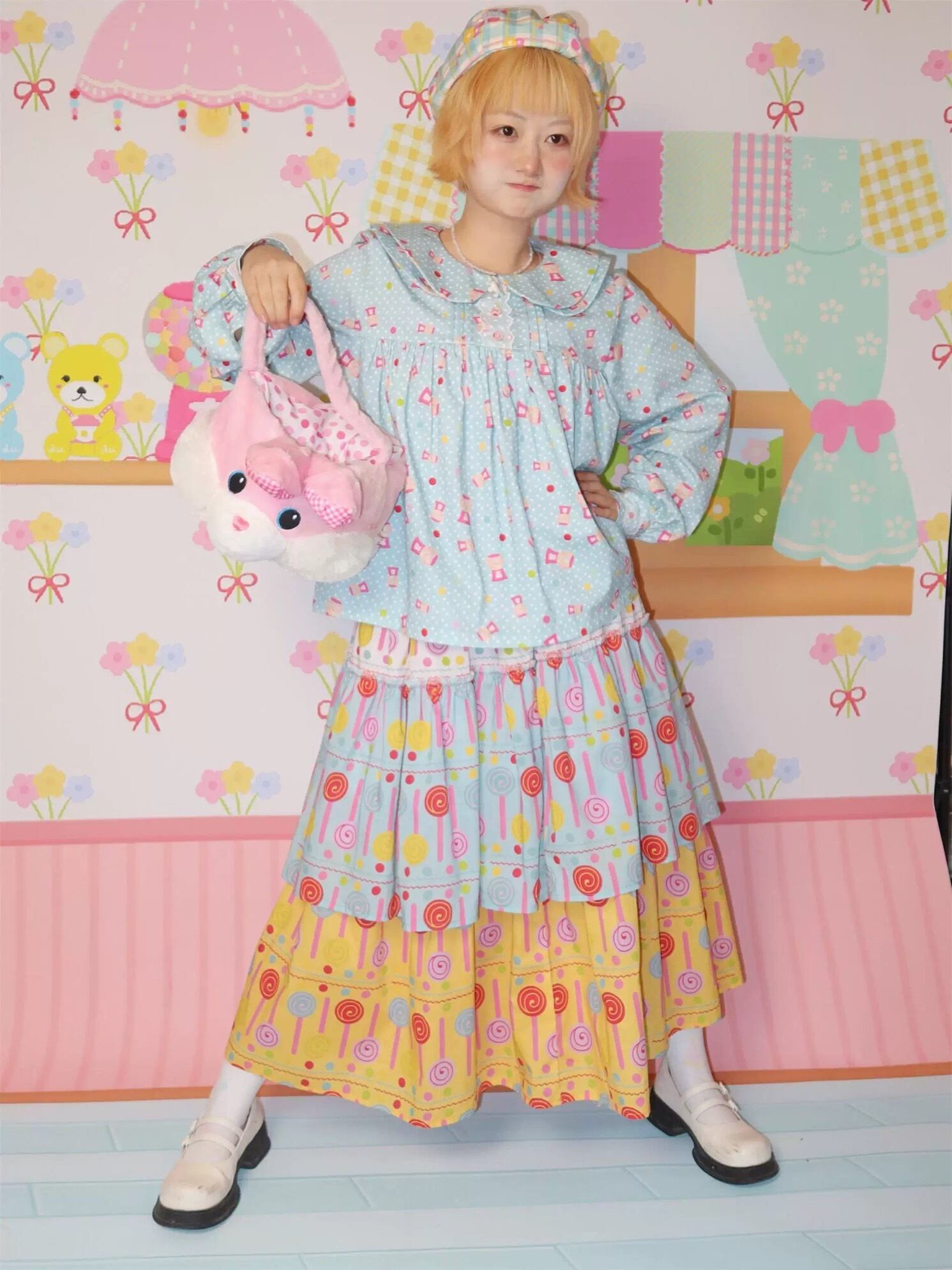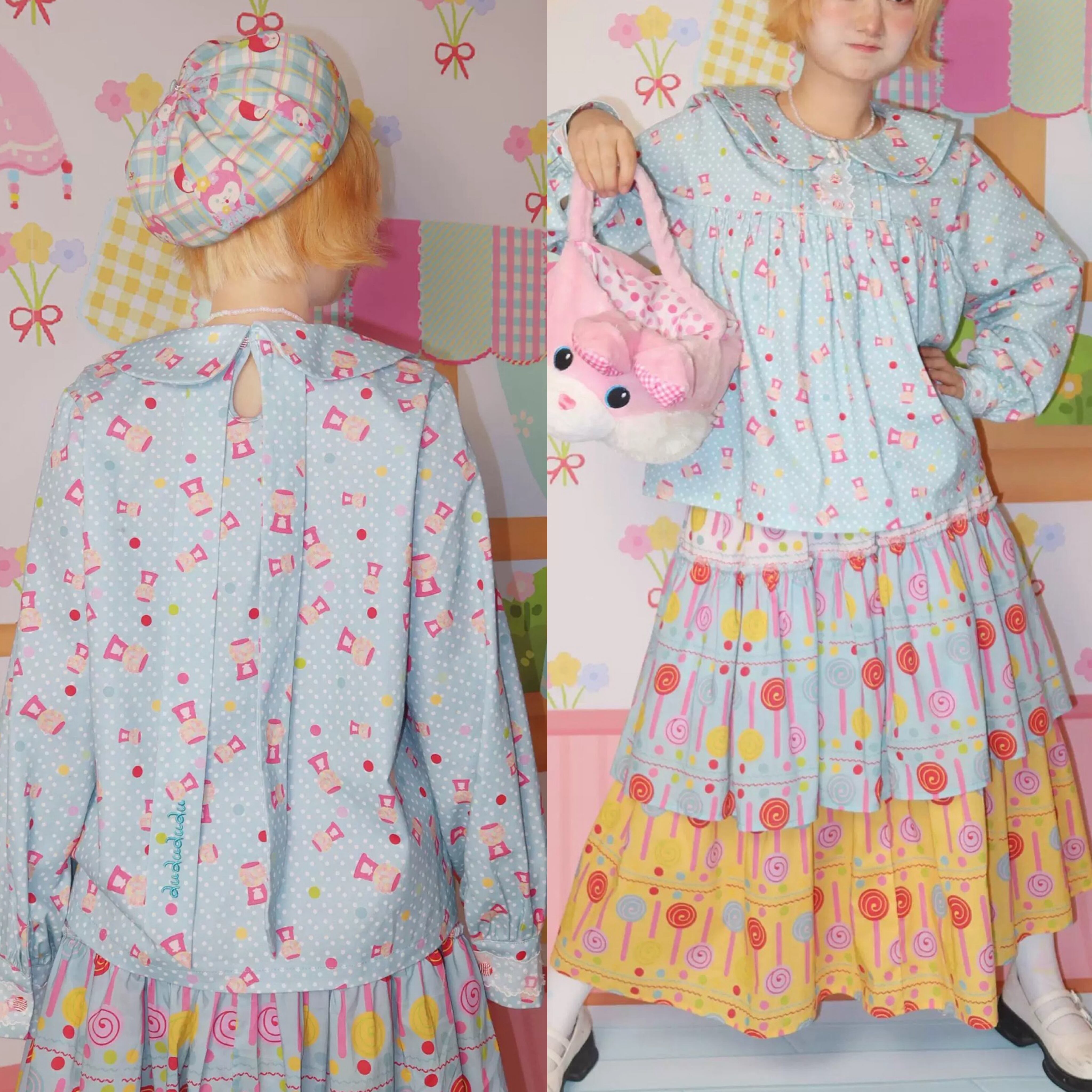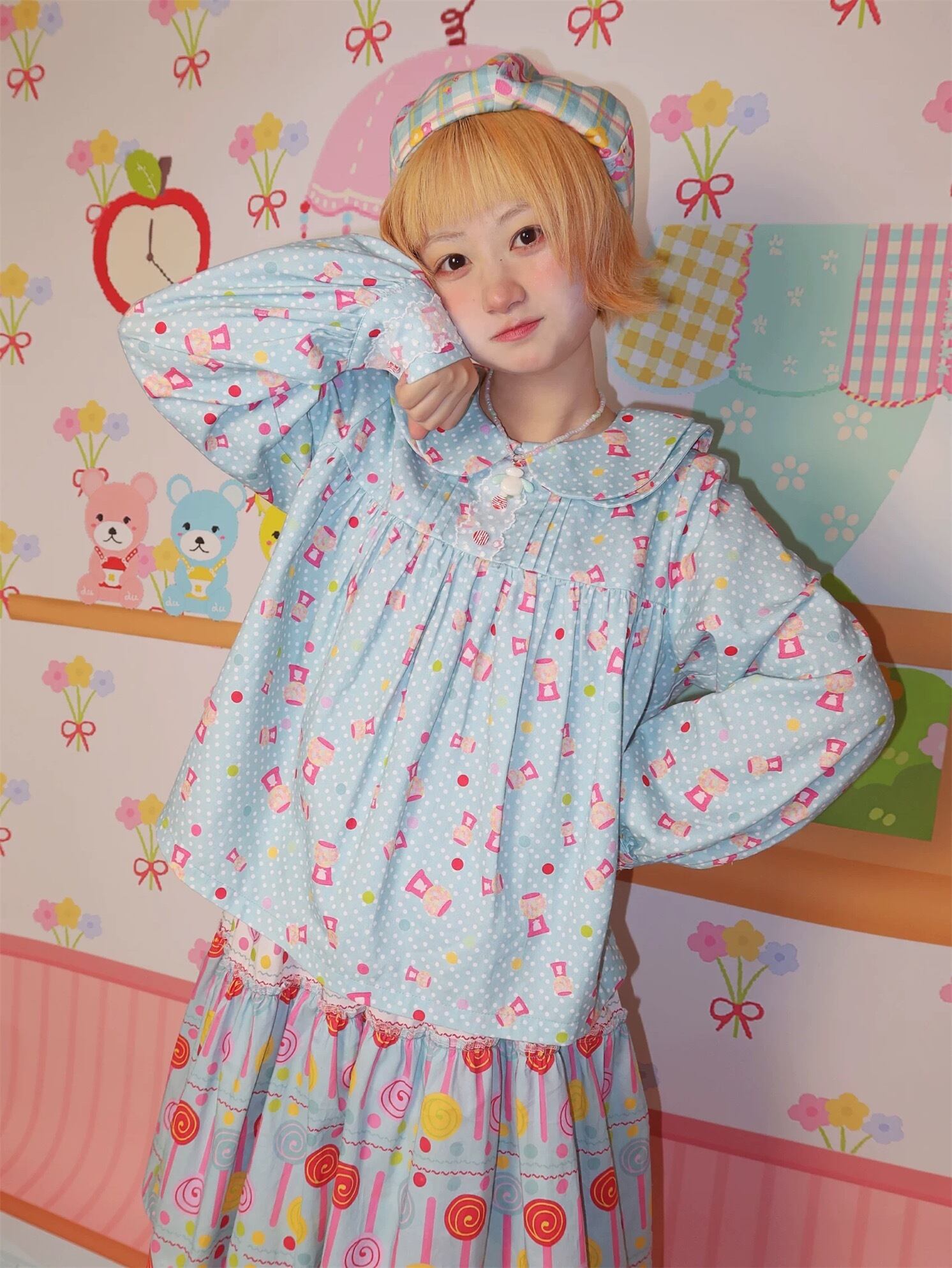 ブラウス 水色 ガーリー シャツ 丸襟