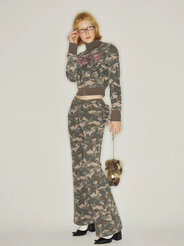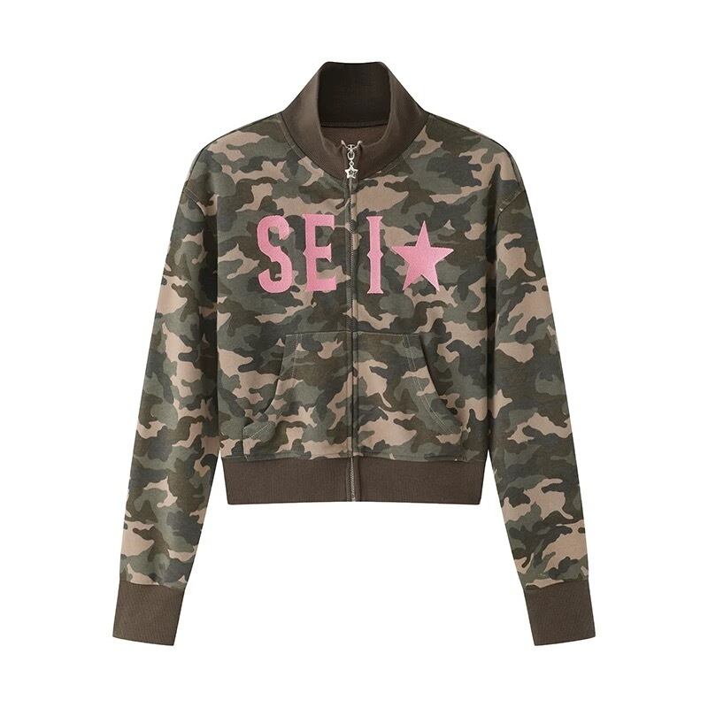 カモフラージュ 迷彩 緑 ピンク トレーナー アウター