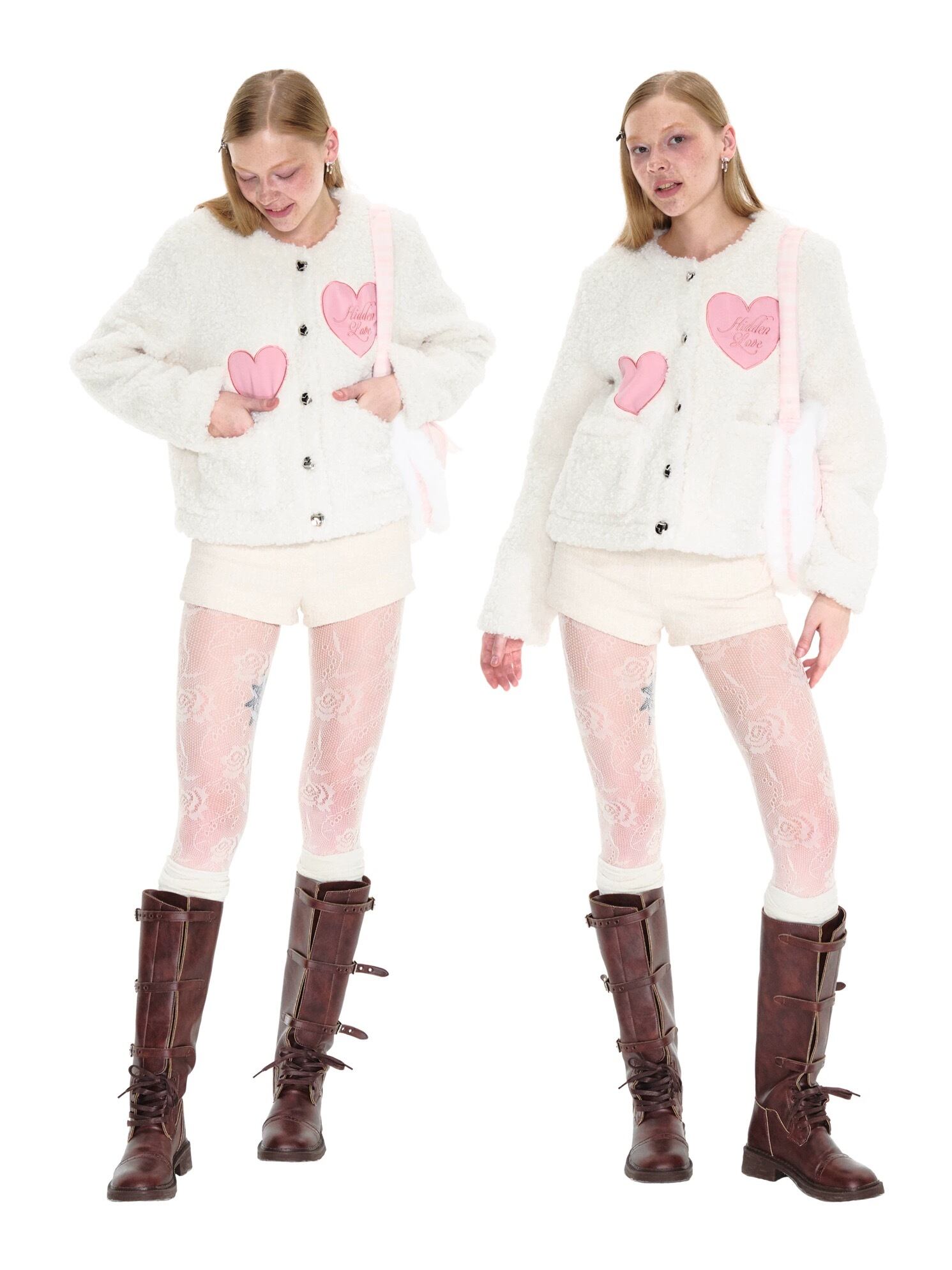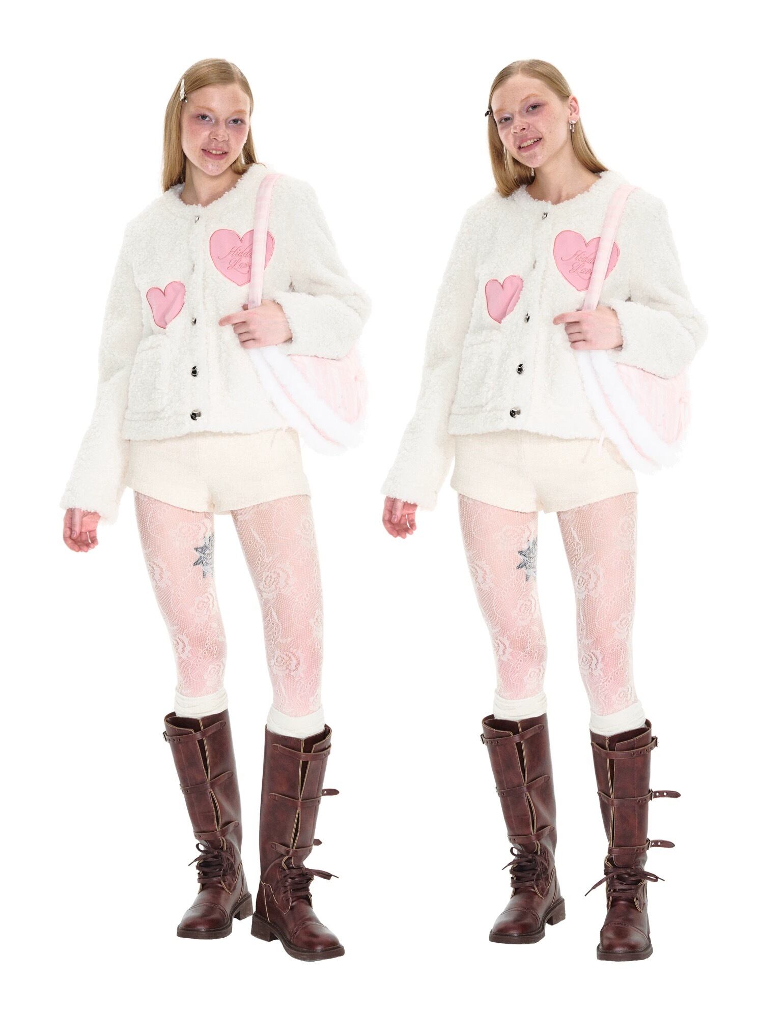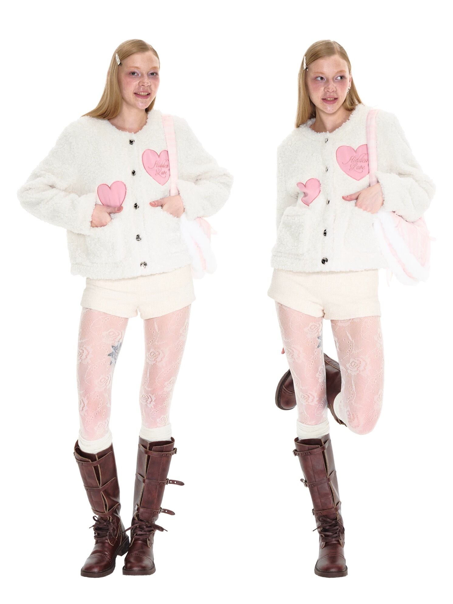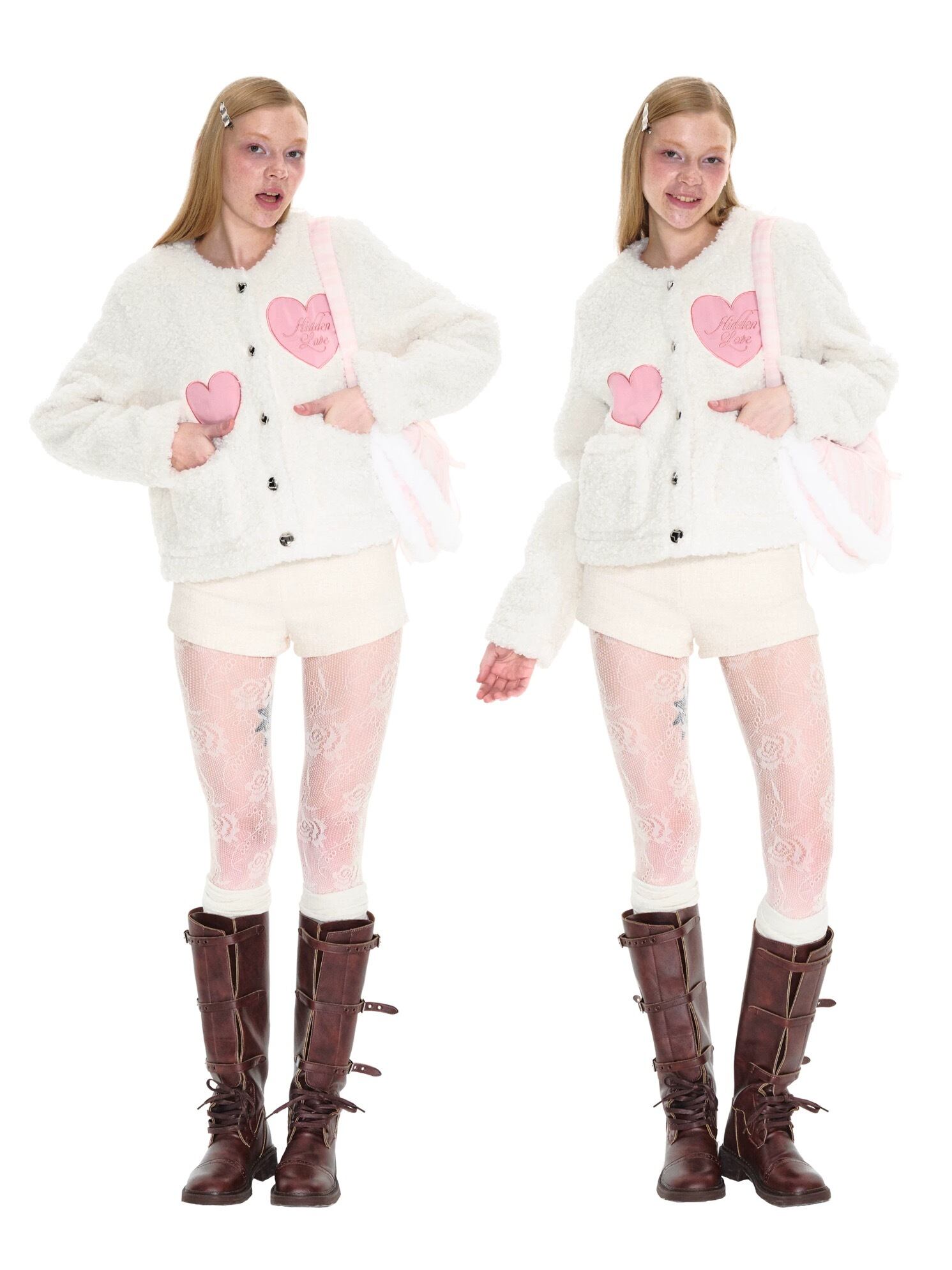 ハート 白 ピンク 白 カーディガン セーター アウター