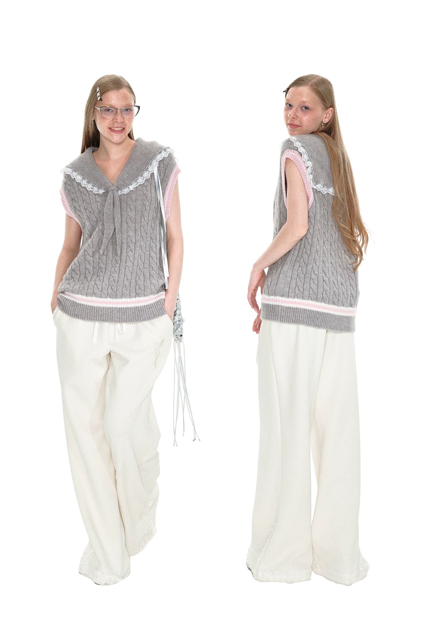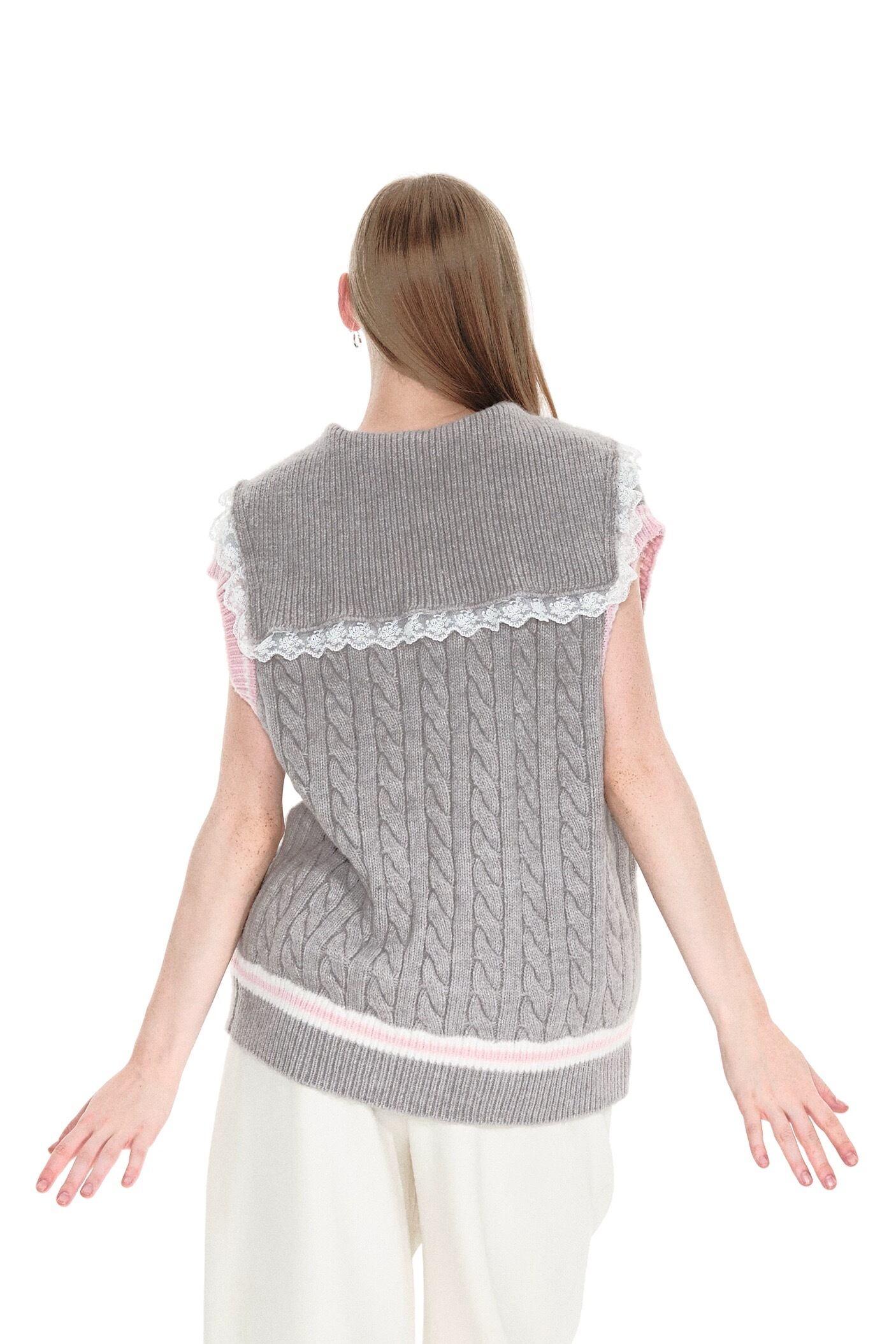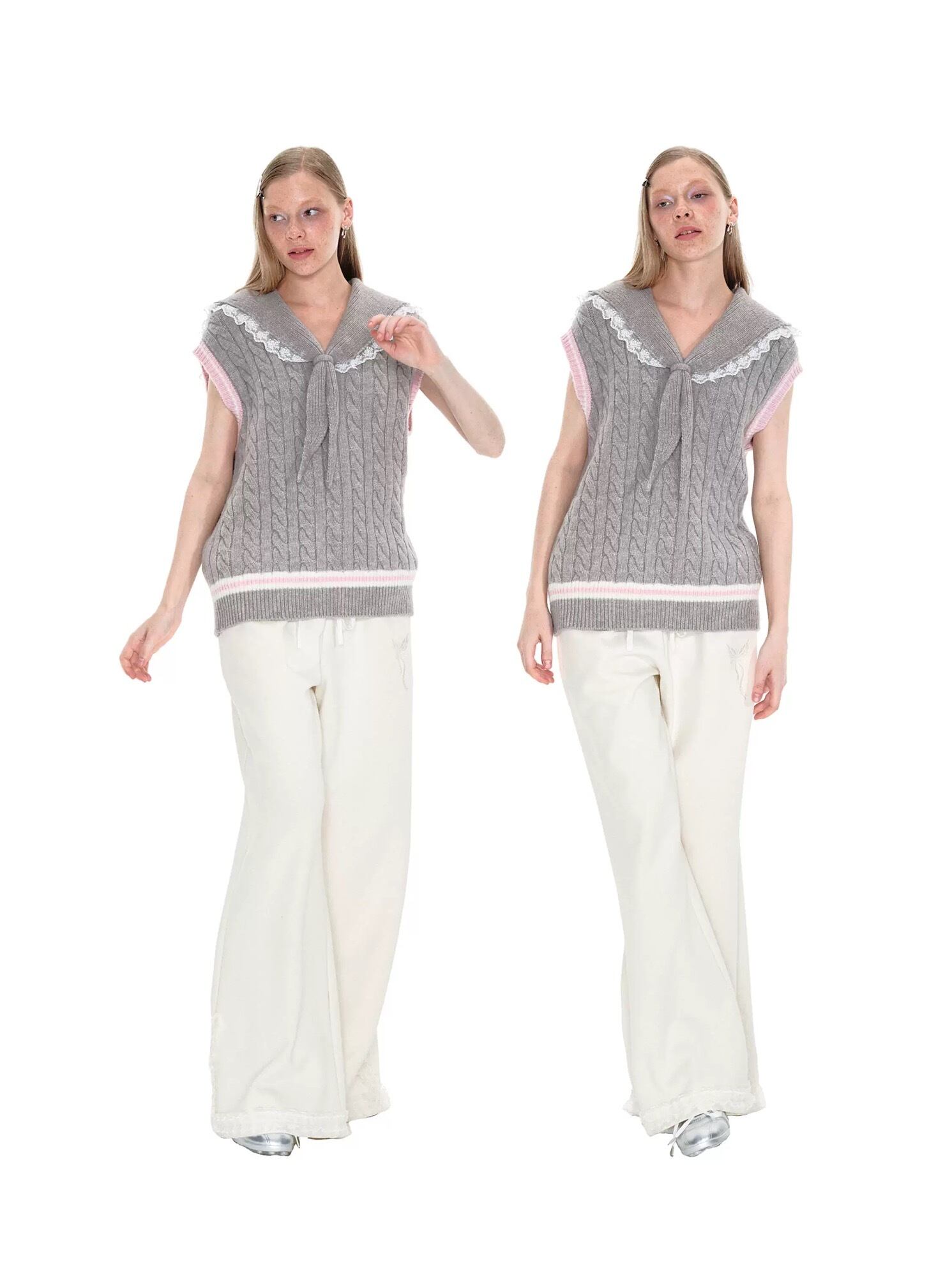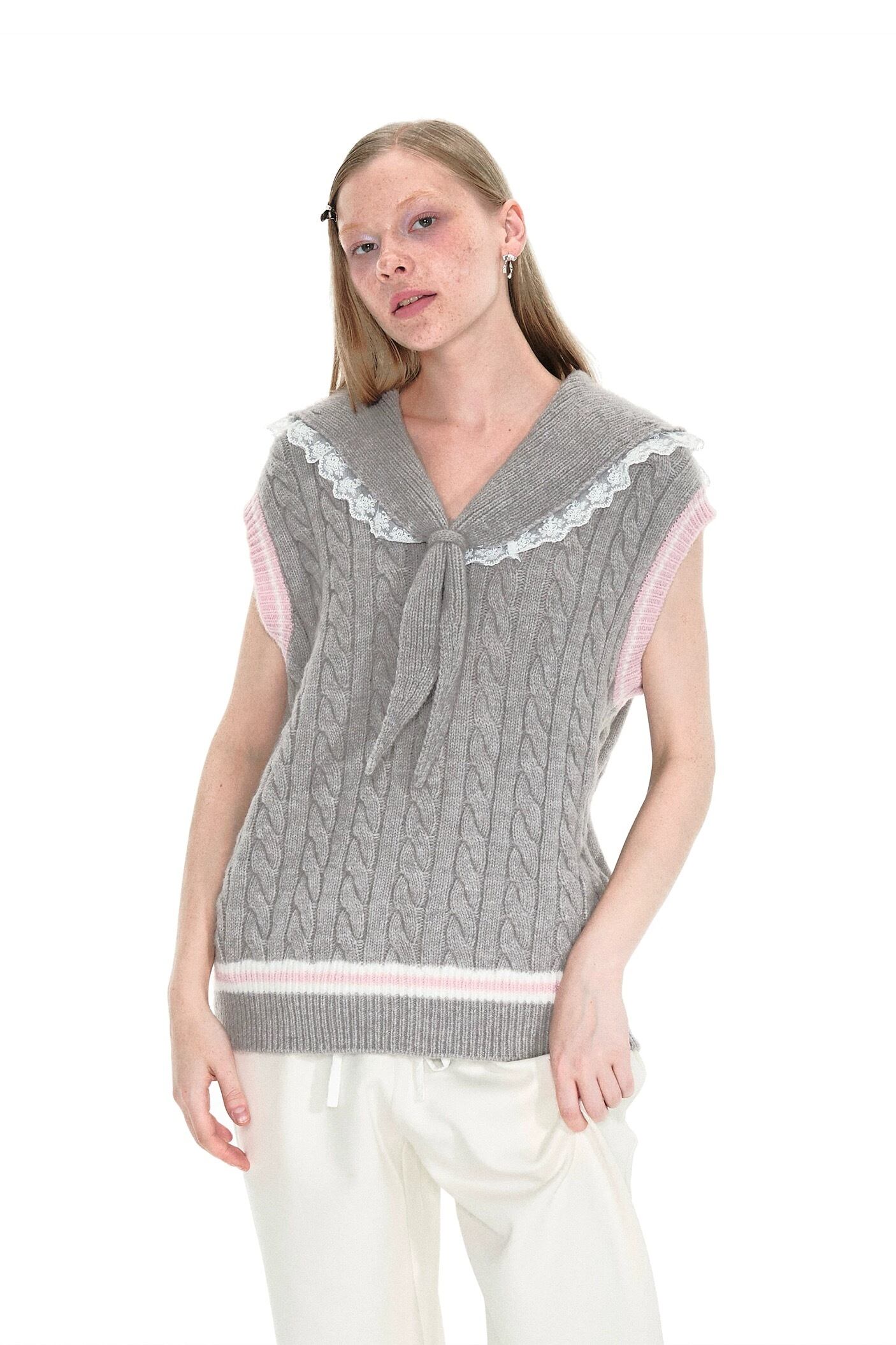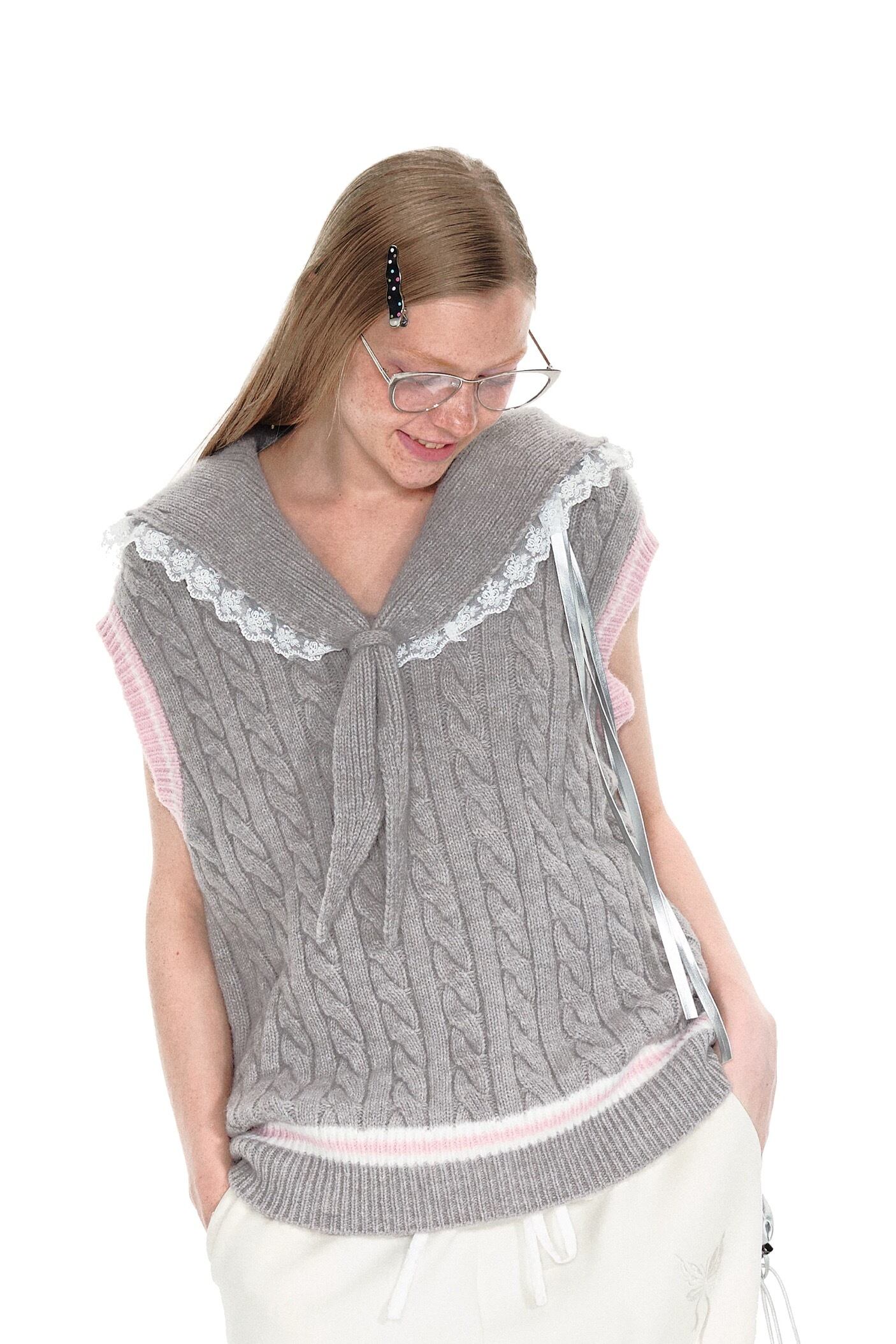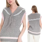 グレー セーラー リボン ピンク ベスト カーディガン セーター
