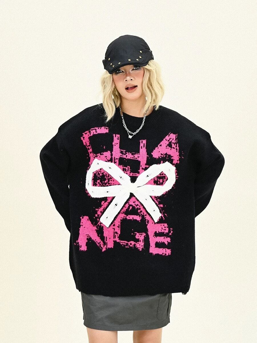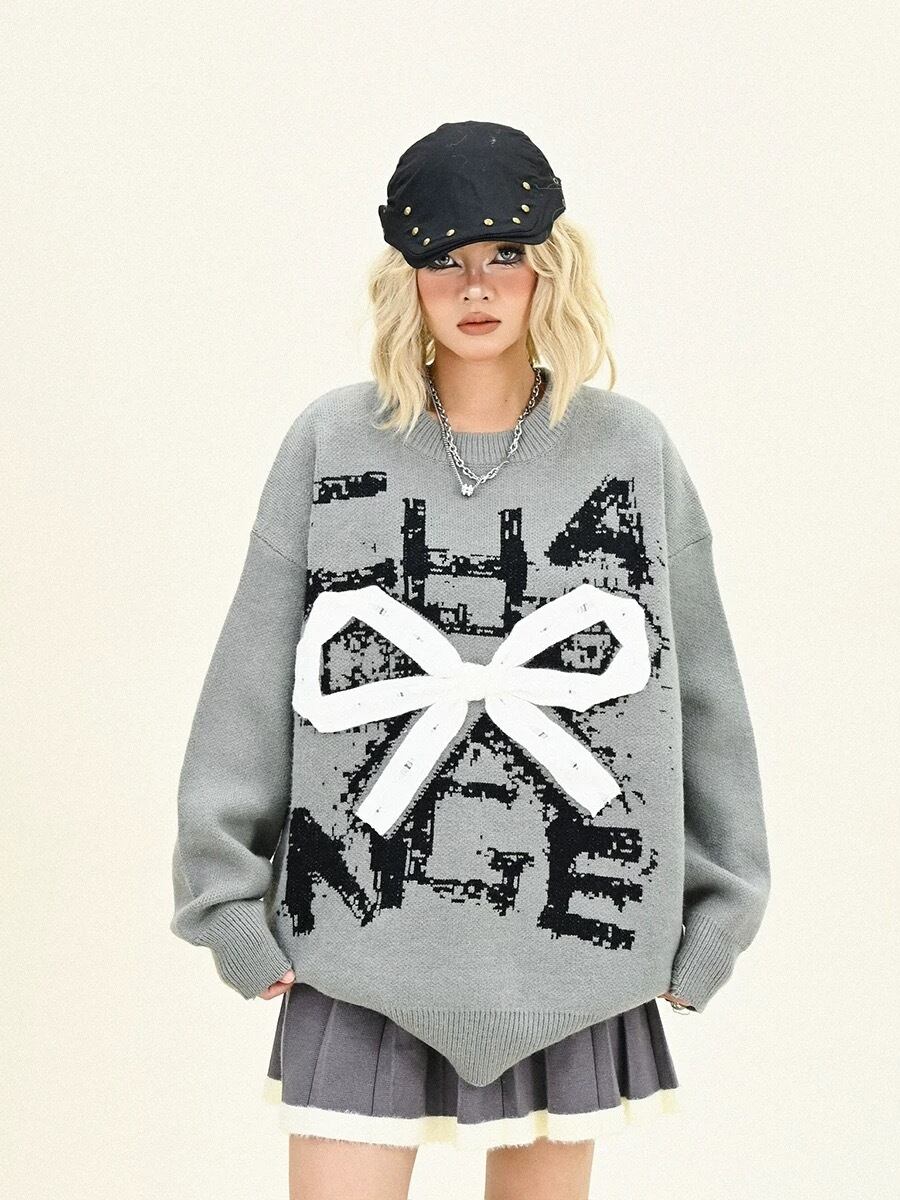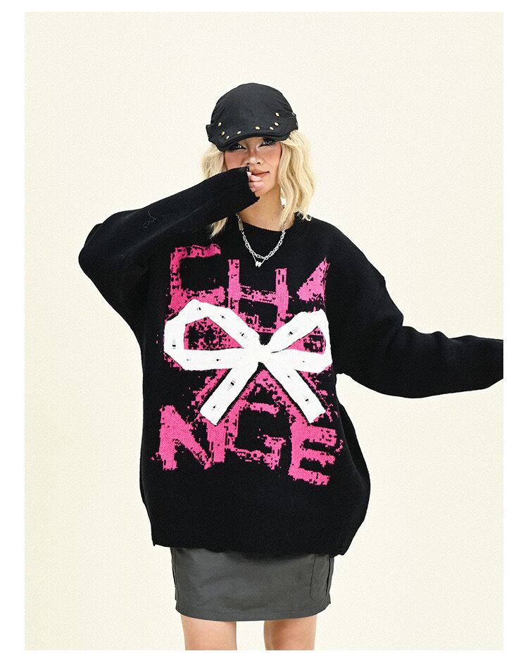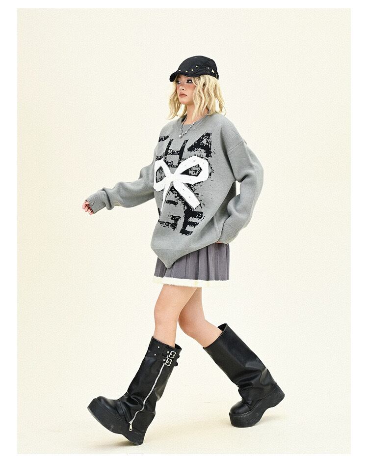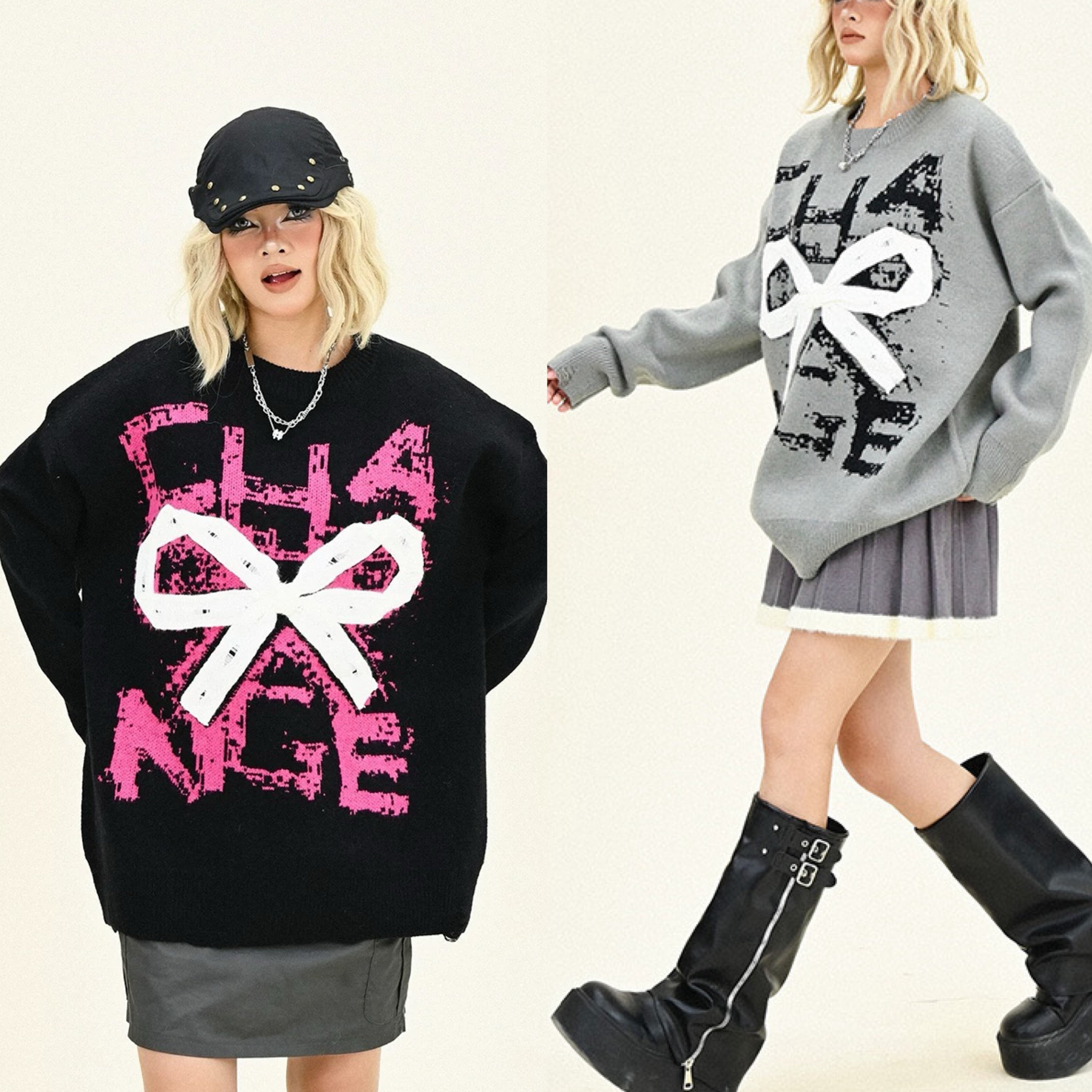 グレー 黒 リボン ピンク セーター XL ニット 可愛い カジュアル