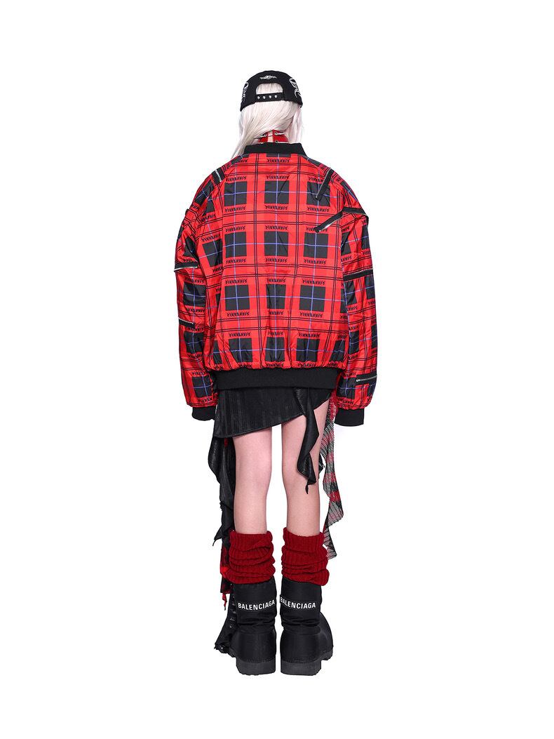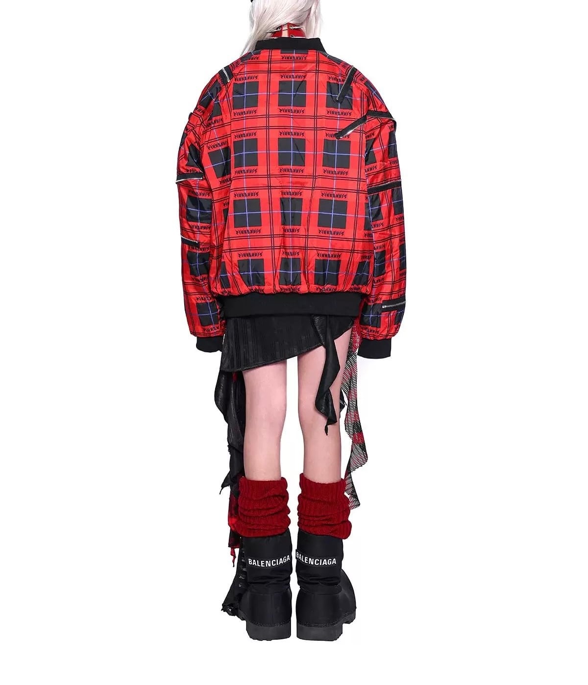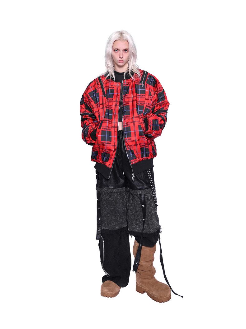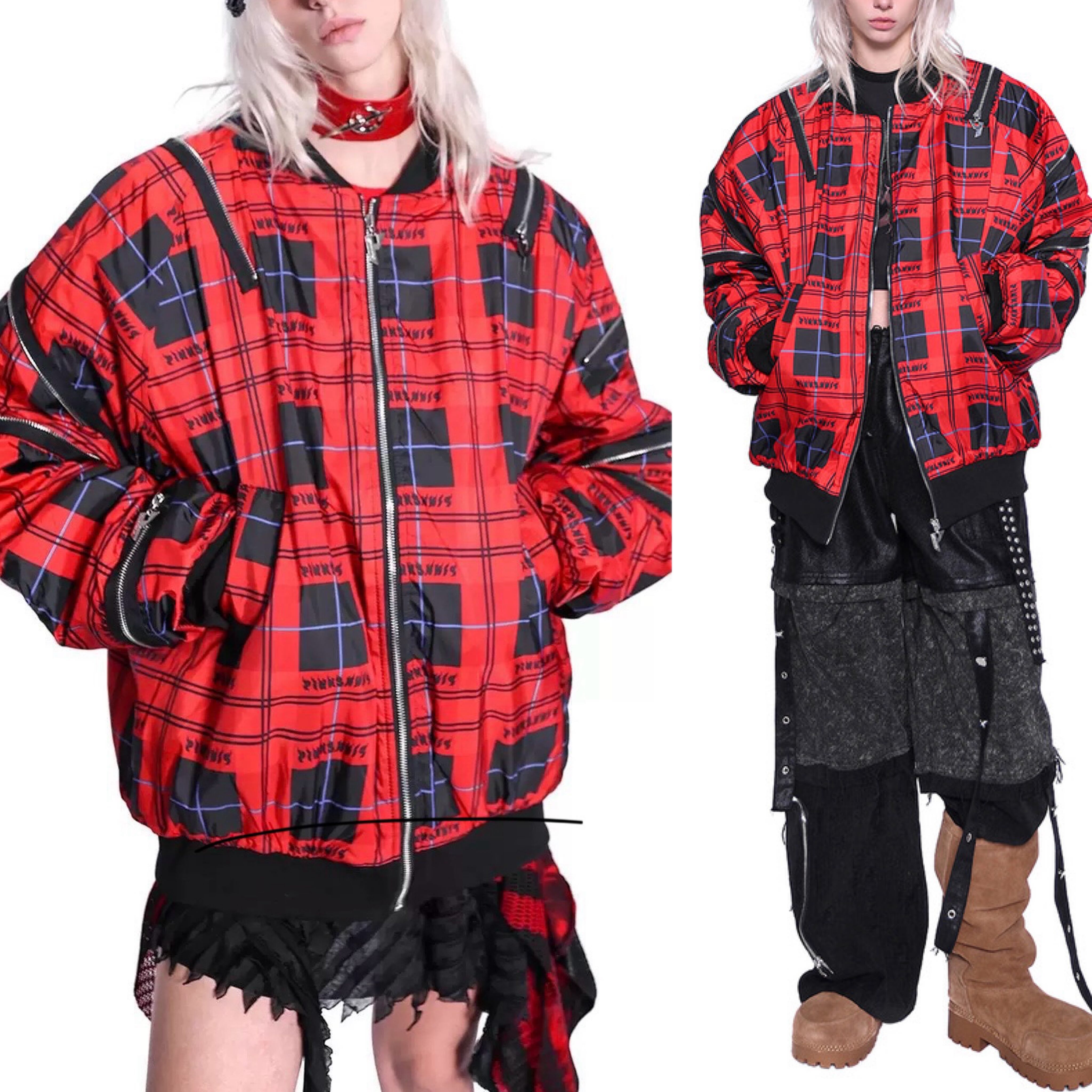 赤 ブルゾン ジャケット アウター チェック ストリート