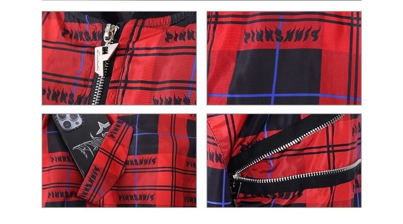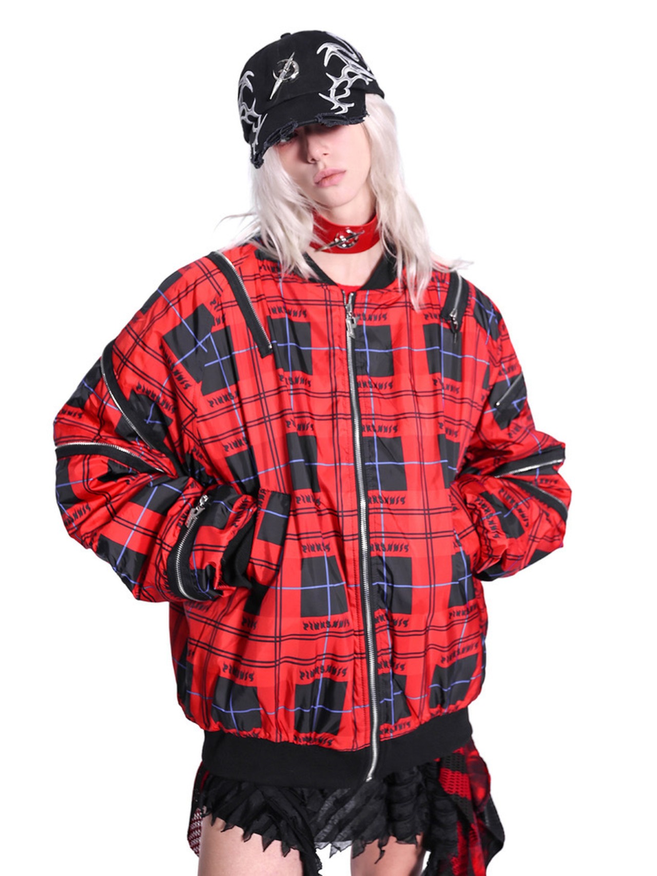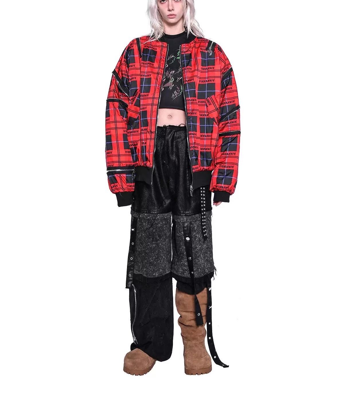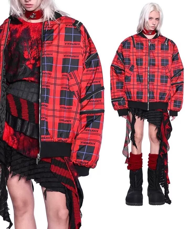 赤 ブルゾン ジャケット アウター チェック ストリート