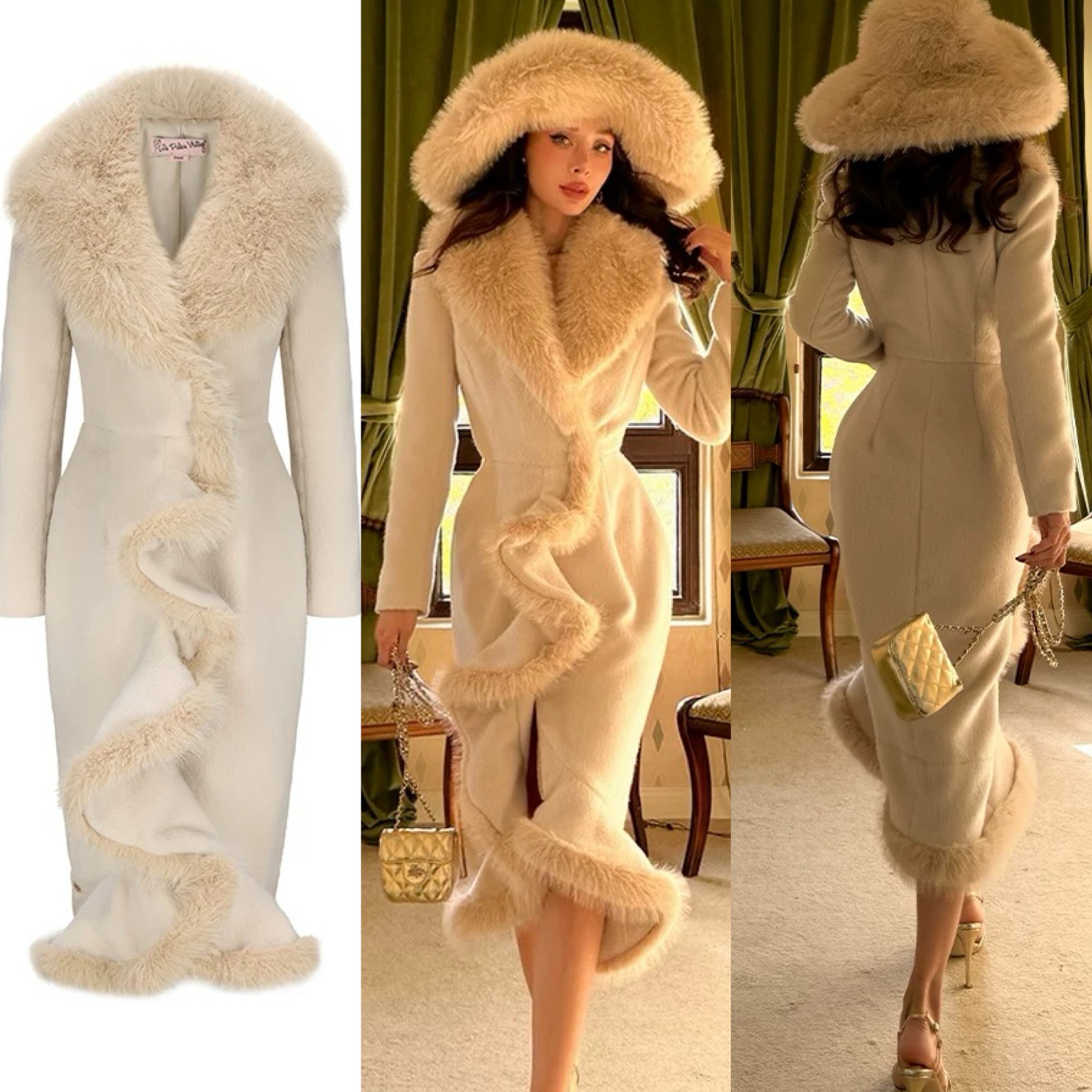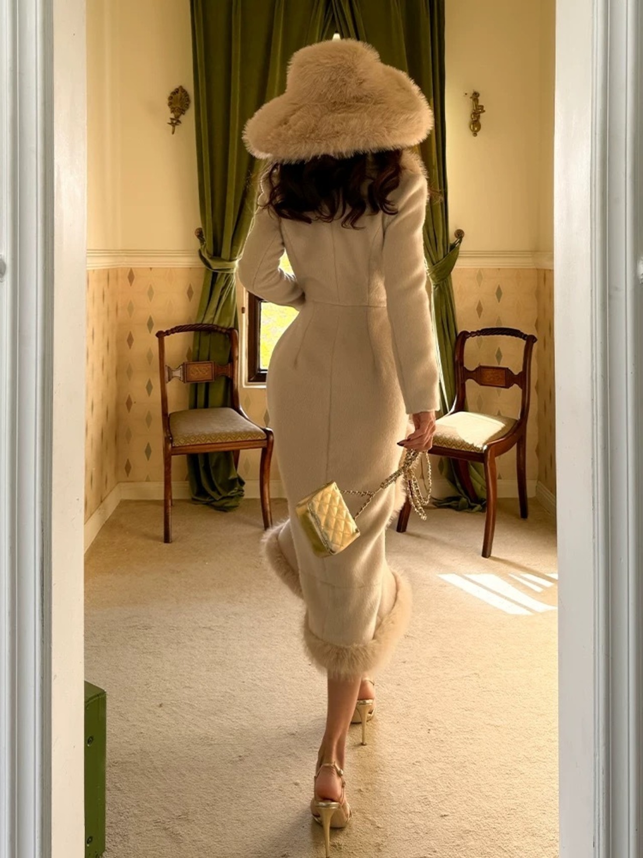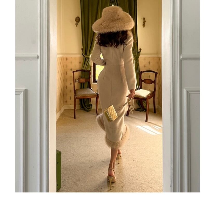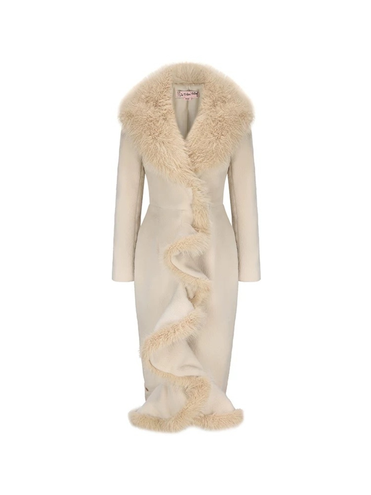 ベージュ ゴージャス ファー コート エレガント アウター ワンピース