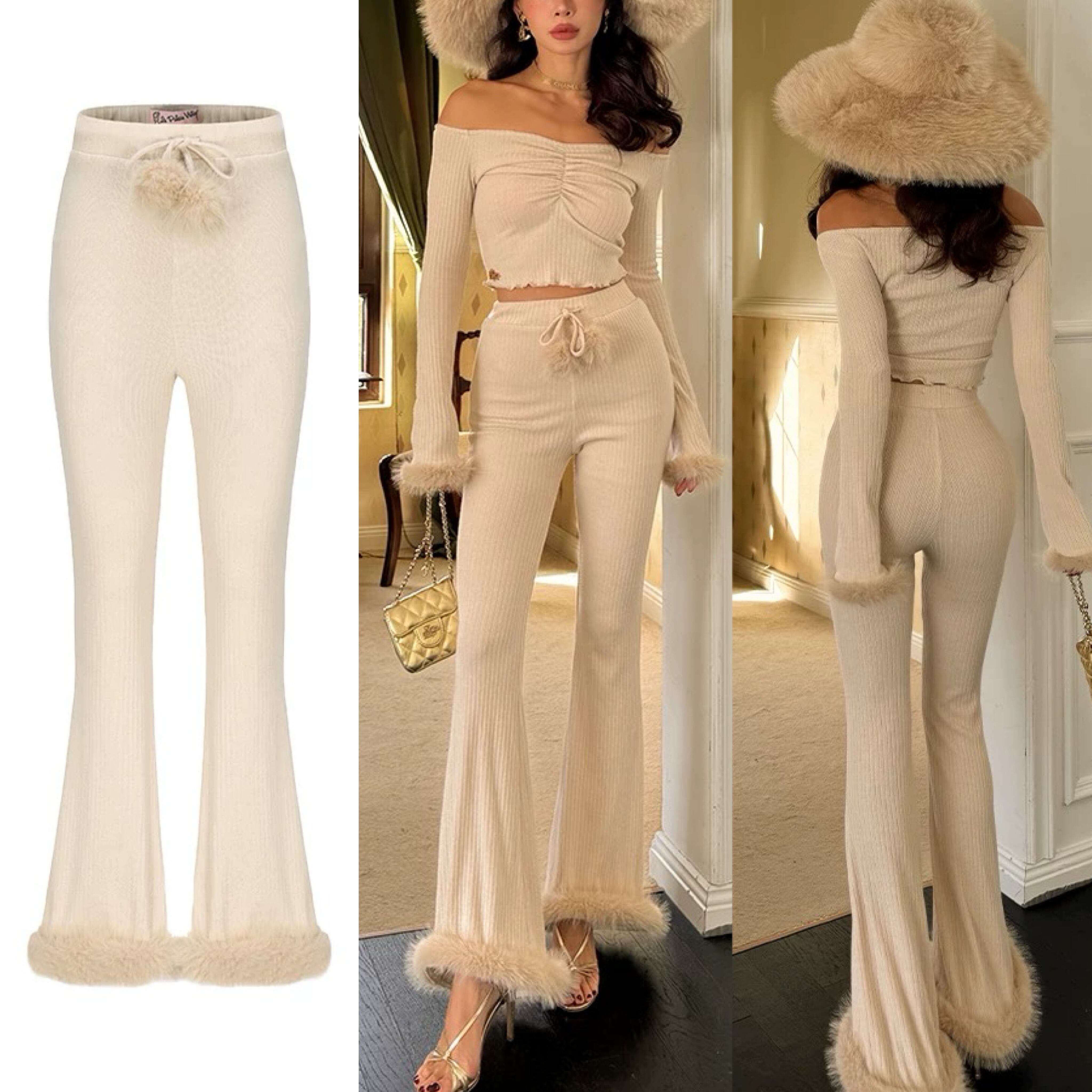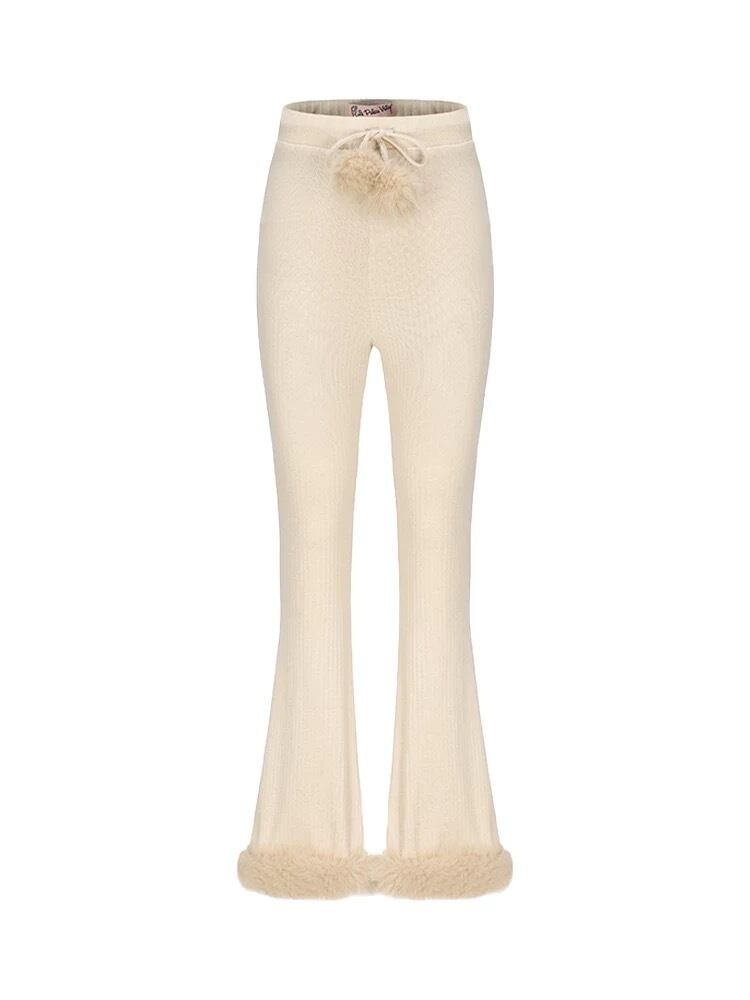 【パンツ】ベージュ ぽんぽん リボン ボトムス カジュアル
