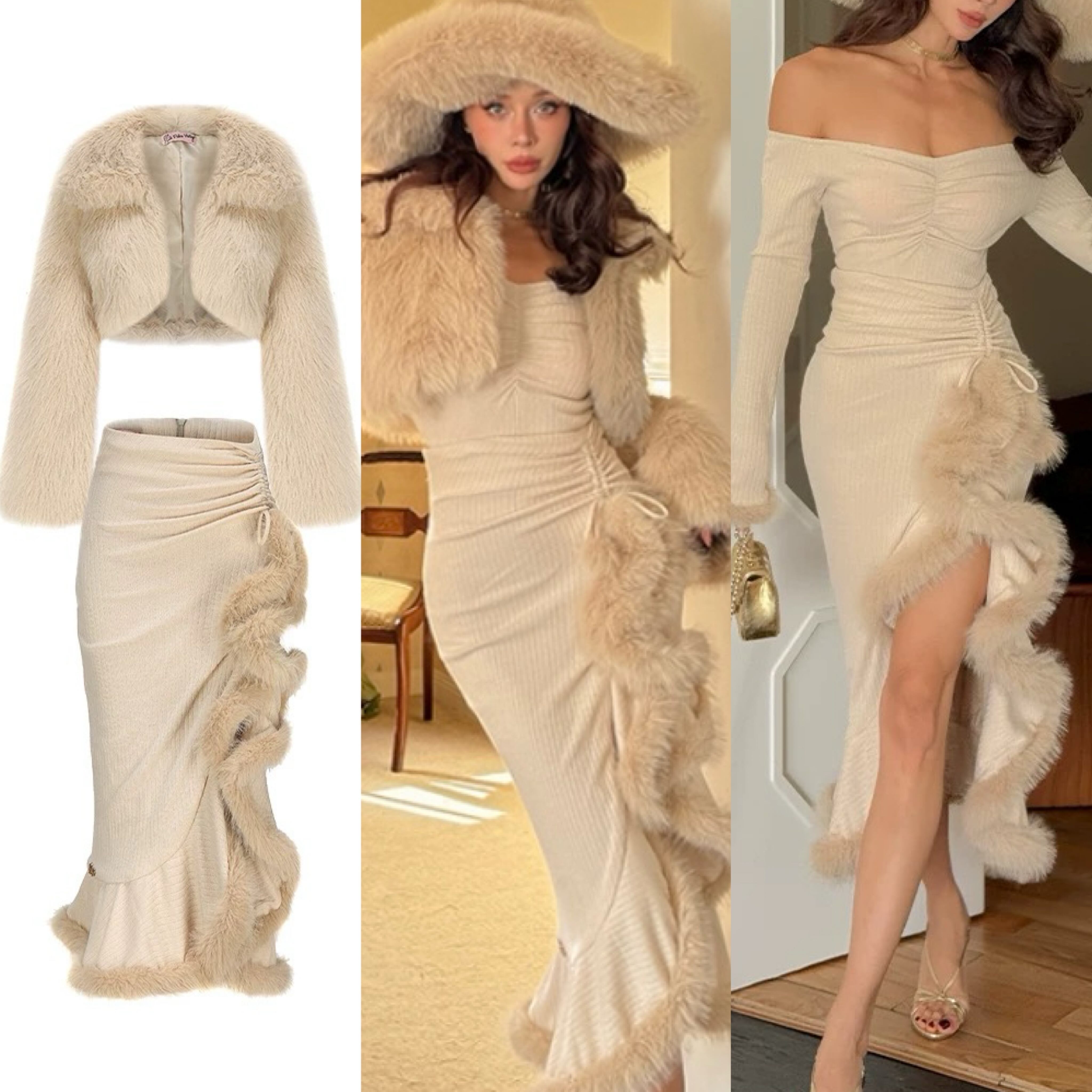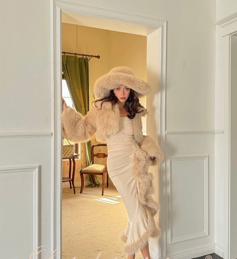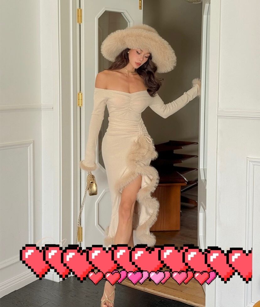 【スカート】マーメイド ベージュ マーメイド ファー