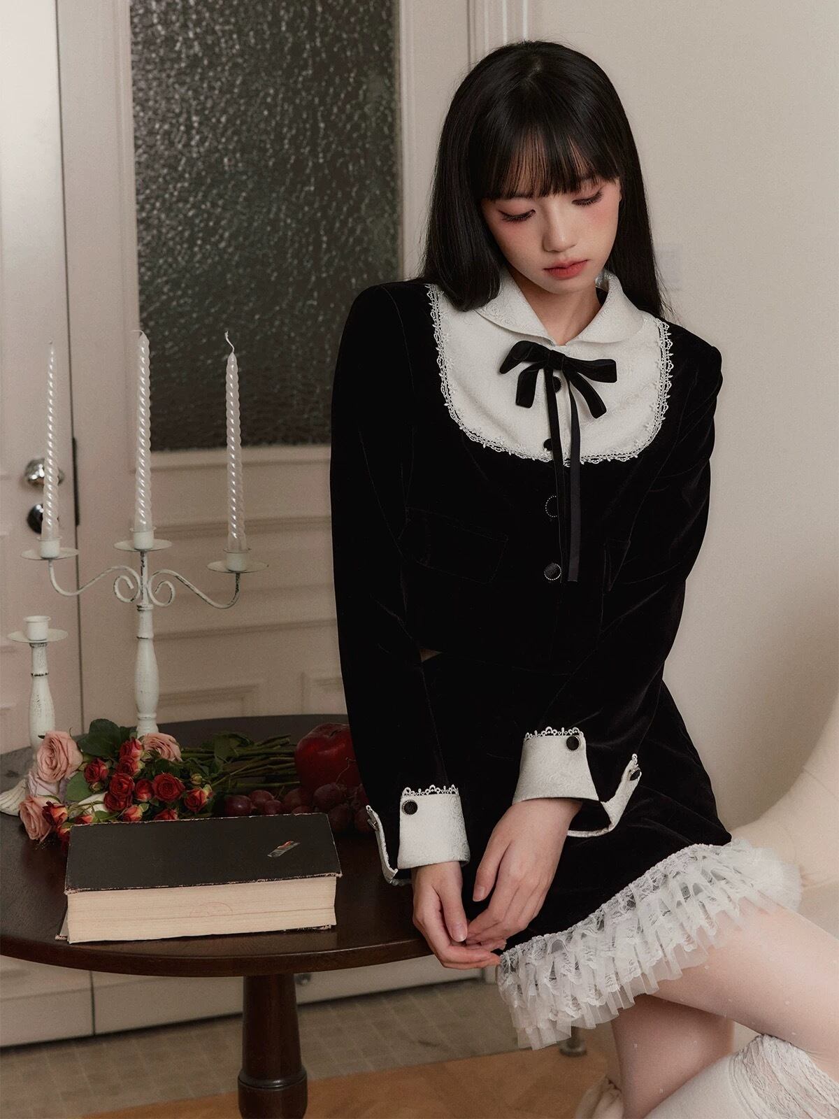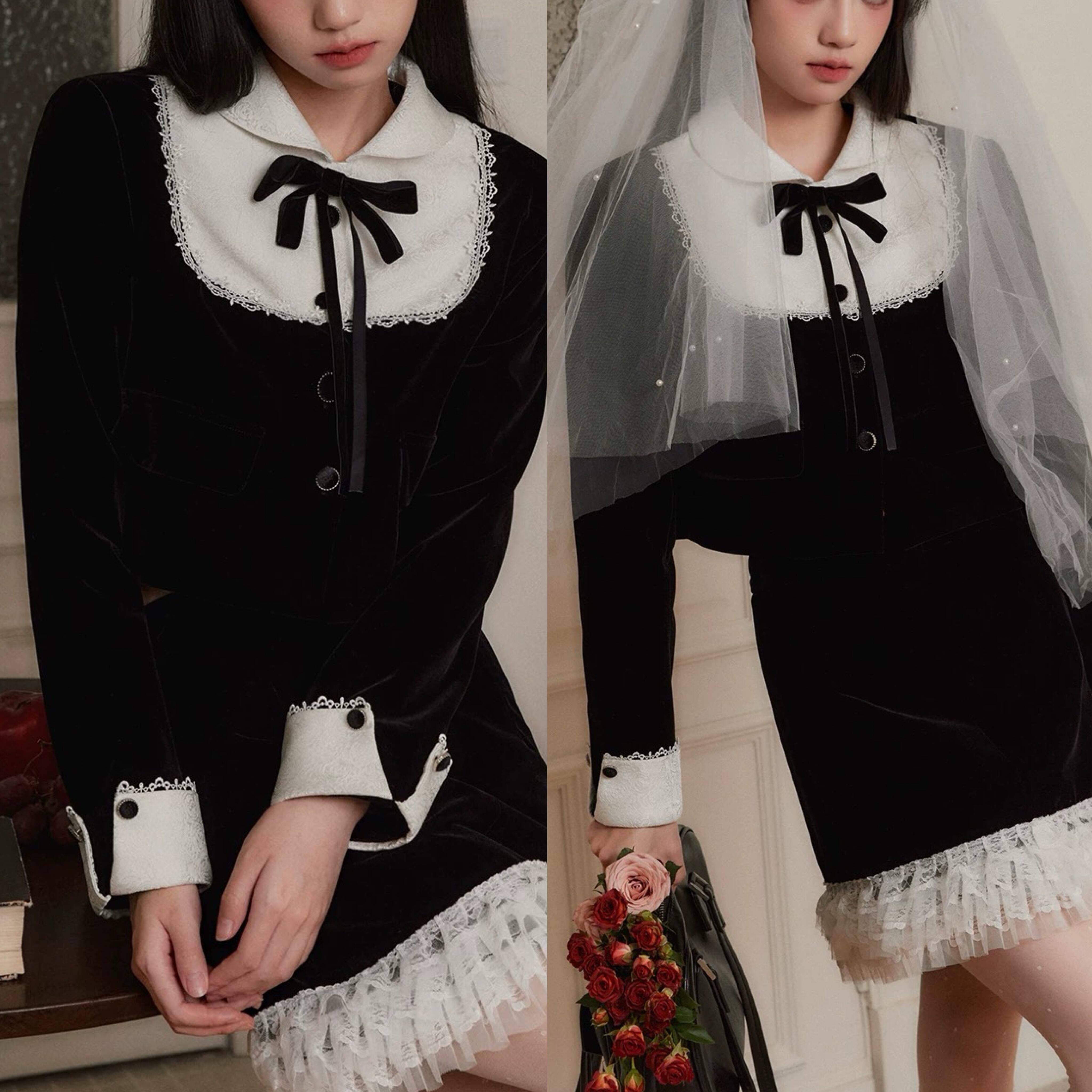 【ジャケット】黒 ガーリー カーディガン リボン 可愛い