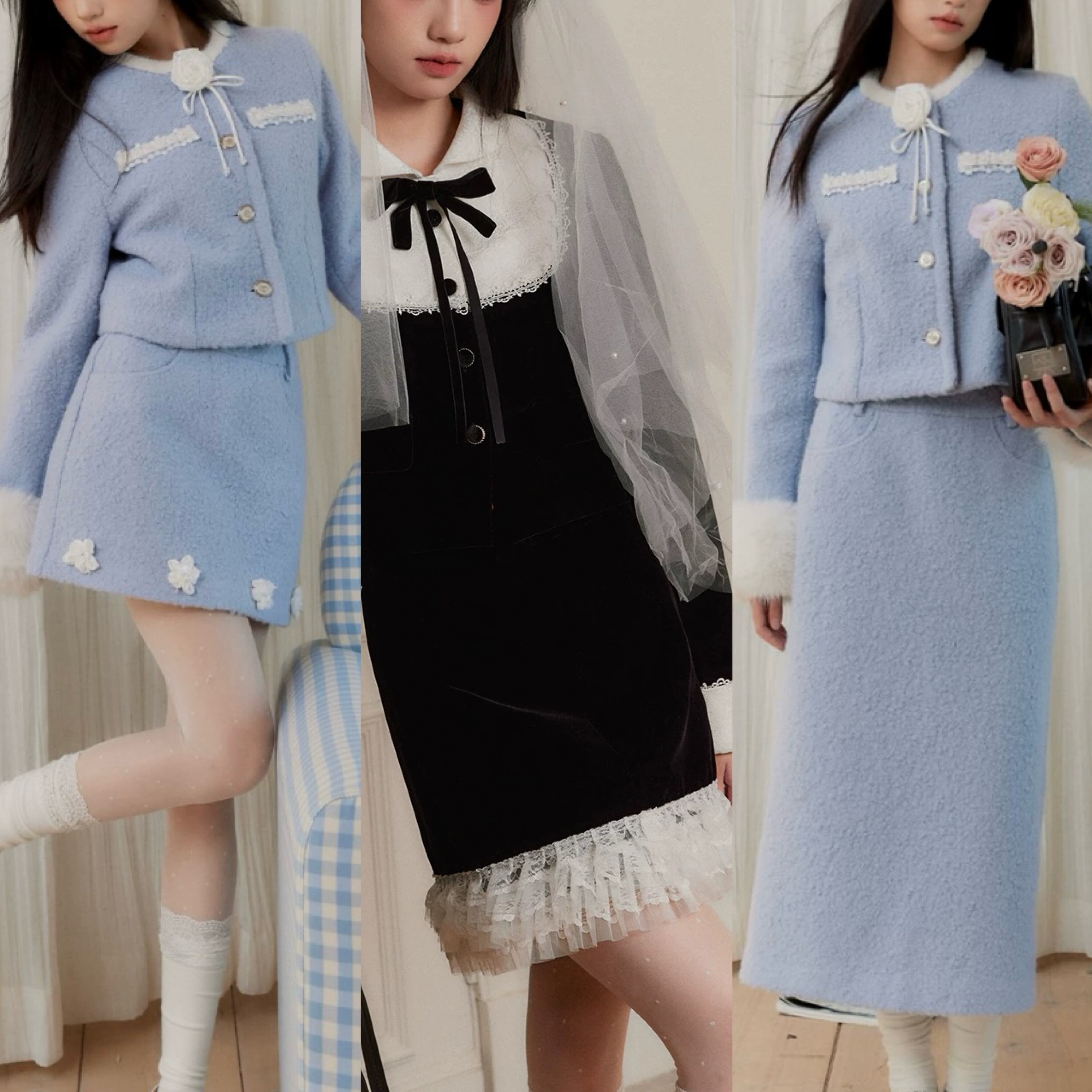 【スカート】黒 水色 ガーリー ボトムス 可愛い